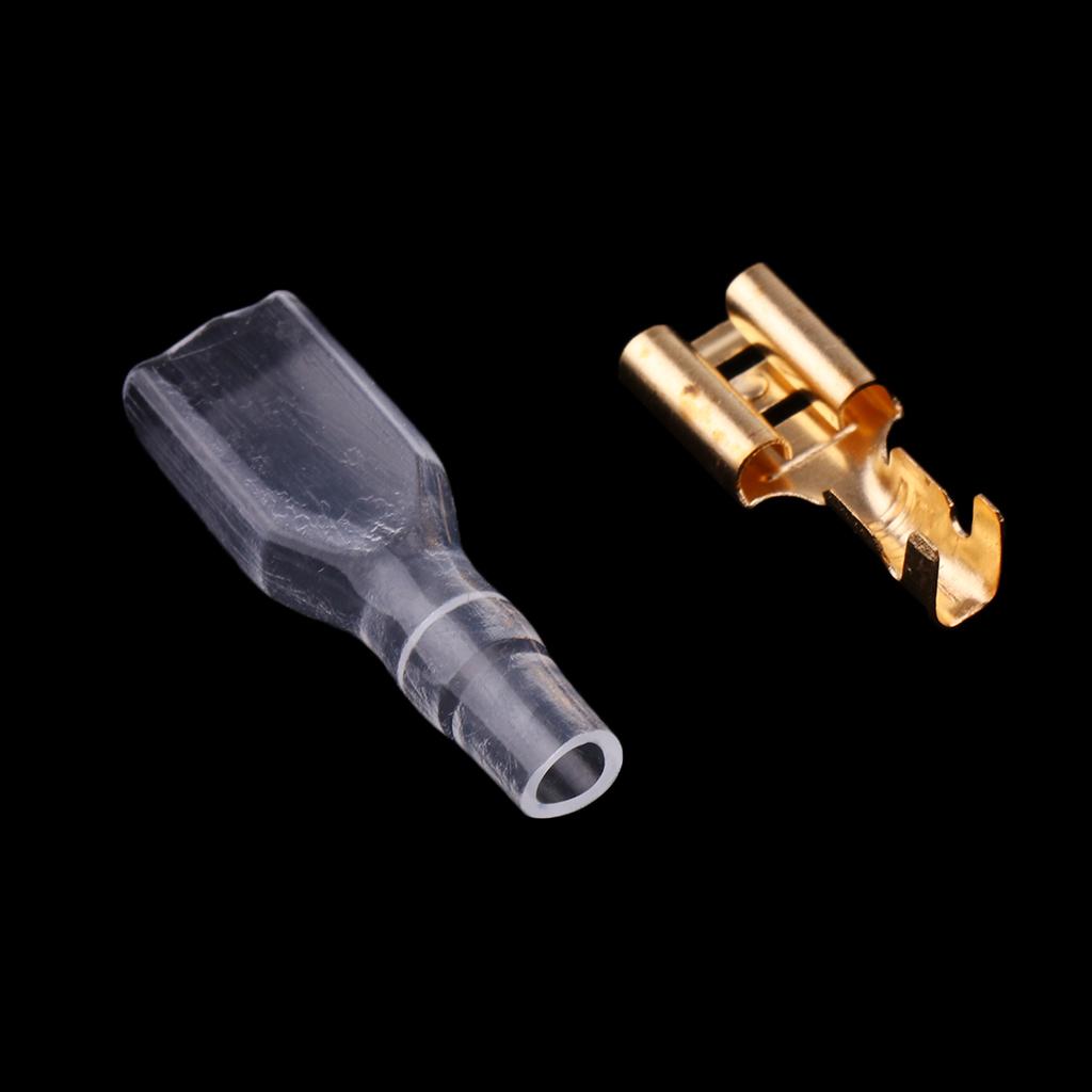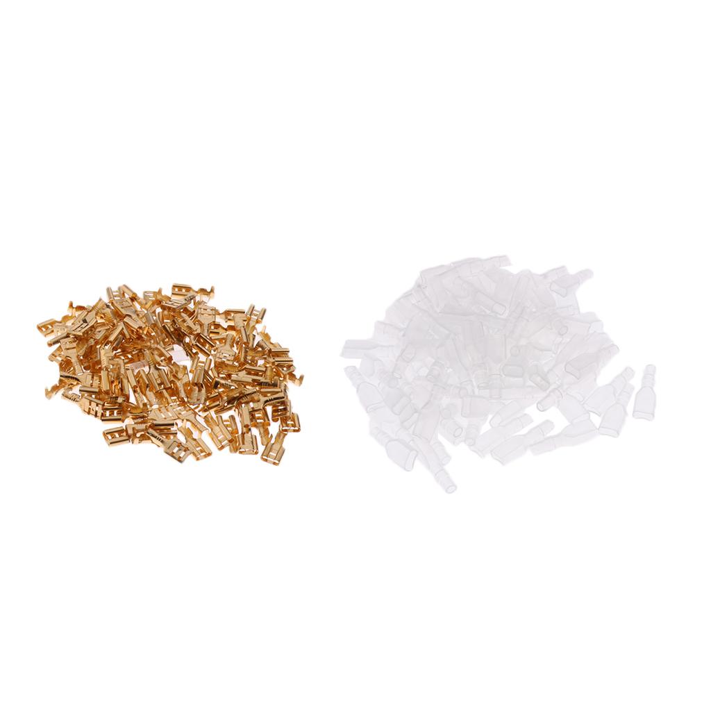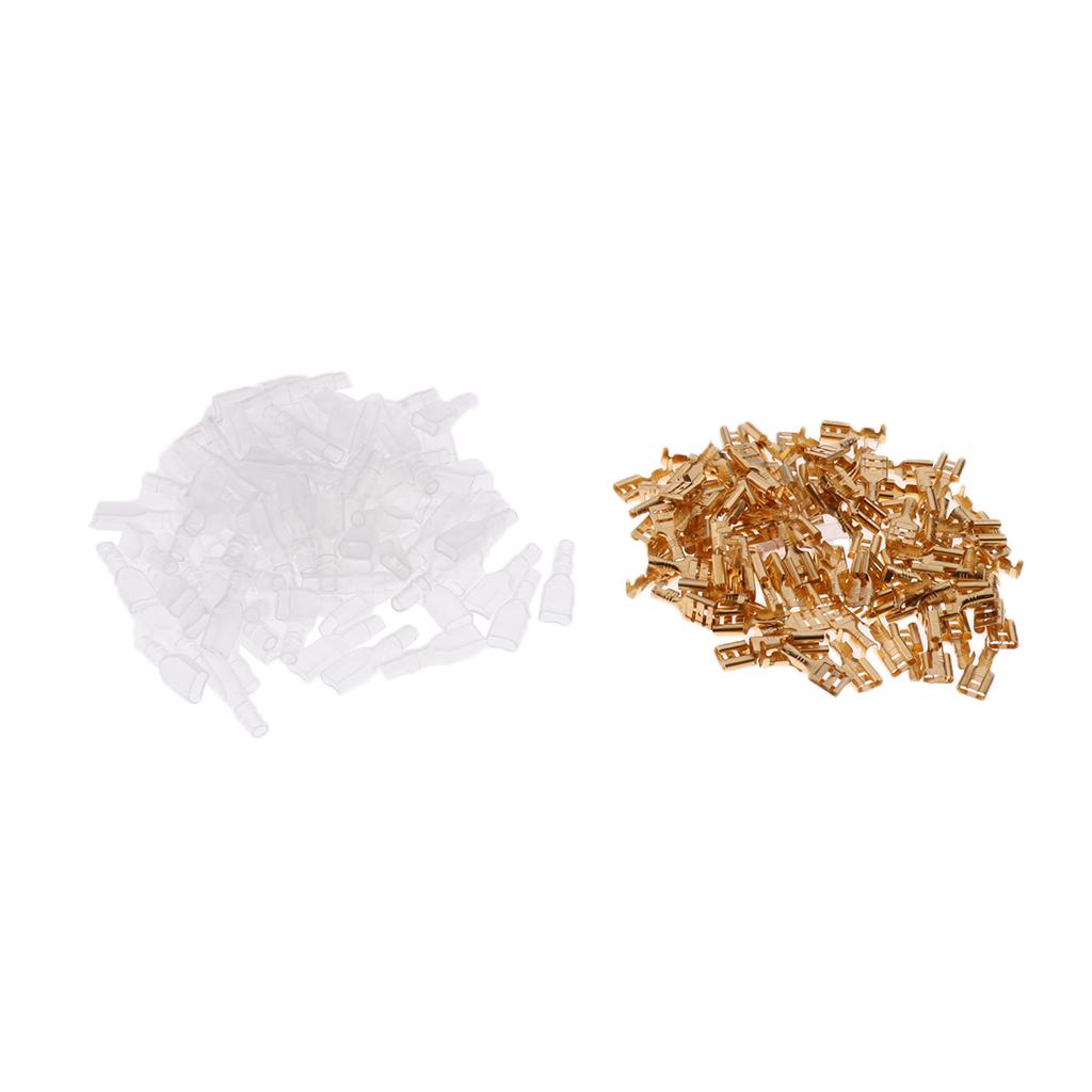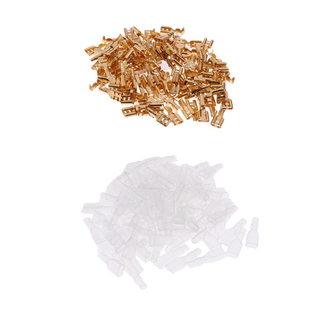 100 Pieces 6.3mm Crimp Terminal Female Spade Connectors & Insulating Sleeve AWG 22-16