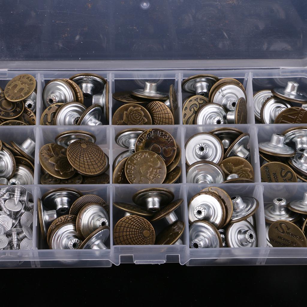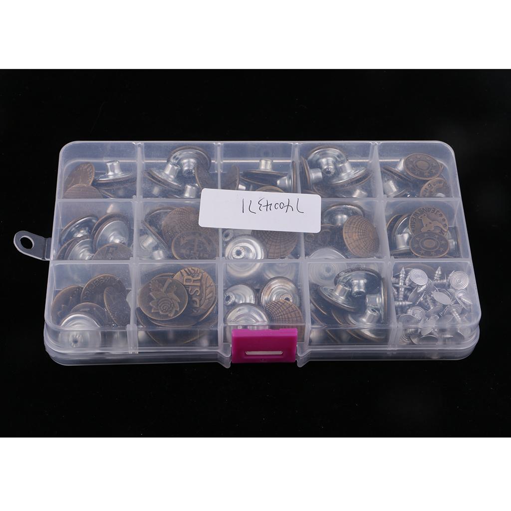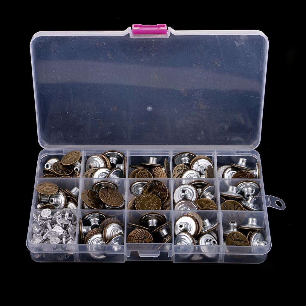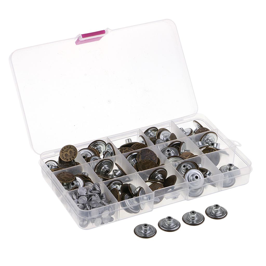100 Pieces Jeans Buttons with Plastic Box