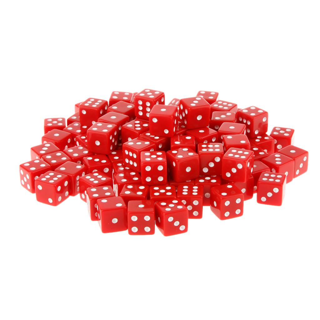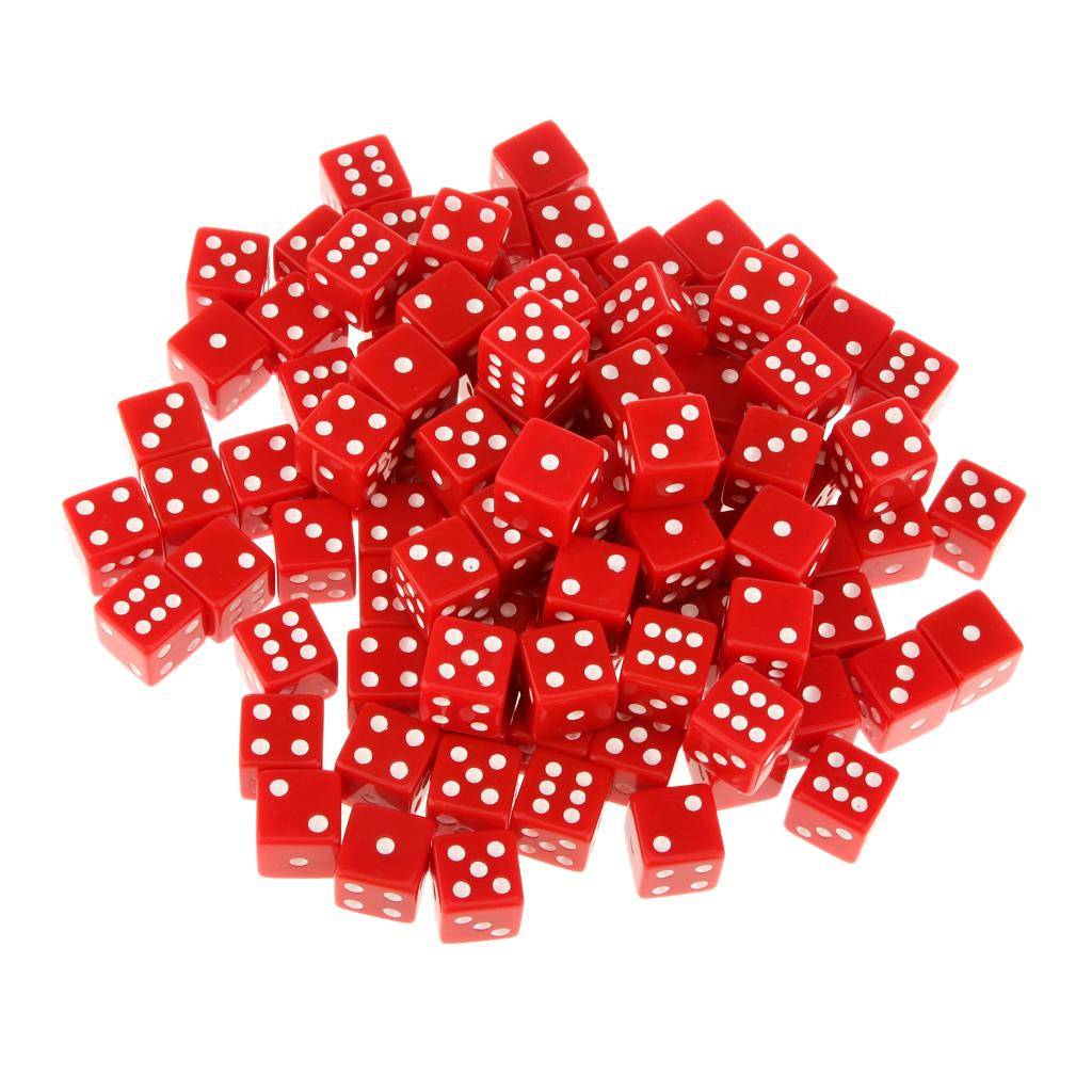100 x Opaque 16mm Six Sided Spot Dice RPG Games Red
