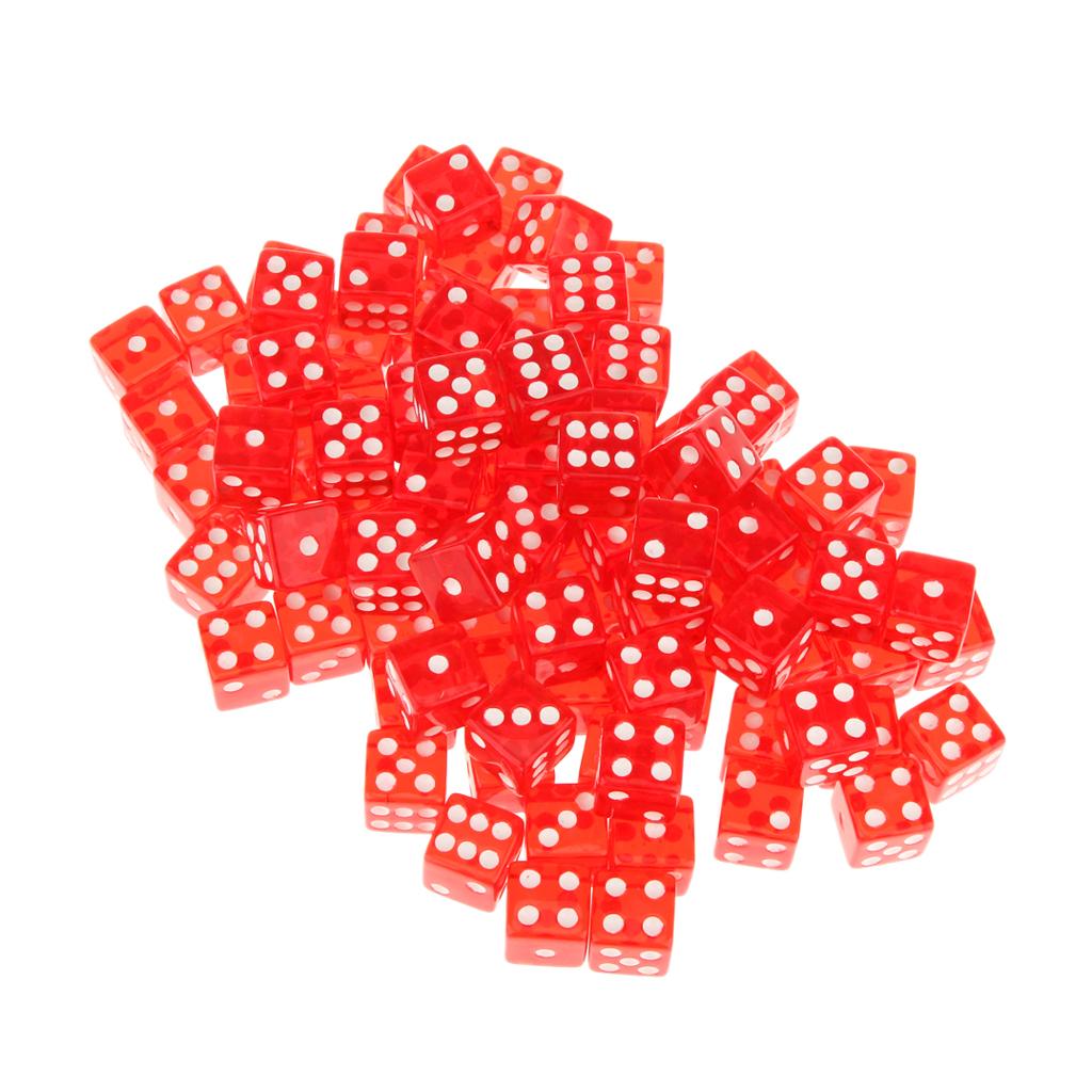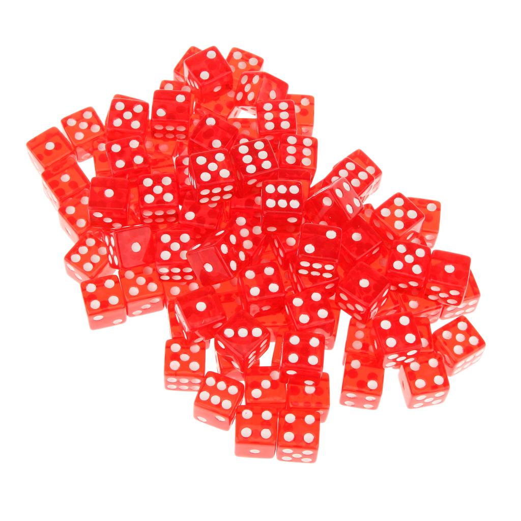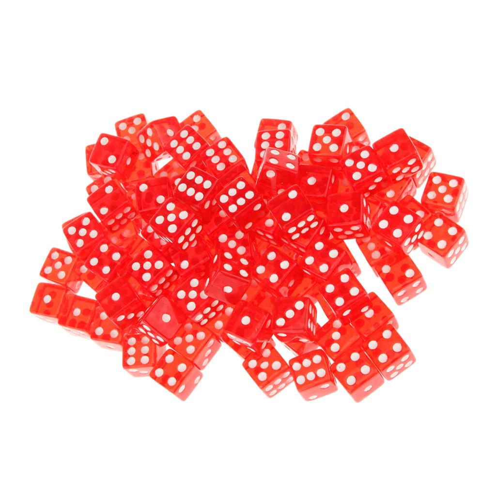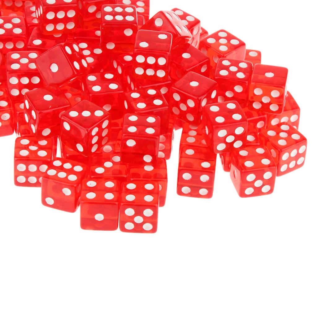 100 x Translucent 16mm Six Sided Spot Dice RPG Games Red
