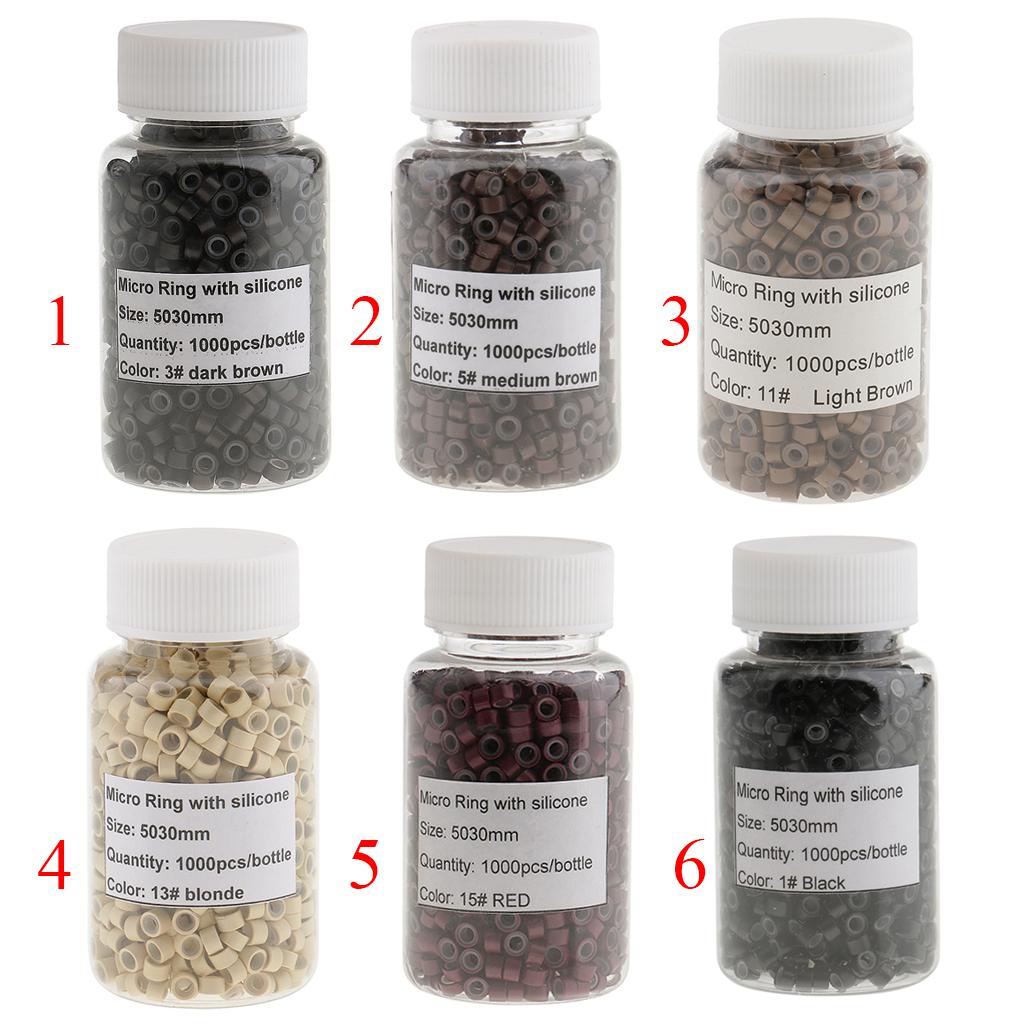 1000 Pieces Silicone Hair Extension Loop Micro Color Ring Beads Dark Brown