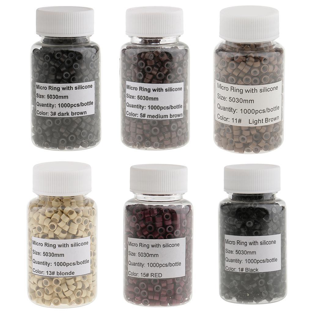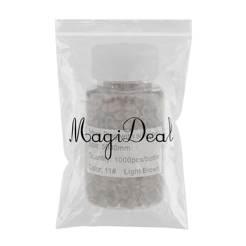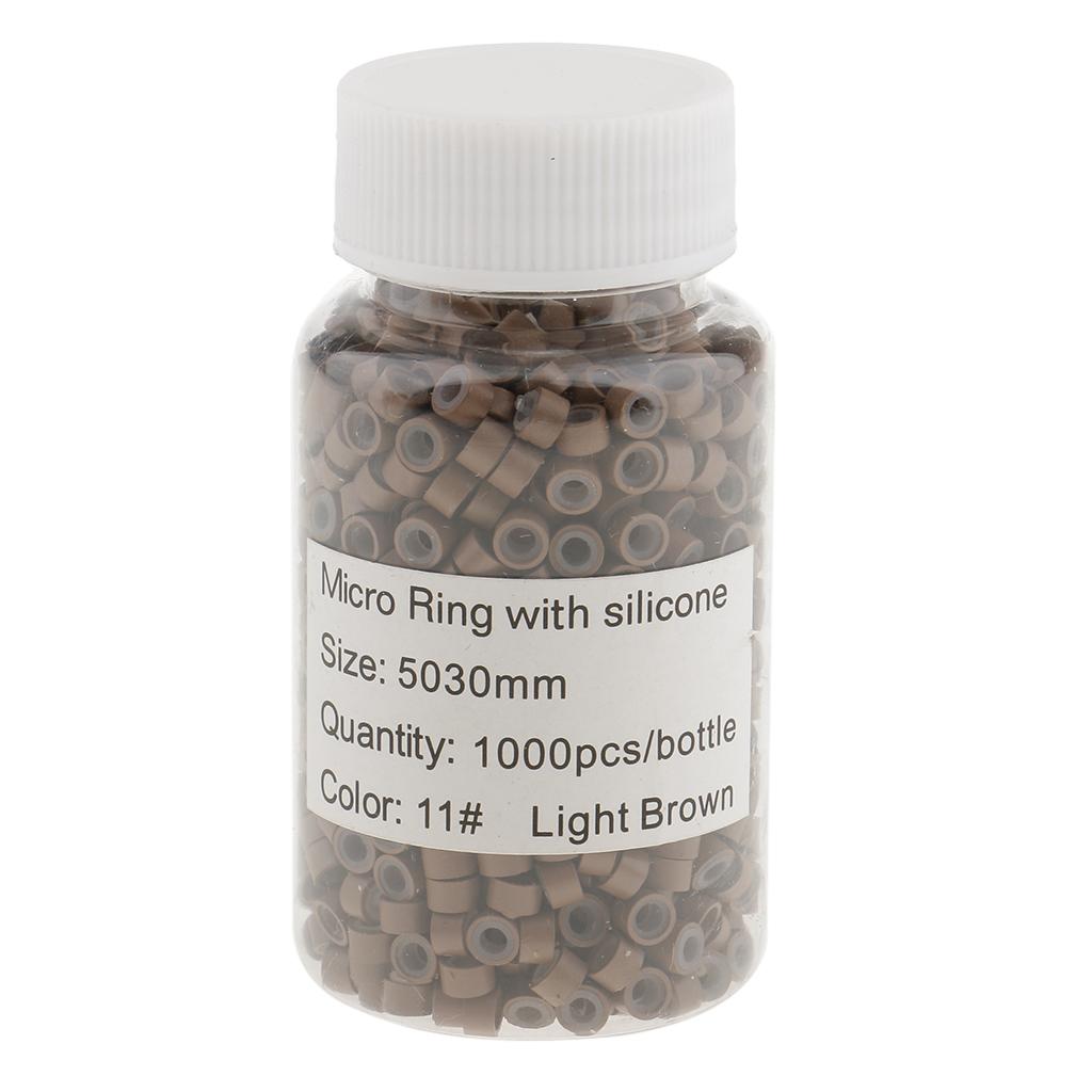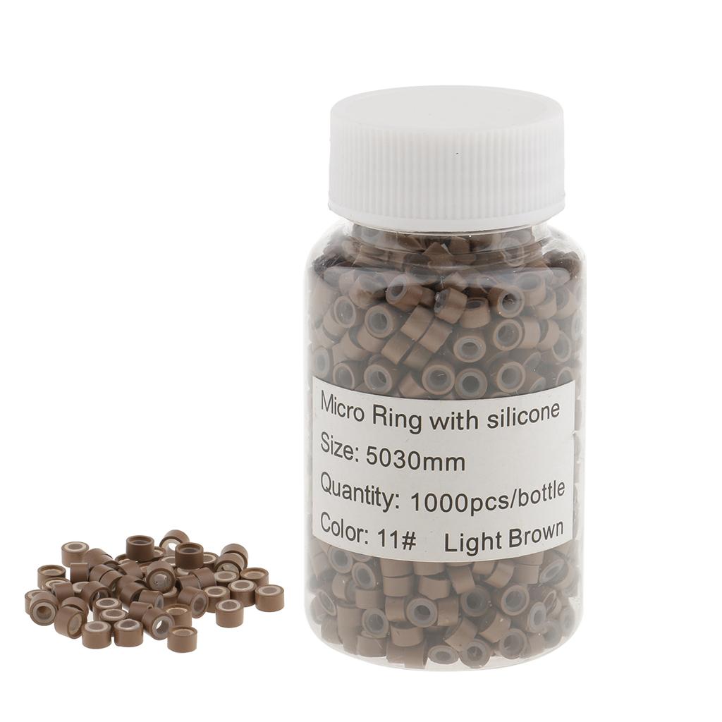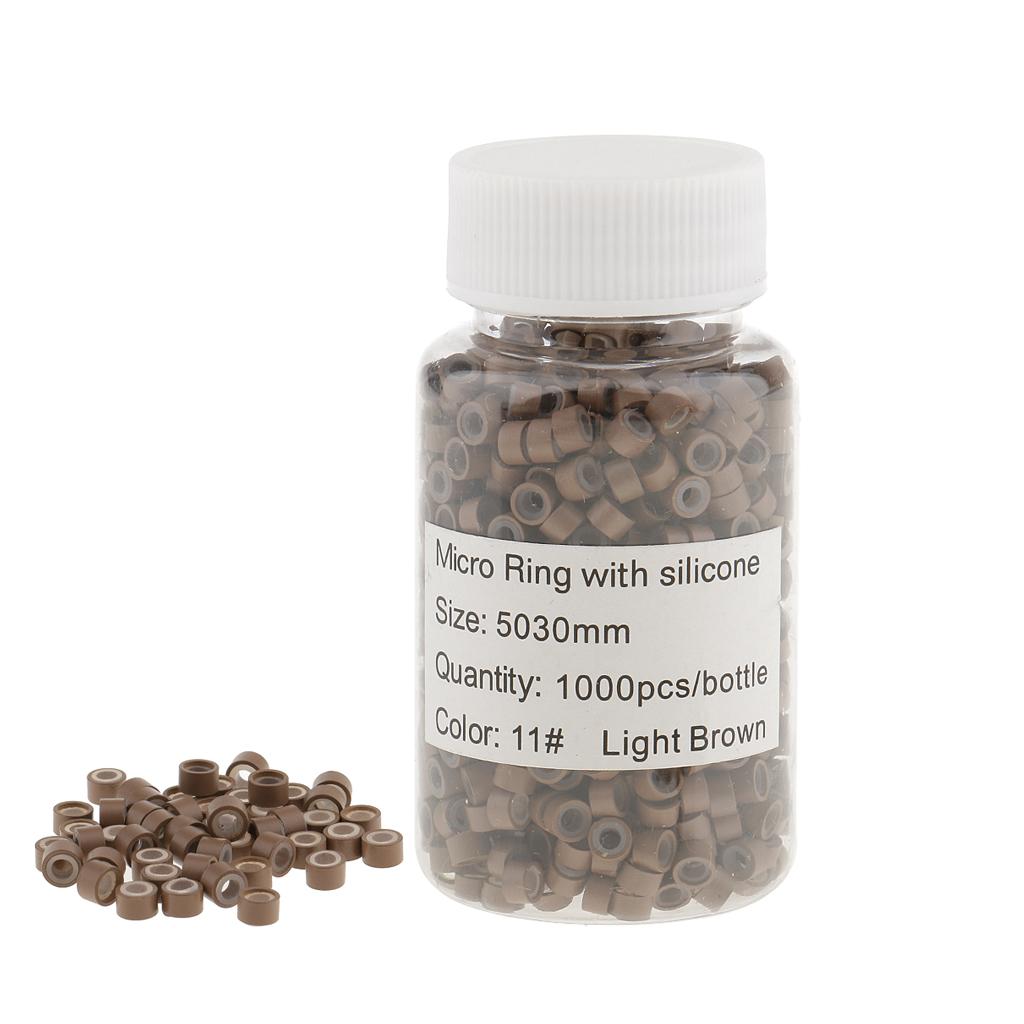 1000 Pieces Silicone Hair Extension Loop Micro Color Ring Beads Light Brown