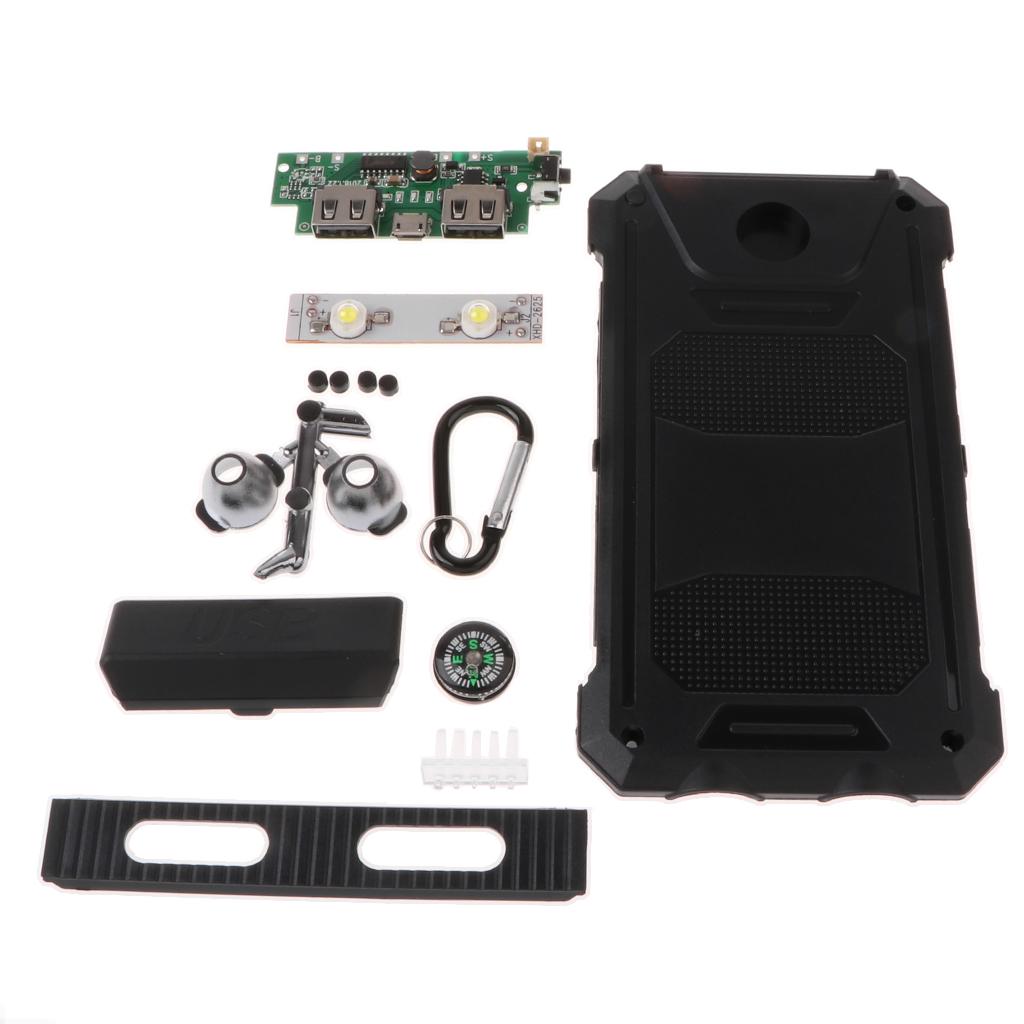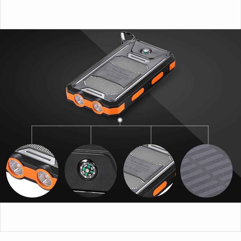 Intelligent protection against overcharge, overheat and over discharge. Charge your phone by simply placing it over the dock.Strong class 6 waterproof features, as well as versatility including solar power, flashlight and compass.