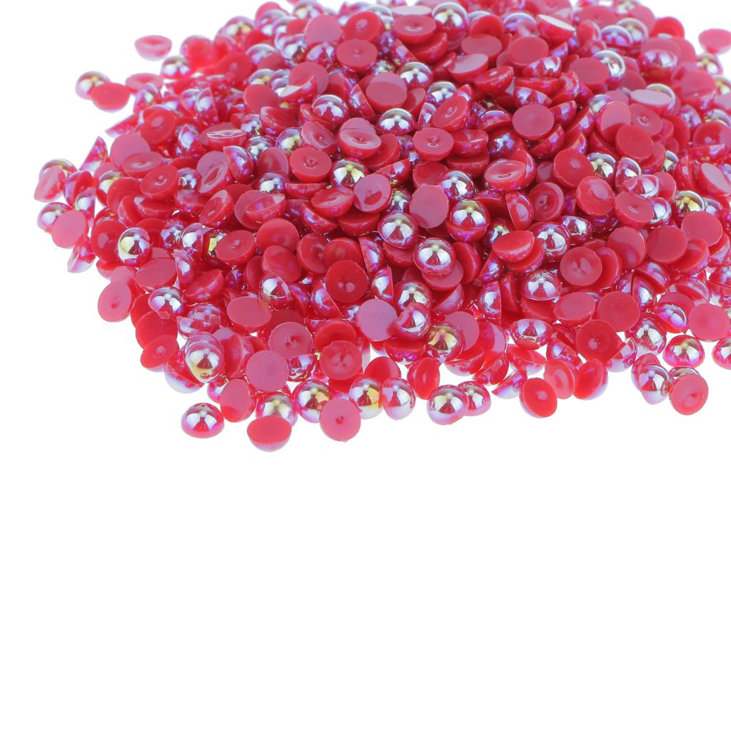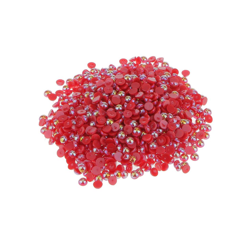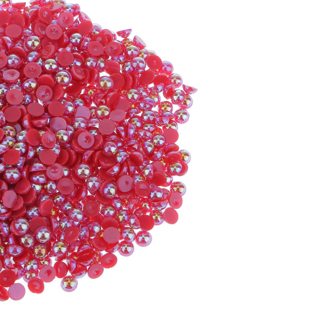 1000x Half Round Flat Back Pearls Scrapbook Embellishments 5mm Bright Red