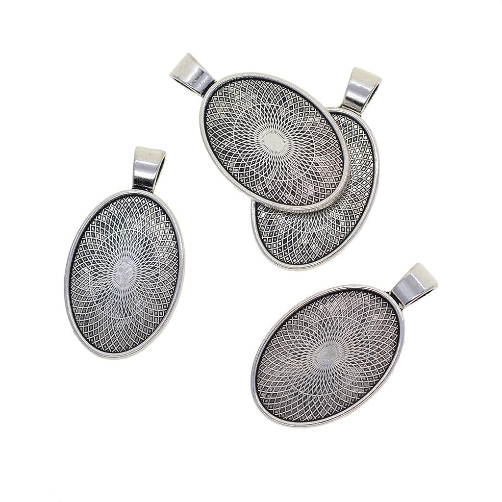This blank pendant is feartured a oval shaped bezel setting on BOTH sides, where you can perform an great DIY peoject, simplely glue on 30 x 20 mm oval Glass, resin, gemstone, photo, cameo or something else you like, make it a different pendant for you jewelry.