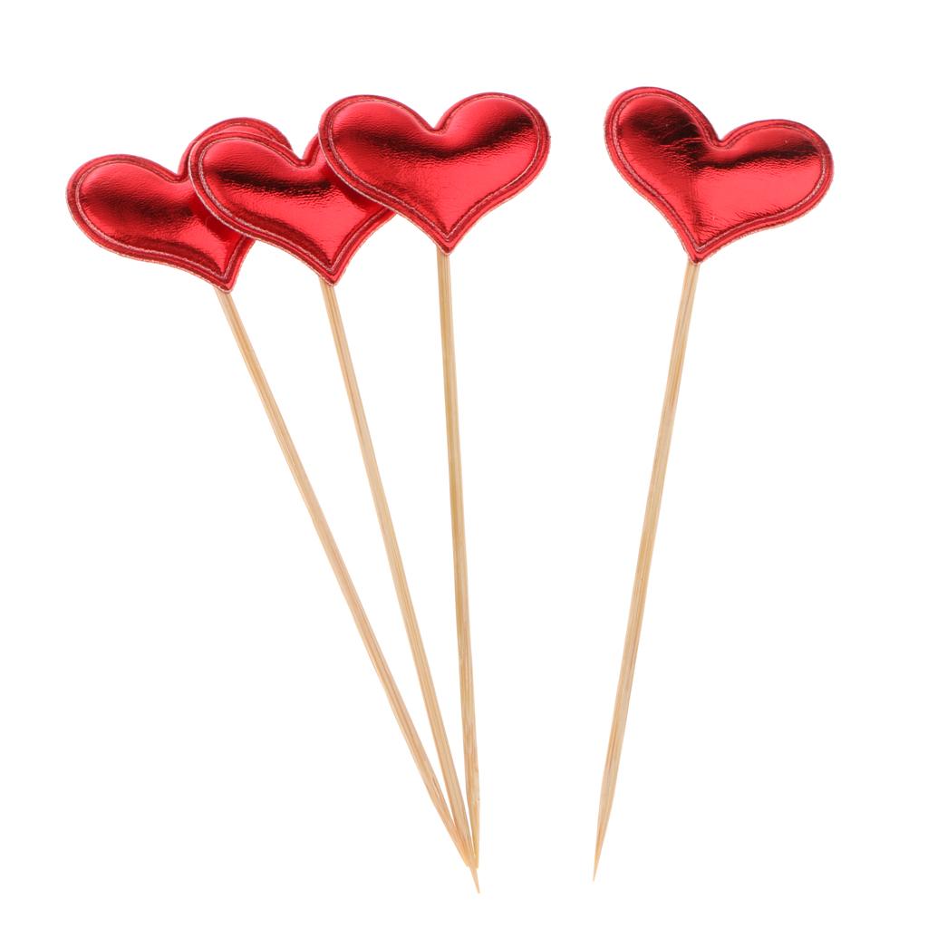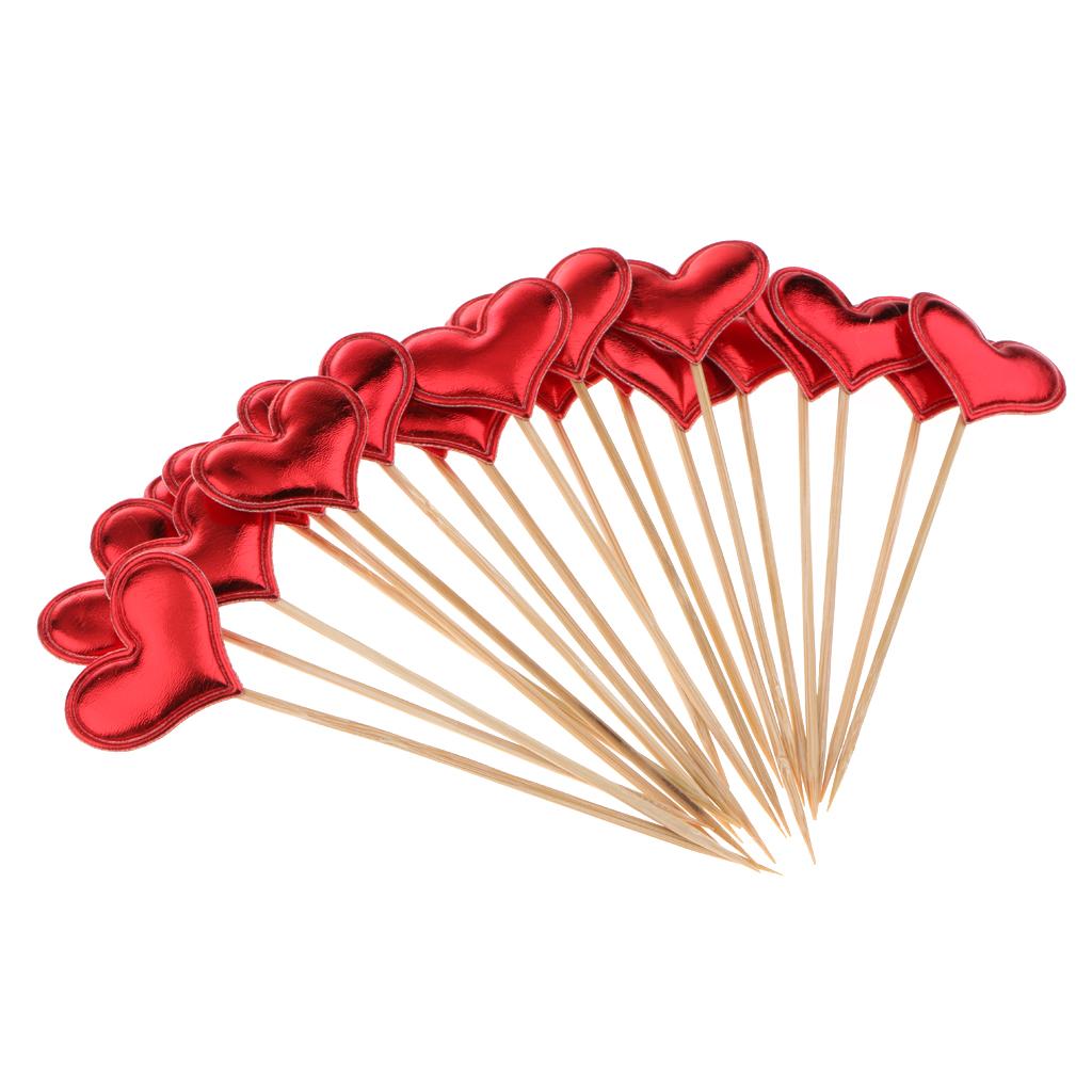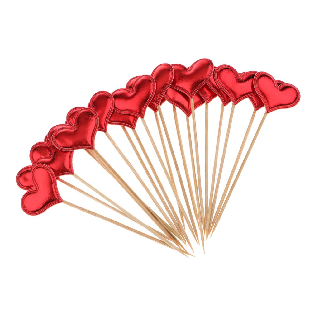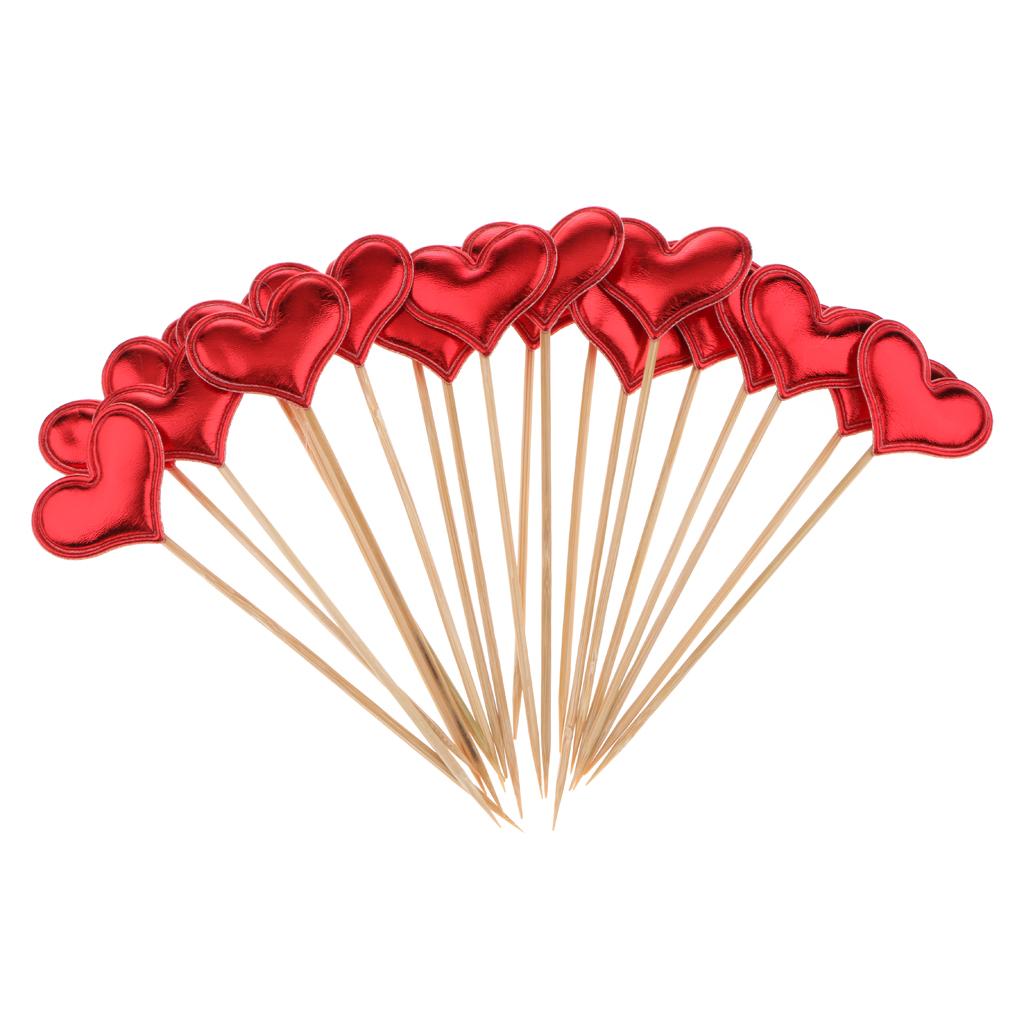 20 Pieces Toothpick Leather Heart Cupcake Picks Birthday Topper Red