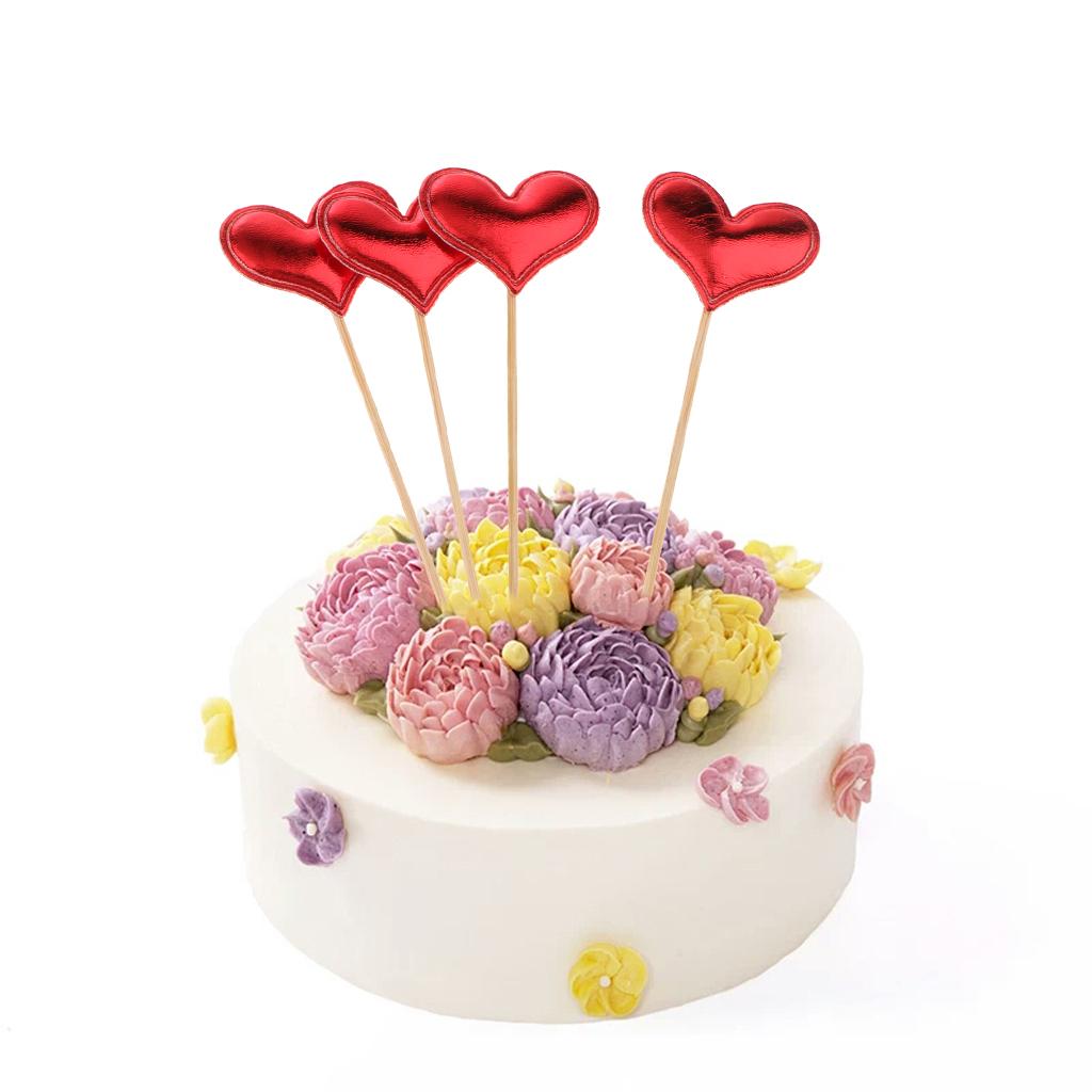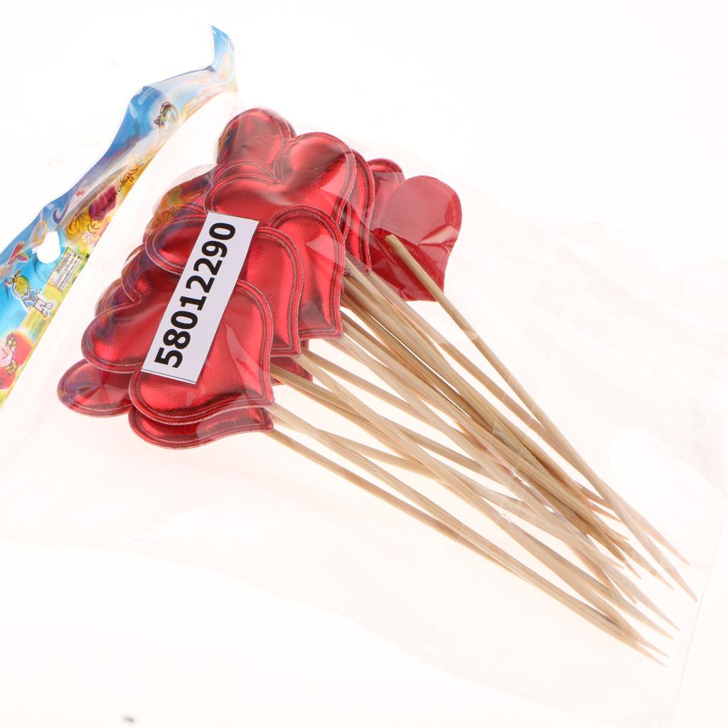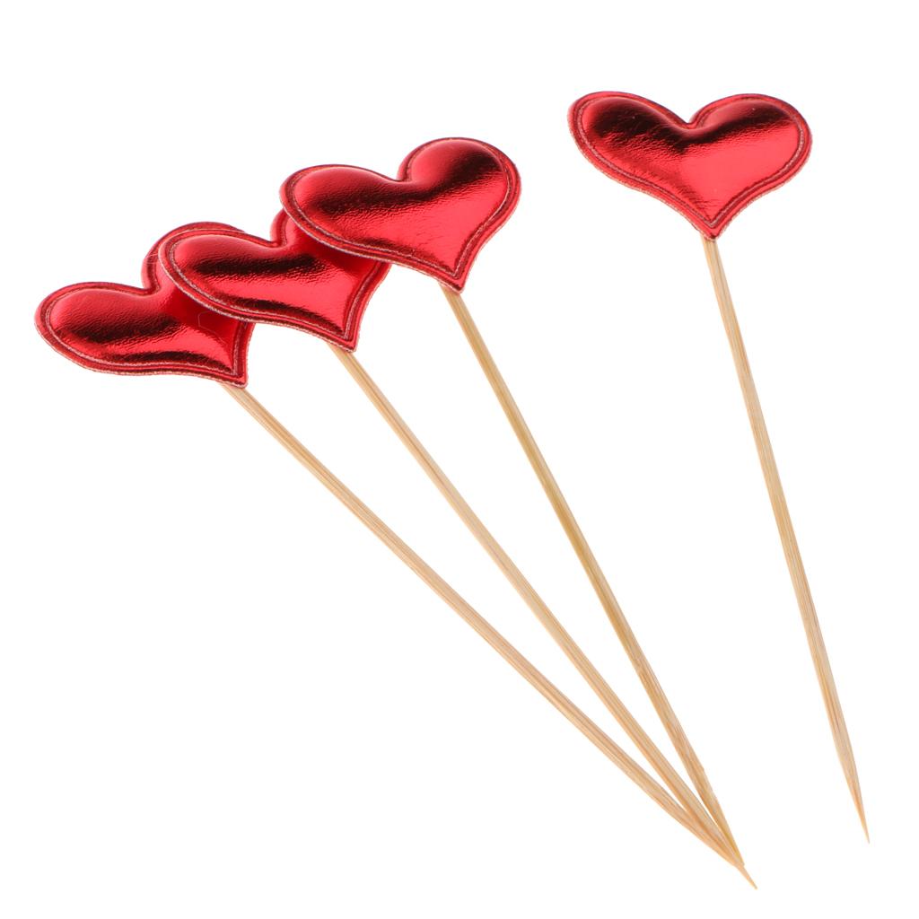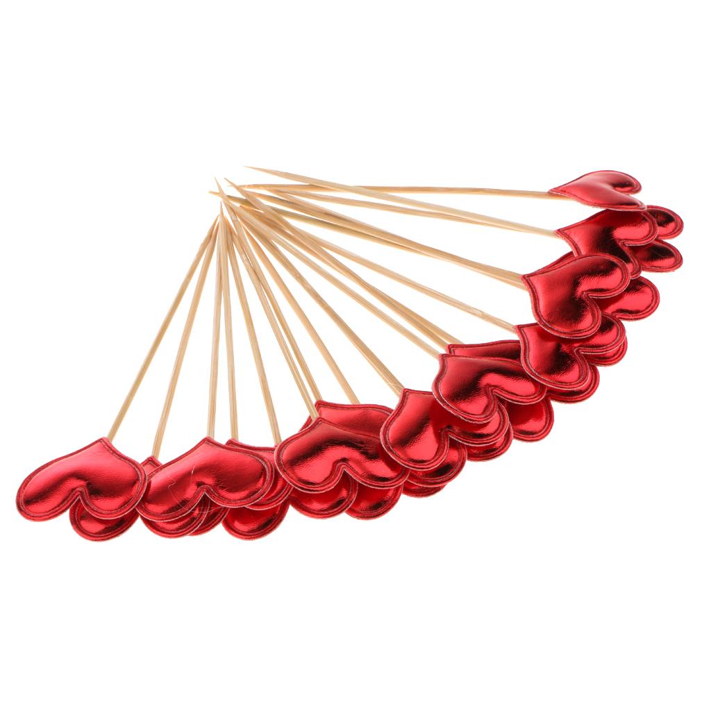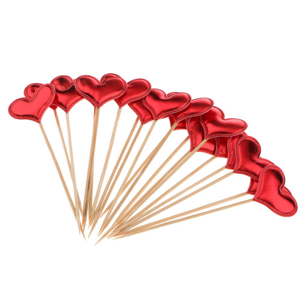 20 Pieces Toothpick Leather Heart Cupcake Picks Birthday Topper Red