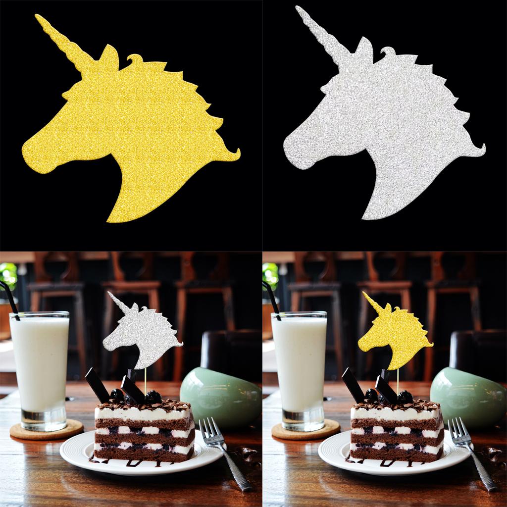 Glitter novelty unicorn head birthday cake toppers cupcake picks