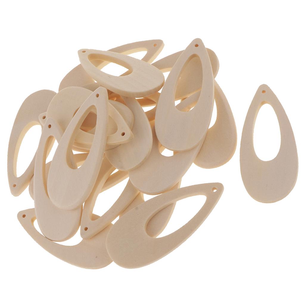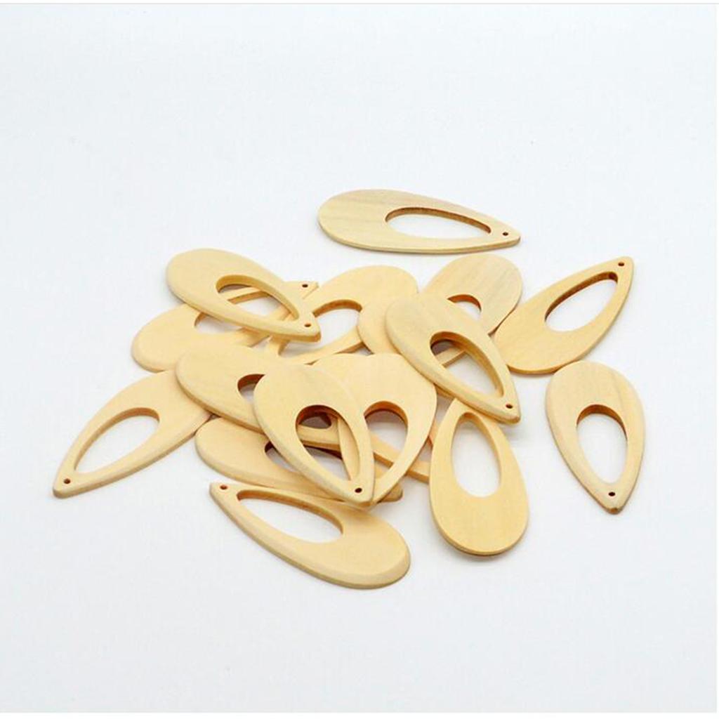 Natural unfinished unpainted wood wooden drop pendants with drilled hole
