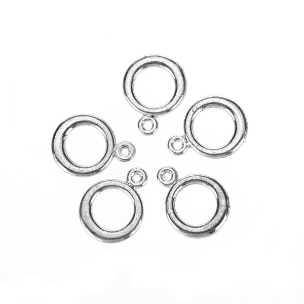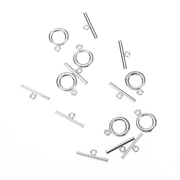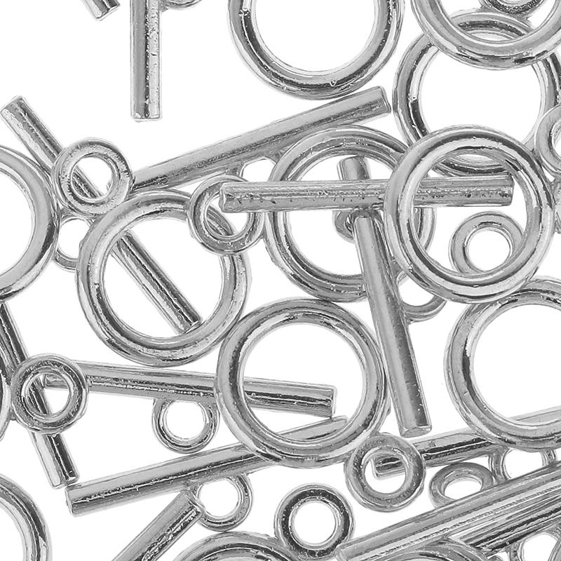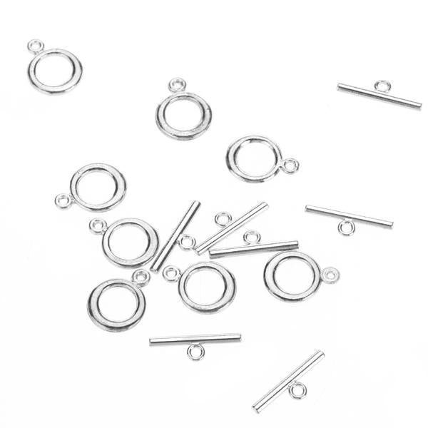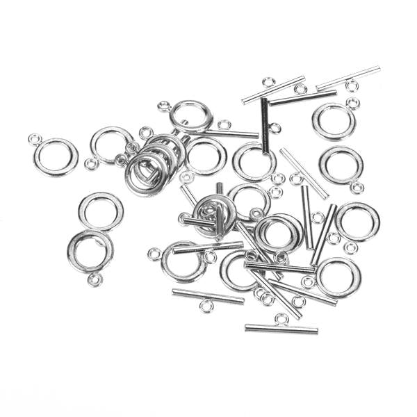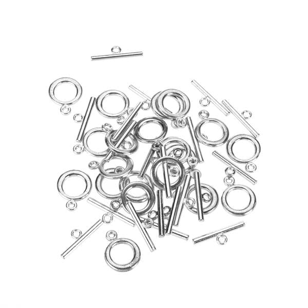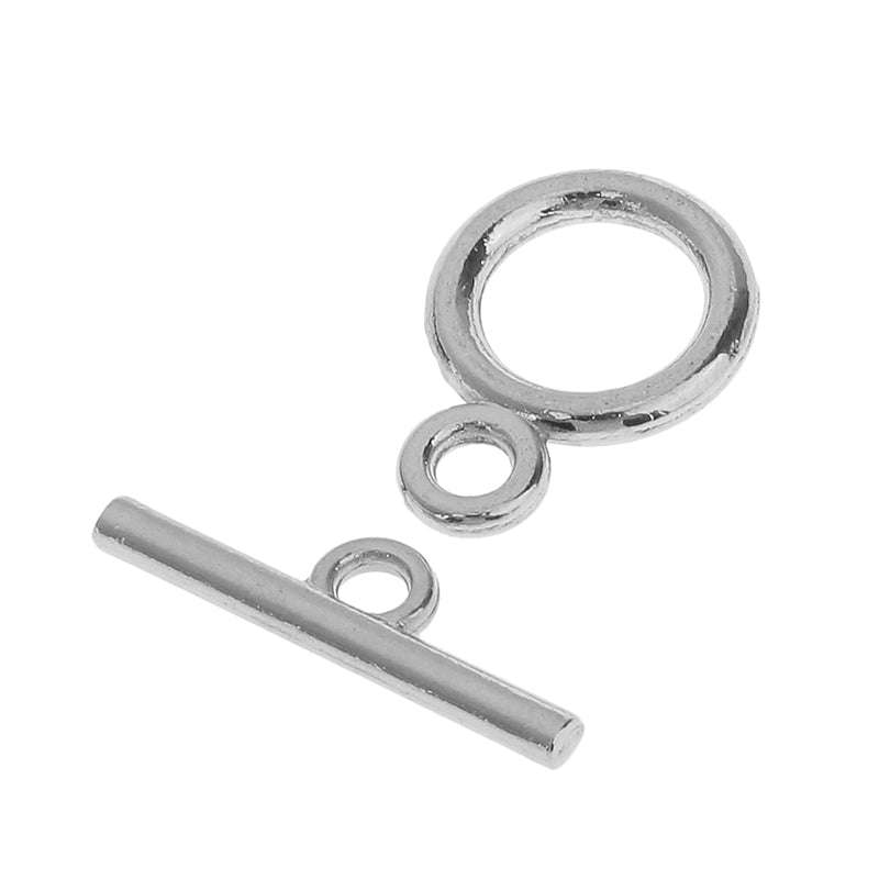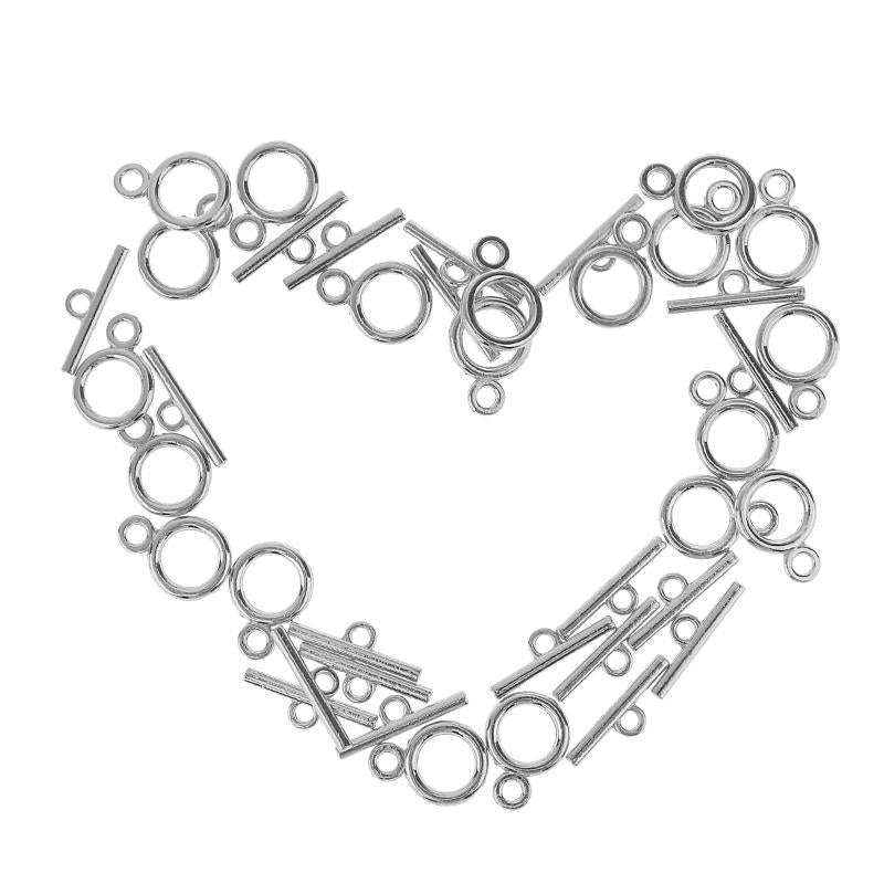 Here are 20 sets of round toggle clasps, each set can be attached to opposite ends of a piece of jewelry. One section of the clasp is a circle, and the other half is a thick bar that attaches to the circle. These 20 sets of round toggle clasps are great accessory for your bracelets, anklets, necklaces, etc.