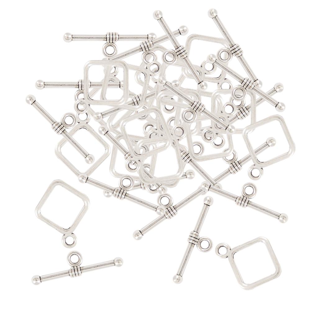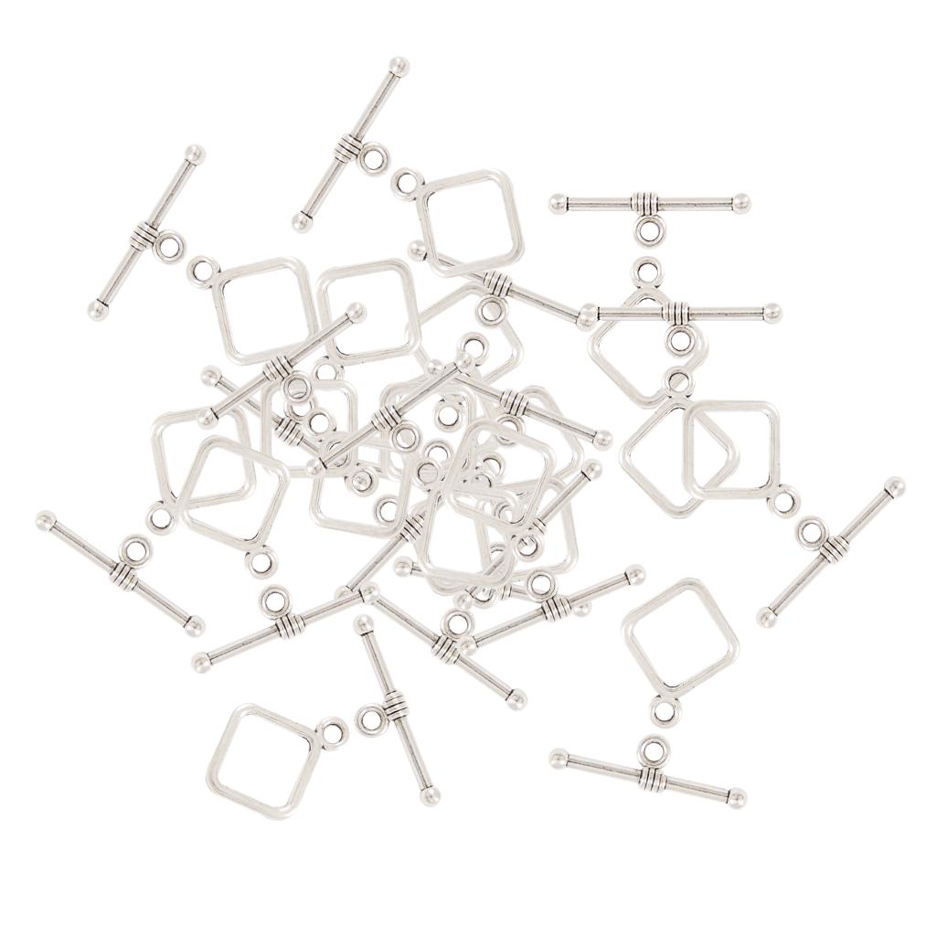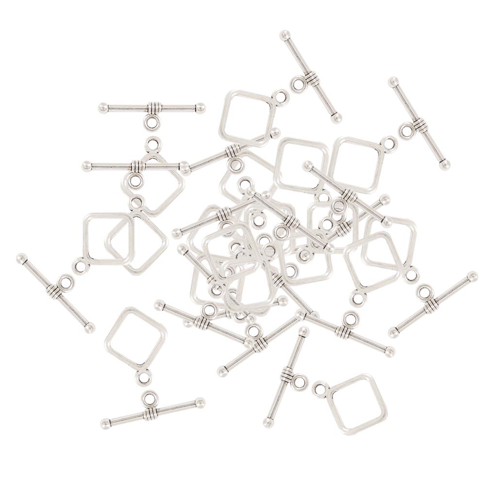 20 sets of Beautiful Retro Tibetan Silver Square bar loop toggle clasps