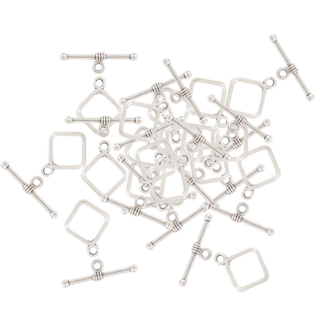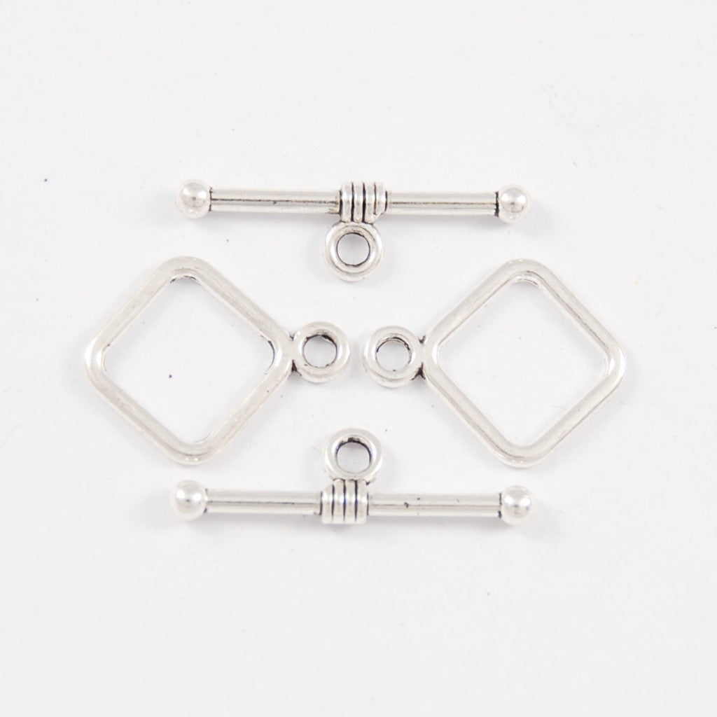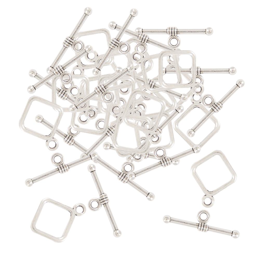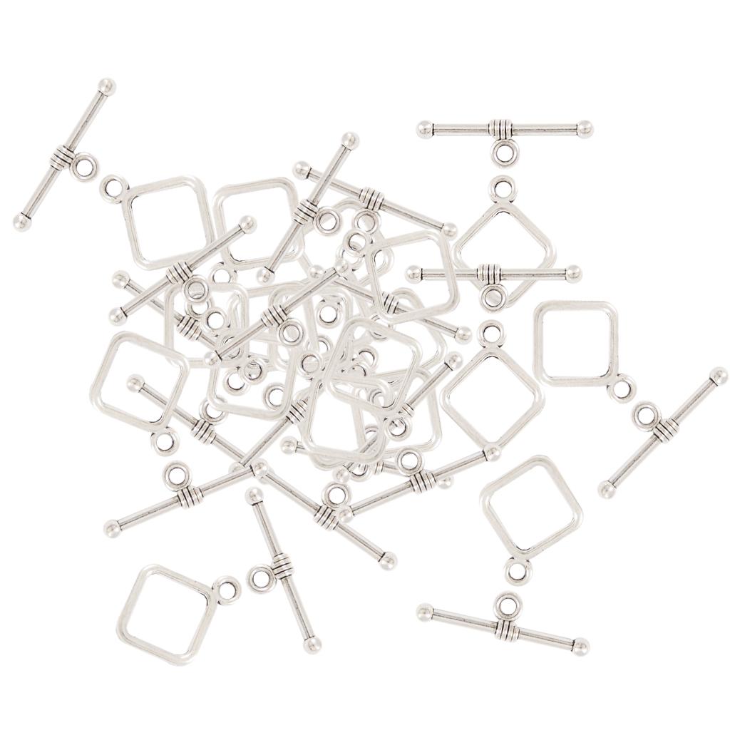 20 sets of Beautiful Retro Tibetan Silver Square bar loop toggle clasps