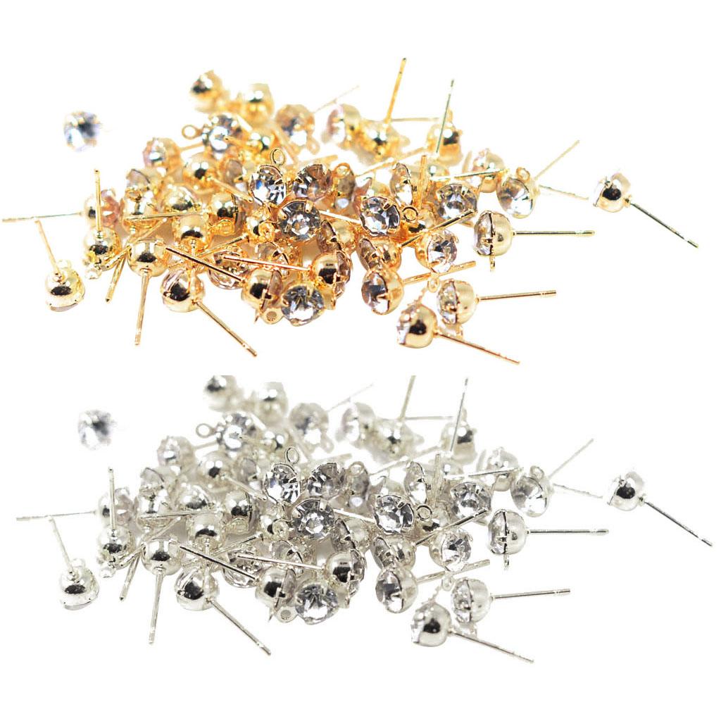 Rhinestone/Solid ball ear post stud with loop, 50pcs of each style