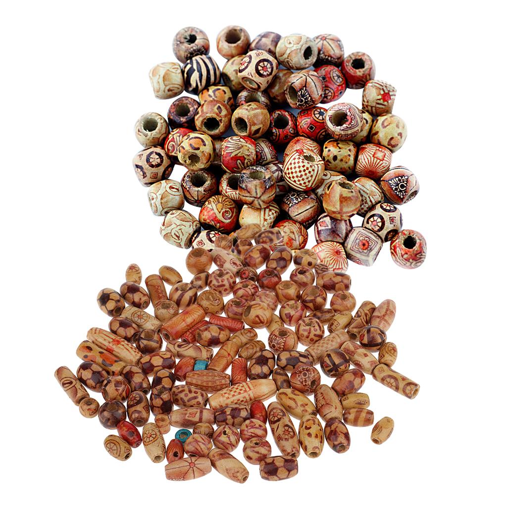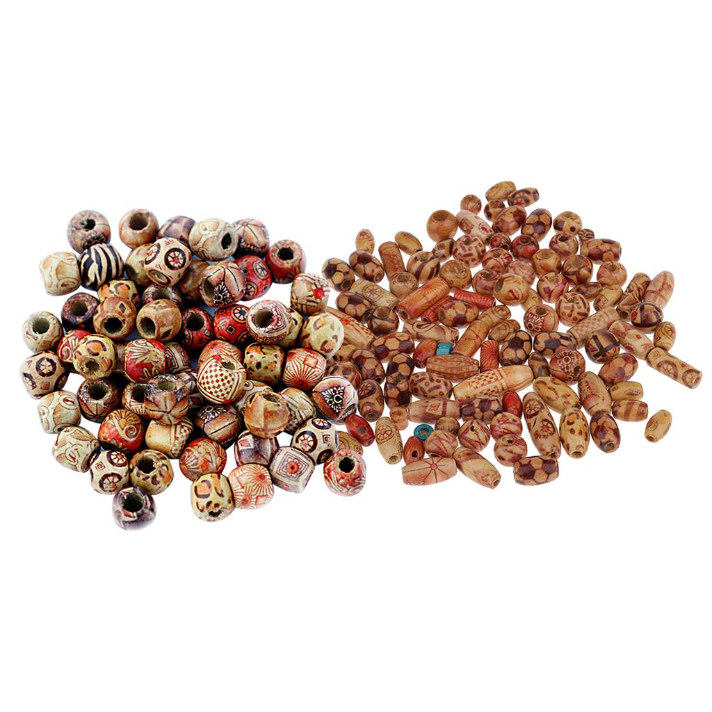 200pcs mixed sizes and shapes(rice/round/tube/fat rice) wood beads.