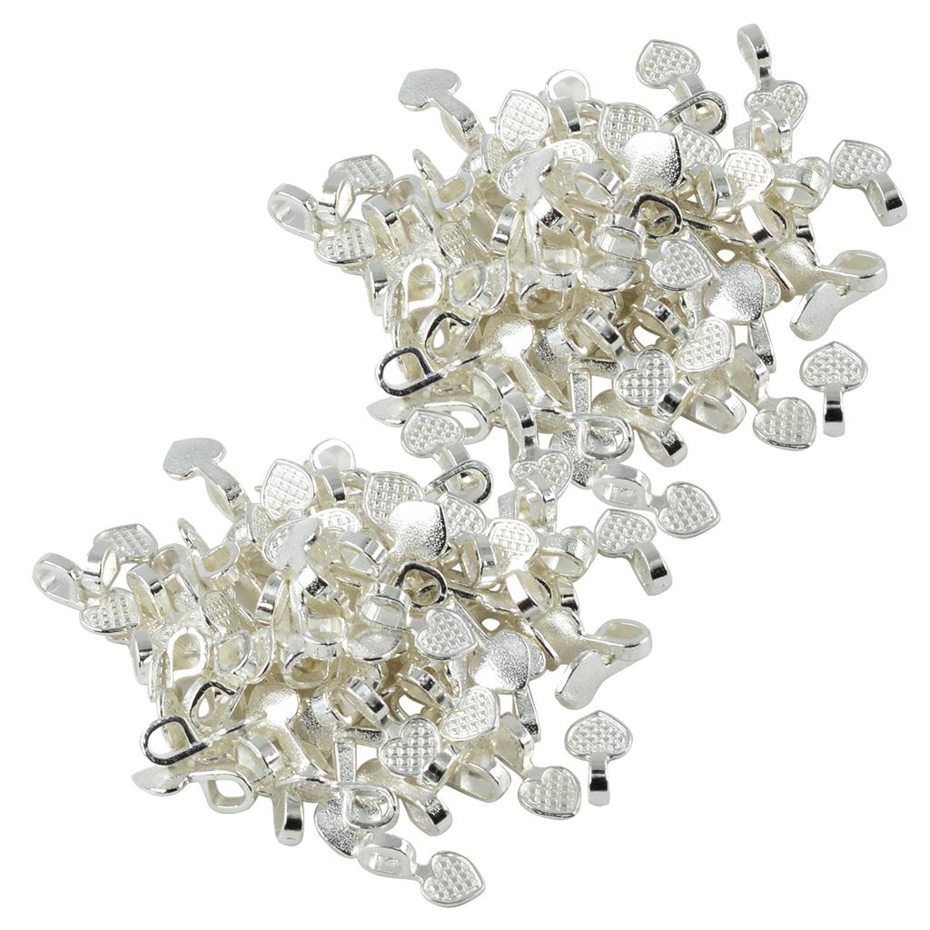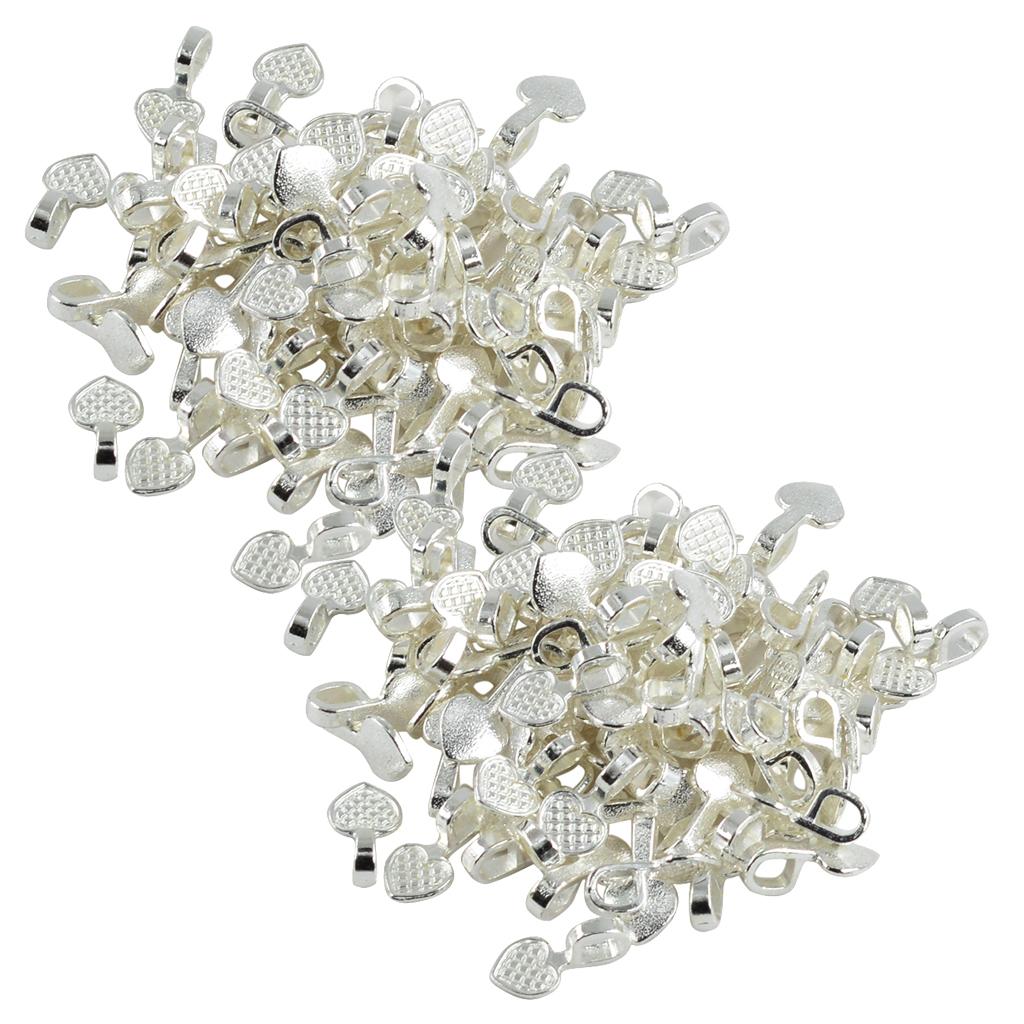 Glue-on flat pad bail has a decorative heart design and closed loop. No need for wire wrapping or drilling holes into focal pieces.