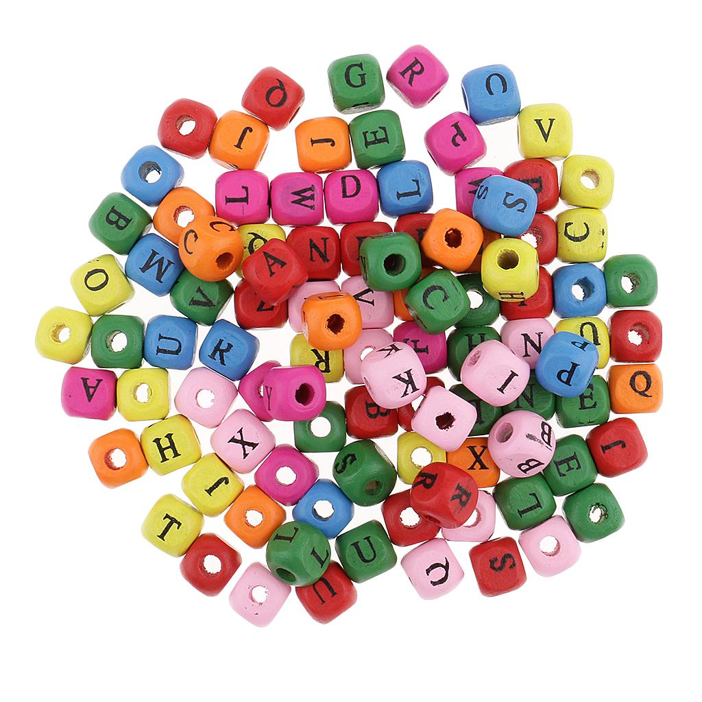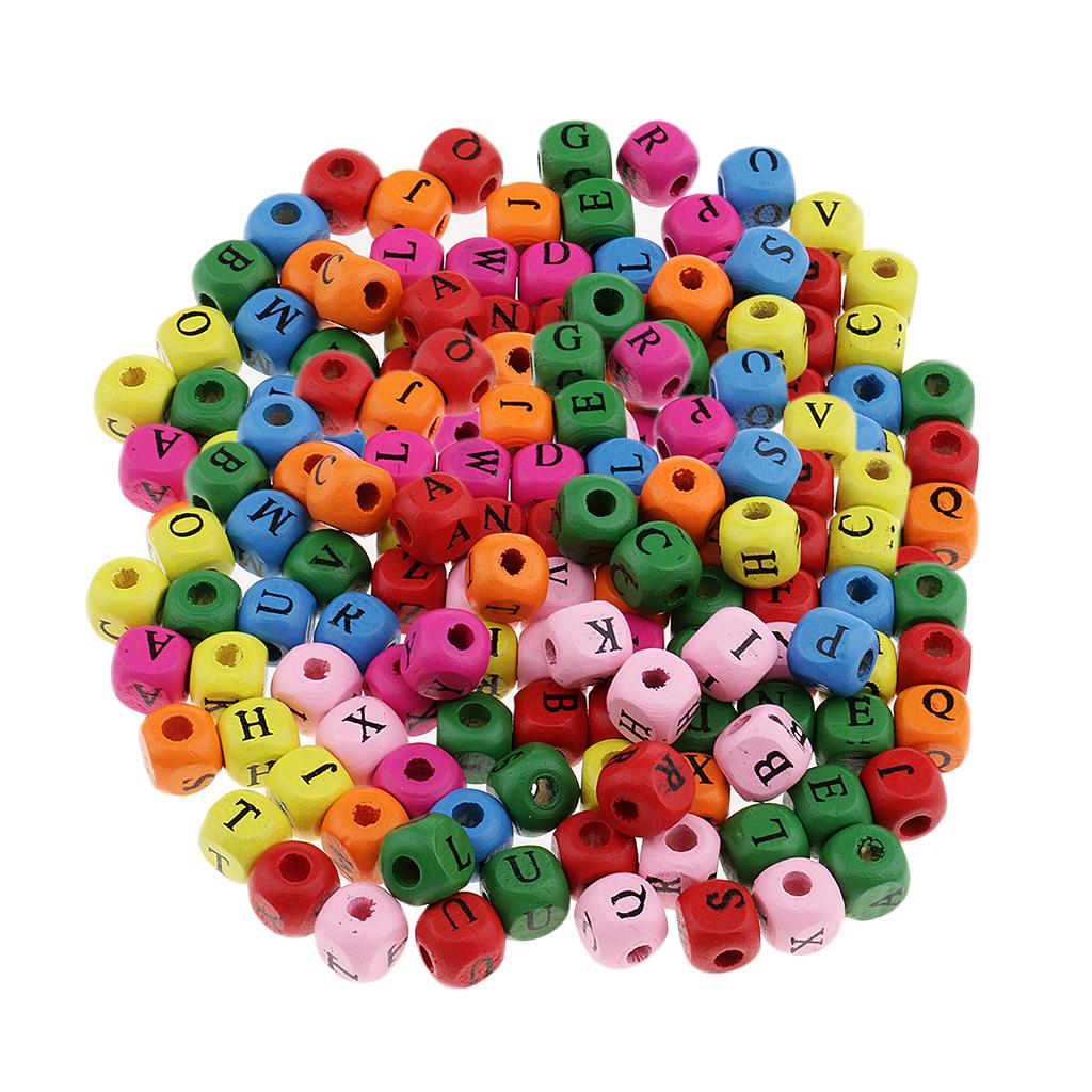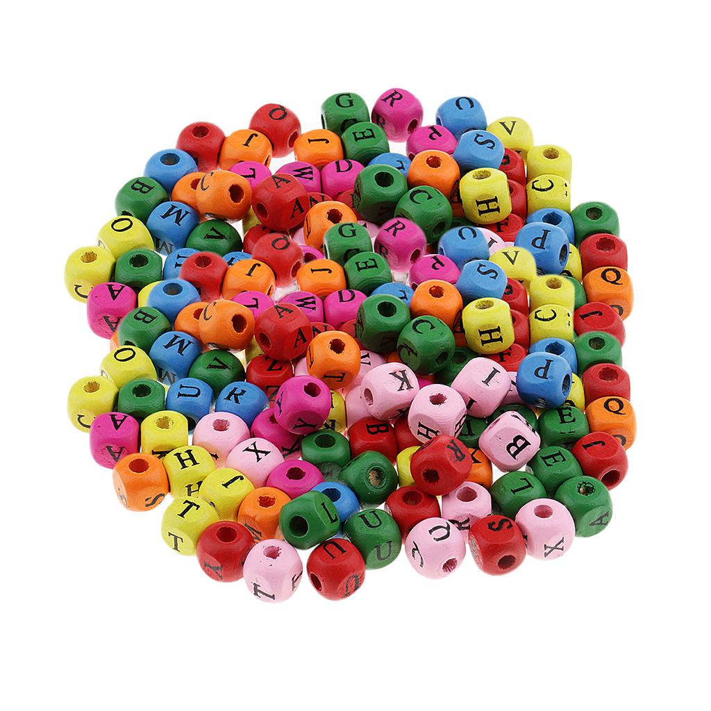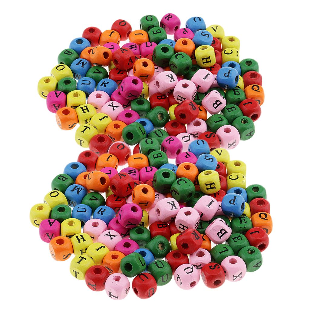 200 Pieces Wooden Alphabet Letters Printed Cube Beads 10mm