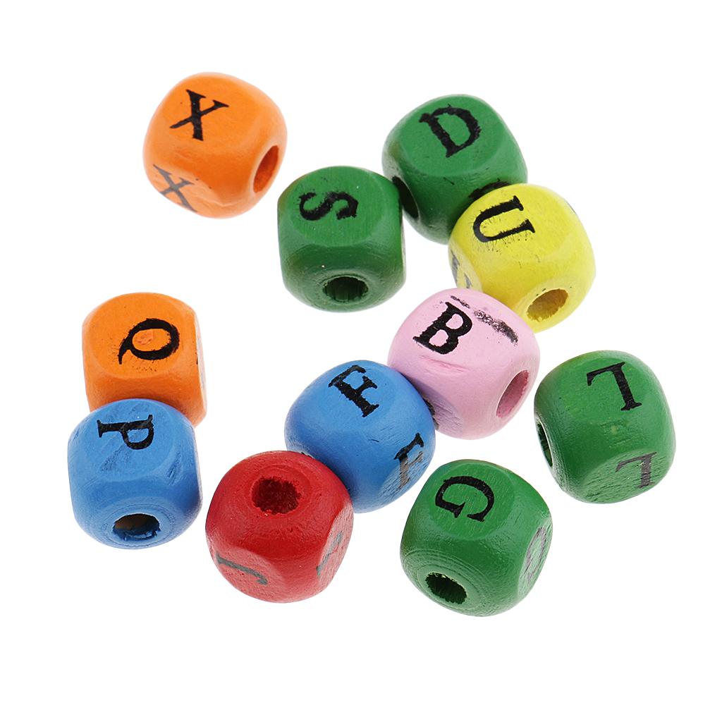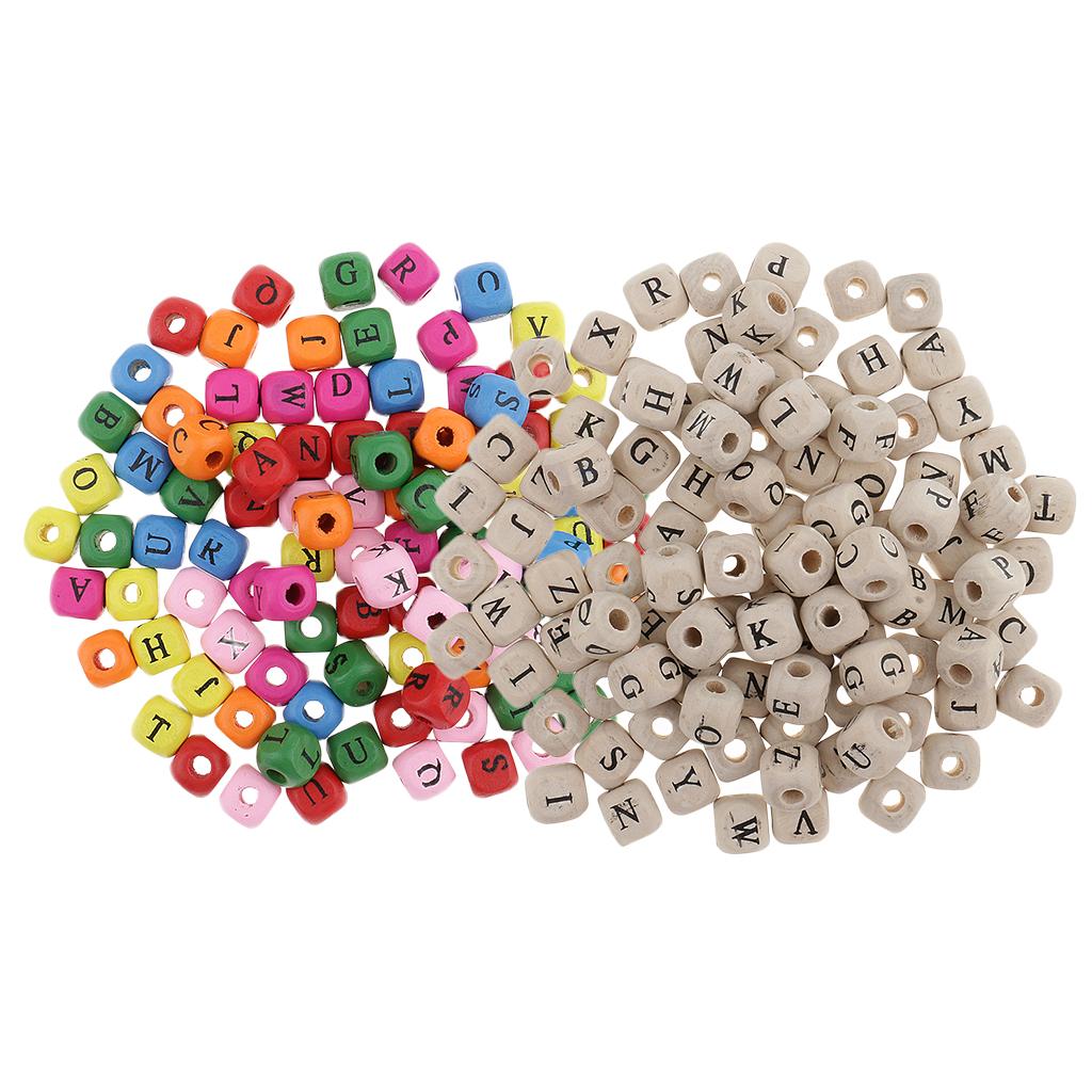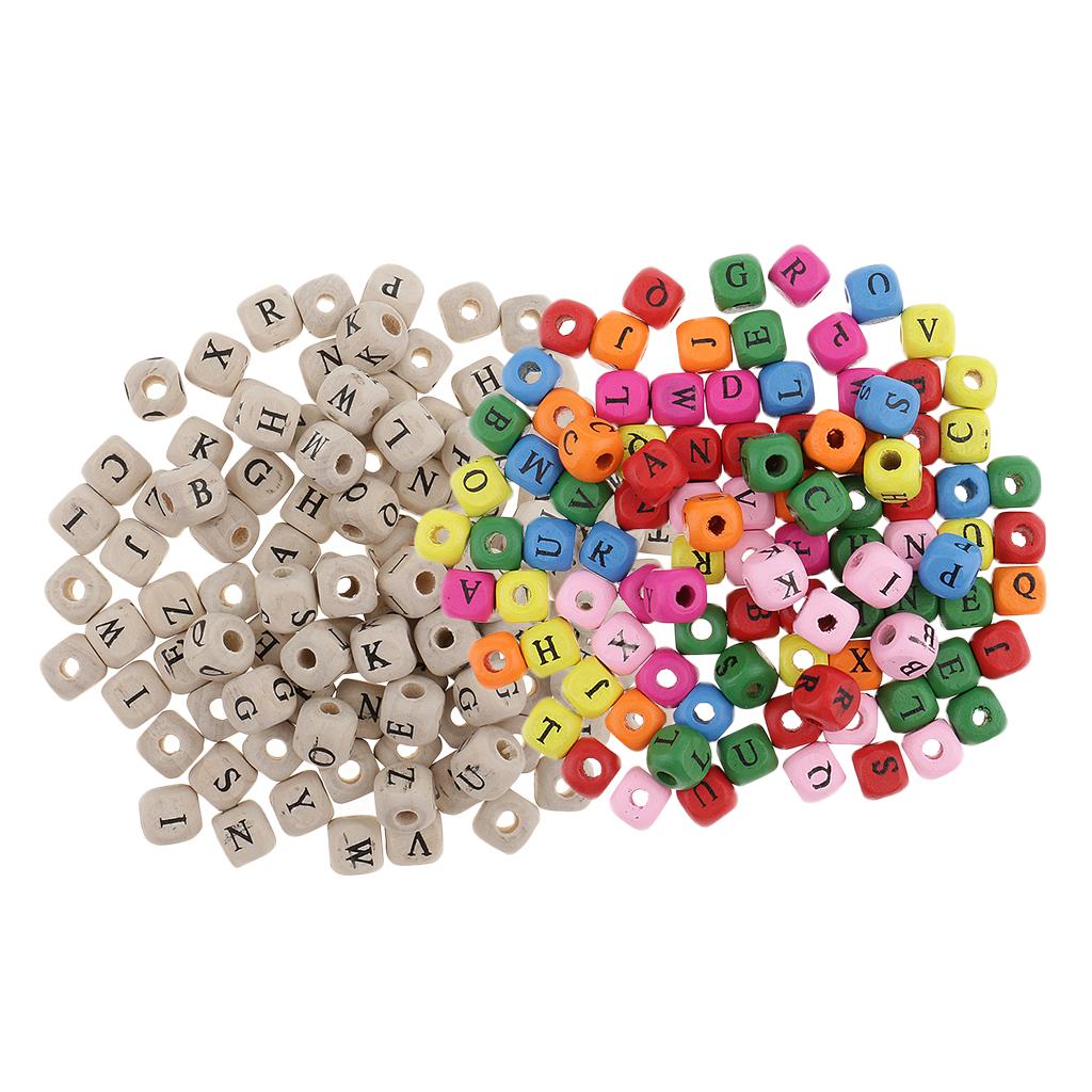 200 Pieces Wooden Alphabet Letters Printed Cube Beads 10mm
