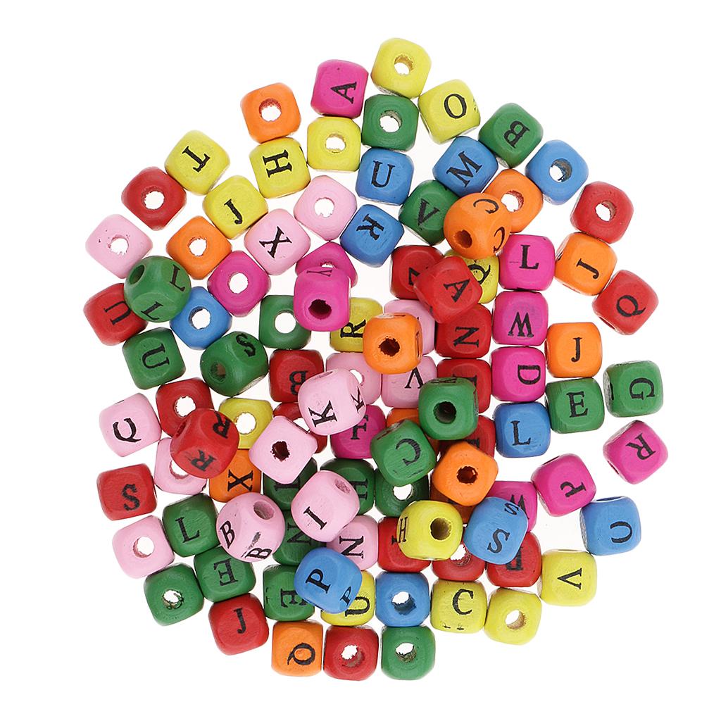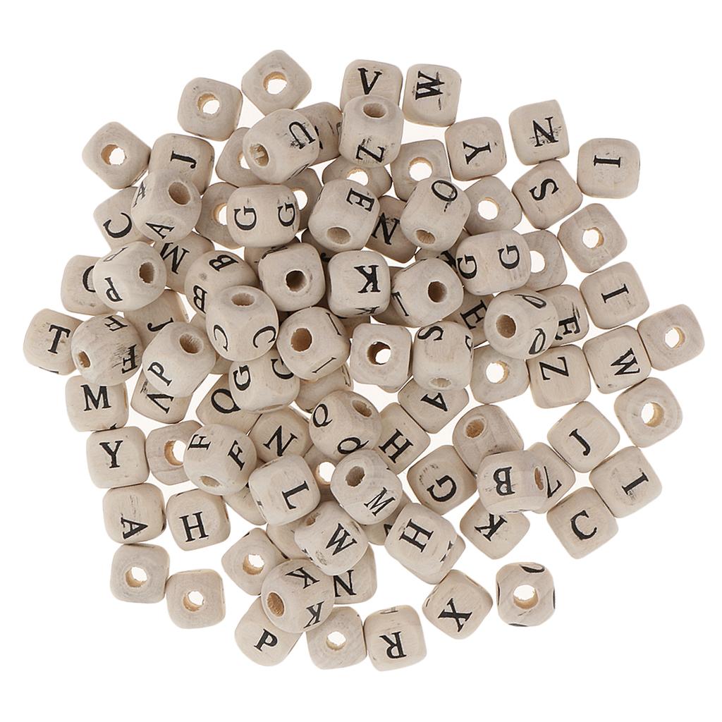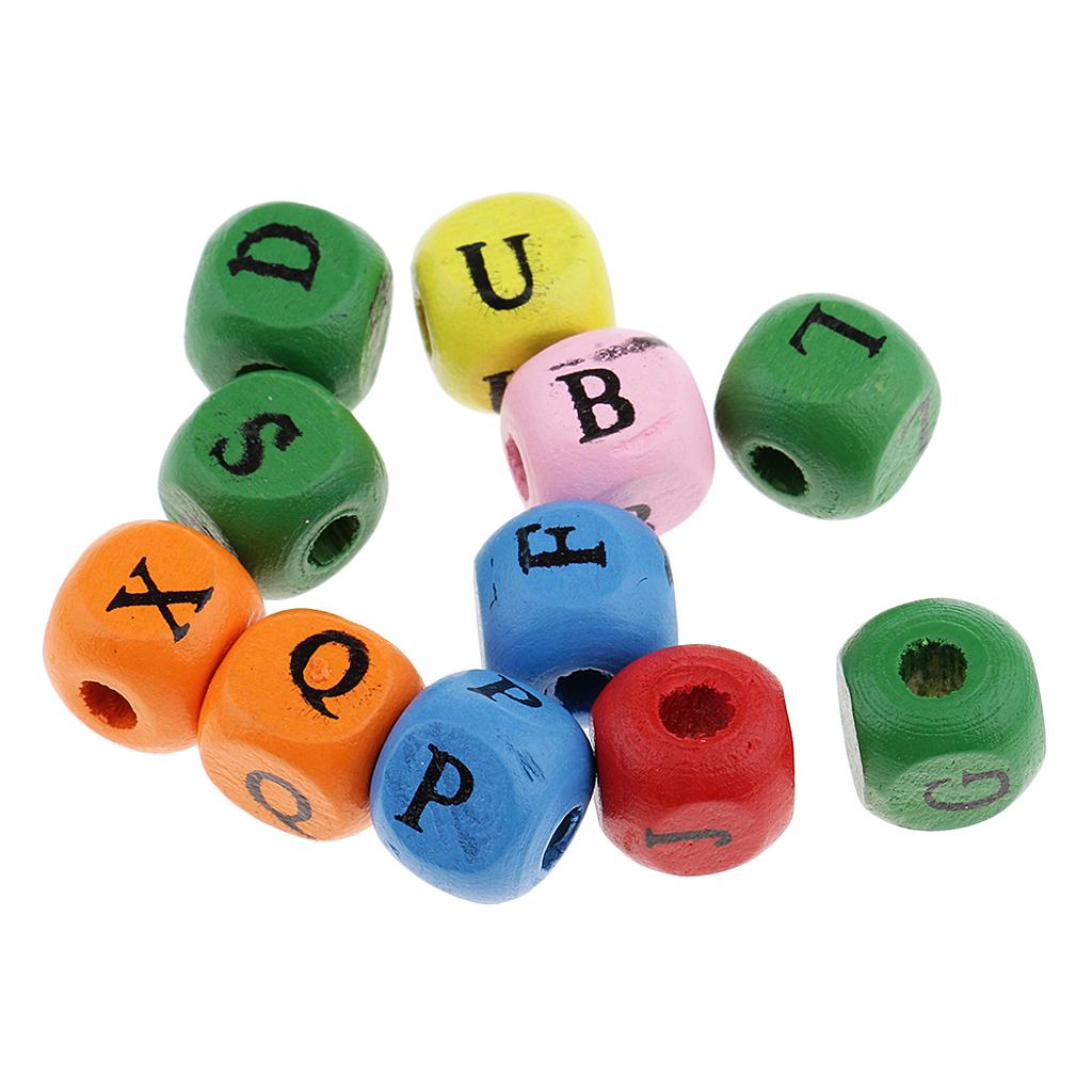 200 Pieces Wooden Alphabet Letters Printed Cube Beads 10mm