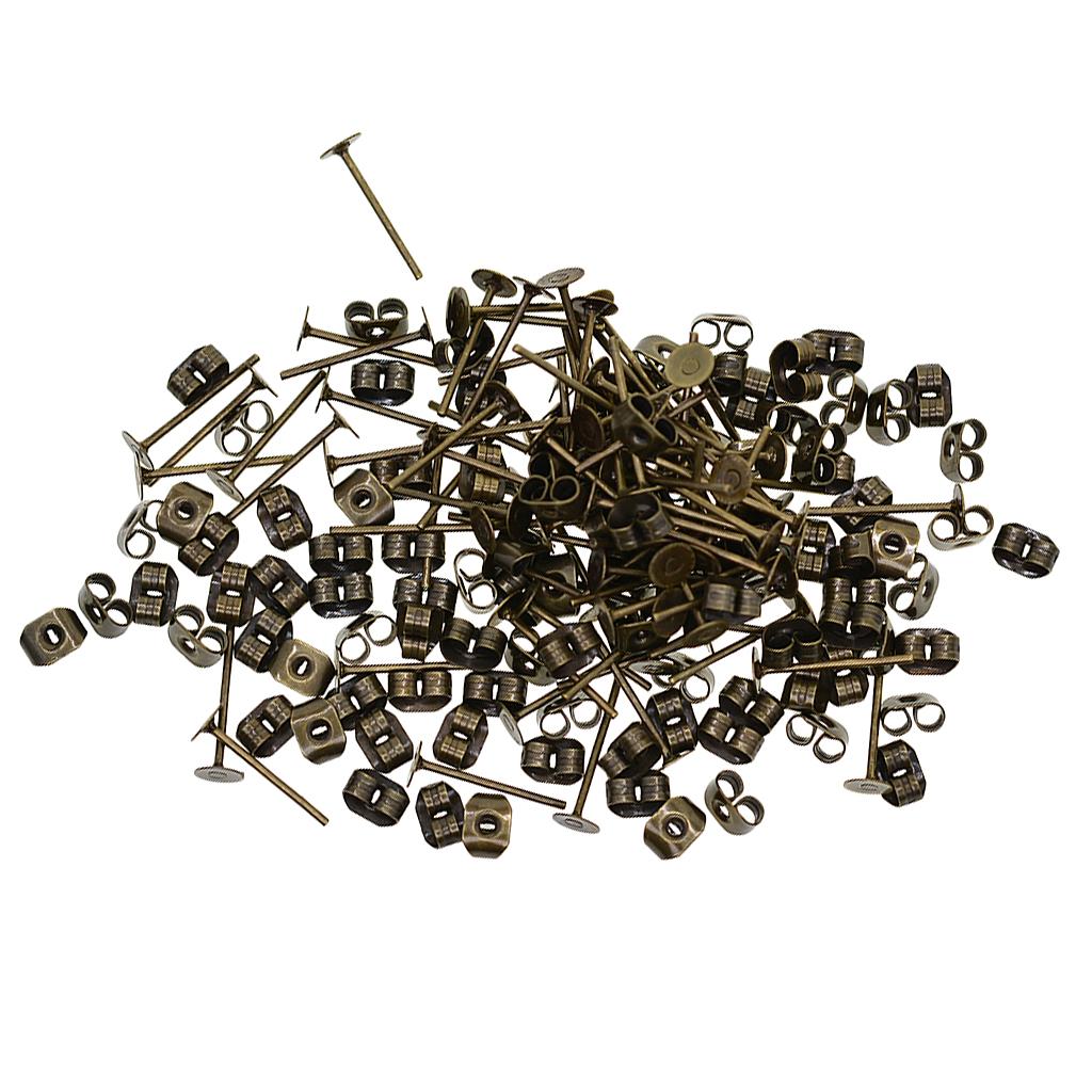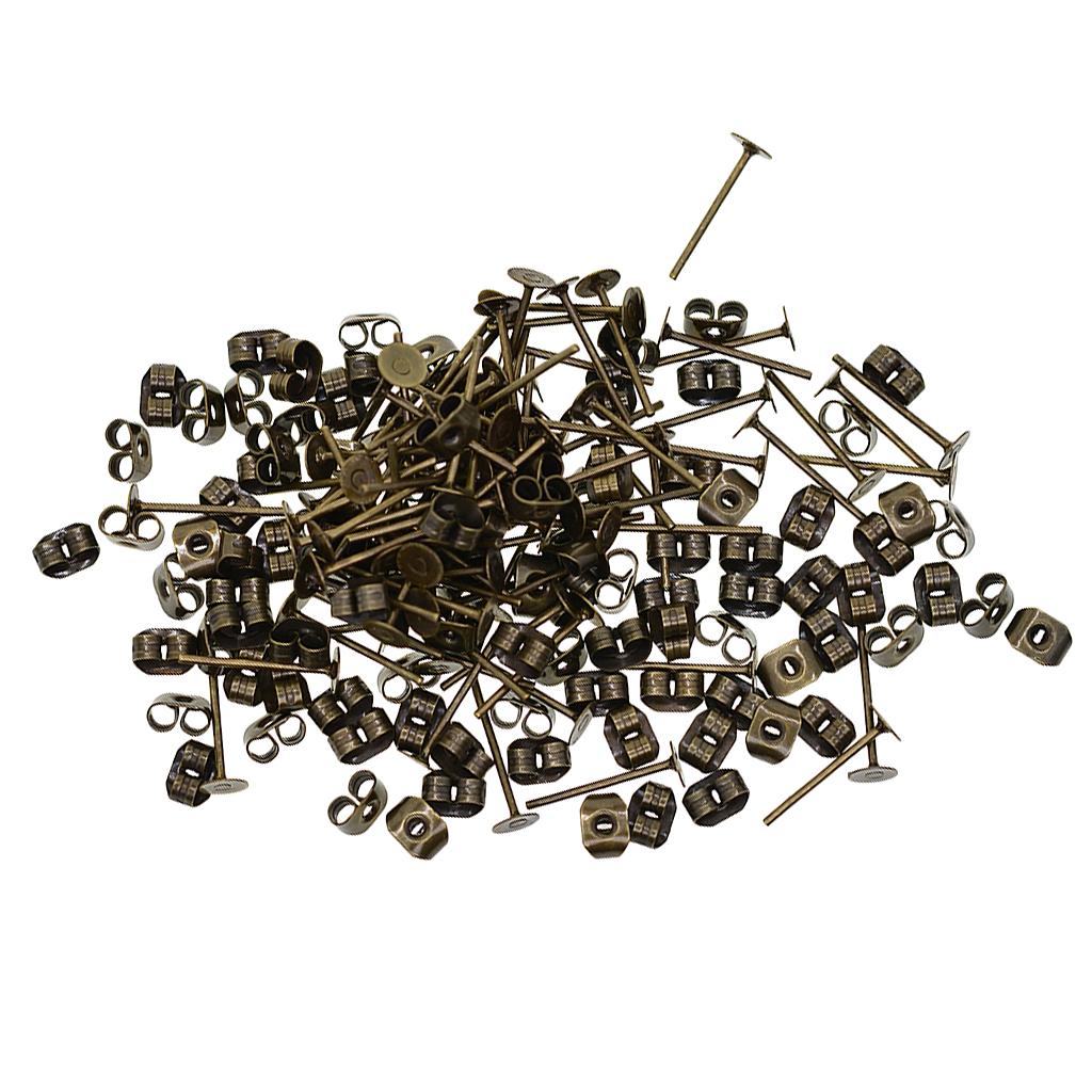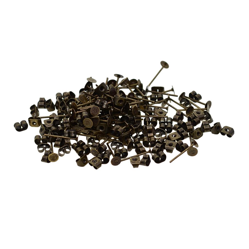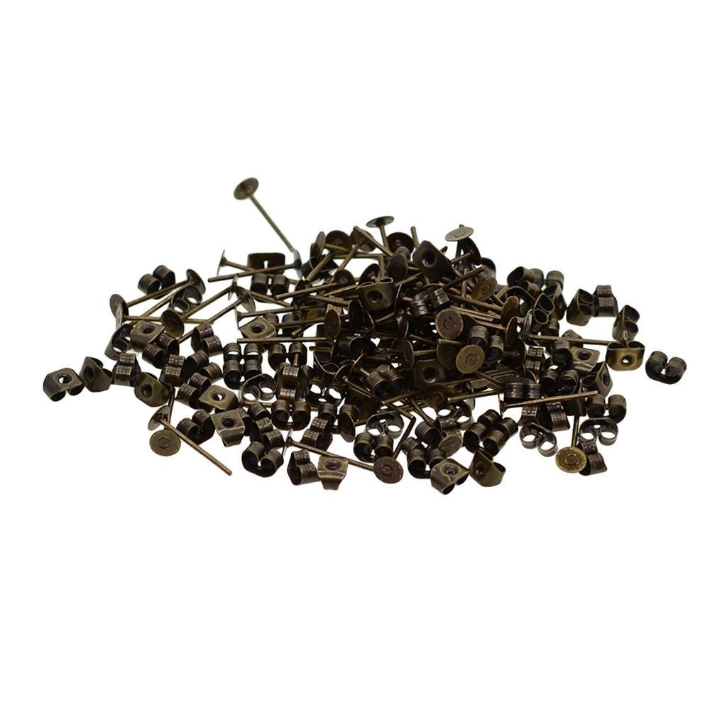 200Pc 4mm Iron Earring Posts and Backs for DIY Earring Findings Bronze