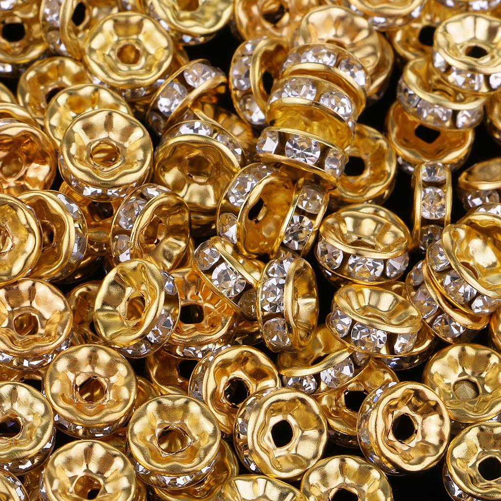 Crystal spacer beads,7mm gold plated round polymer clay crystal beads.