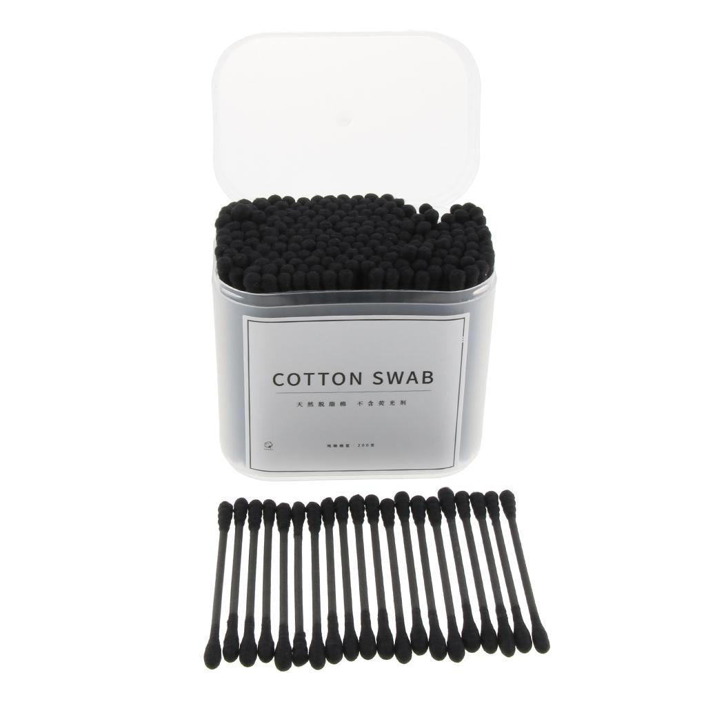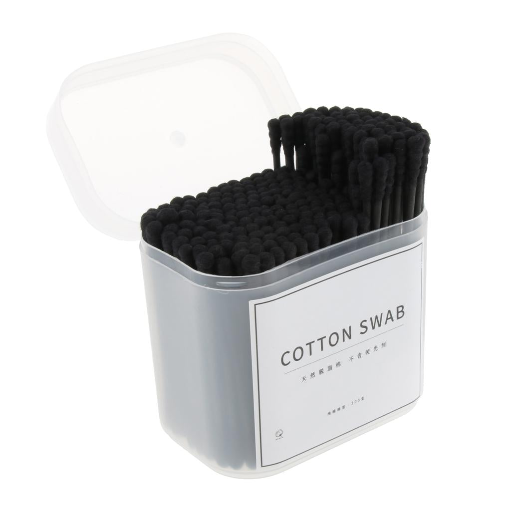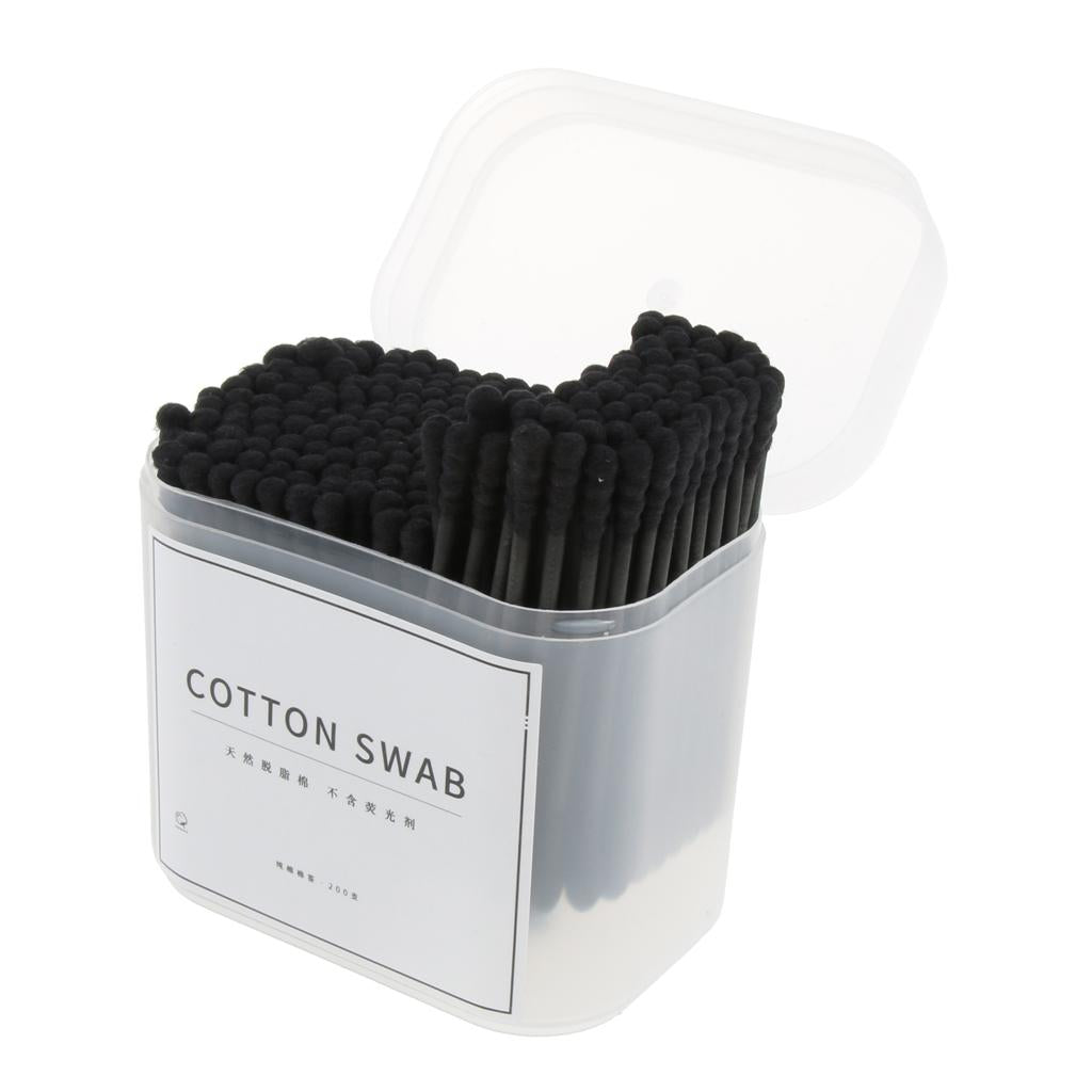 200x Dual Head Cotton Buds Swab Tip Sticks Wooden Makeup Applicator Black