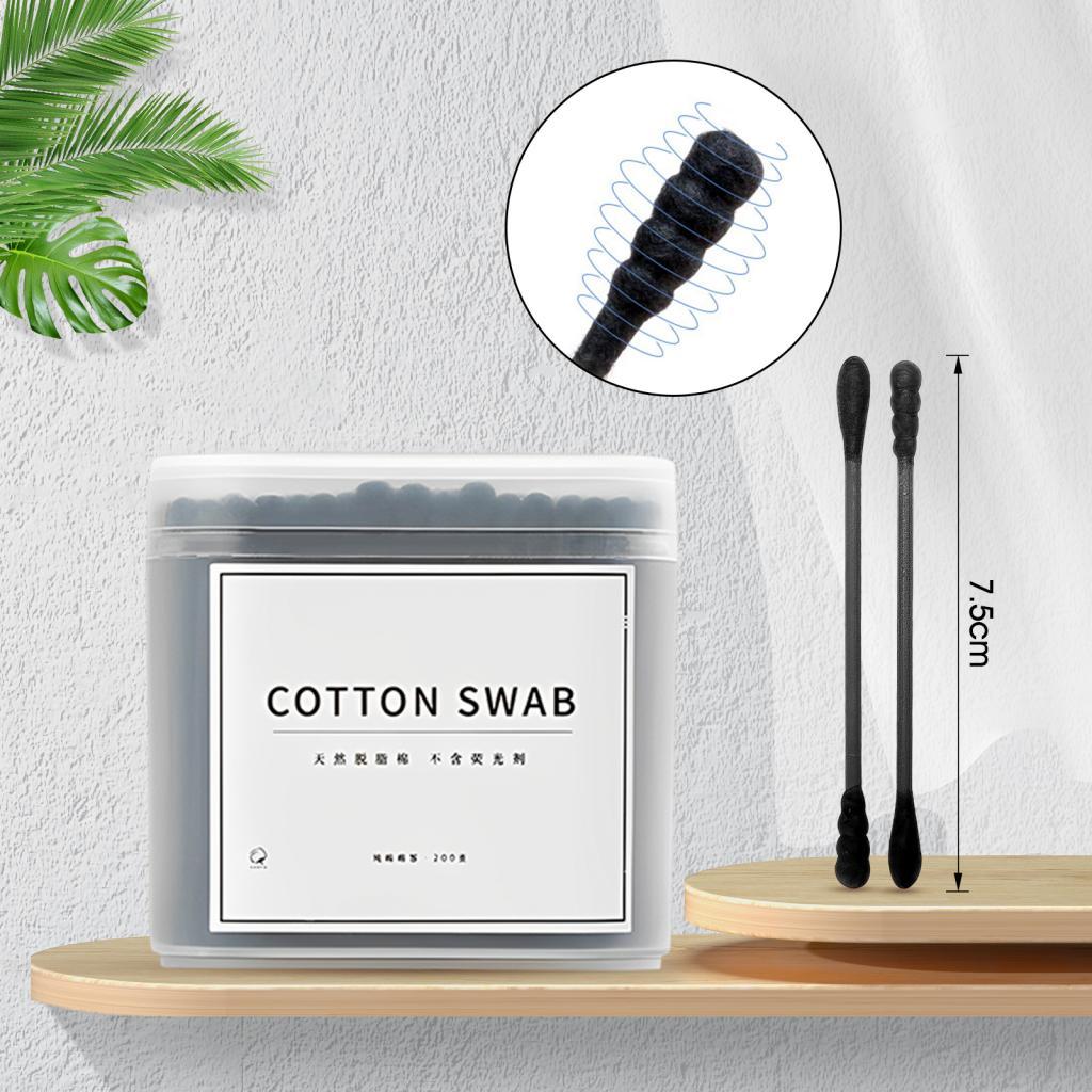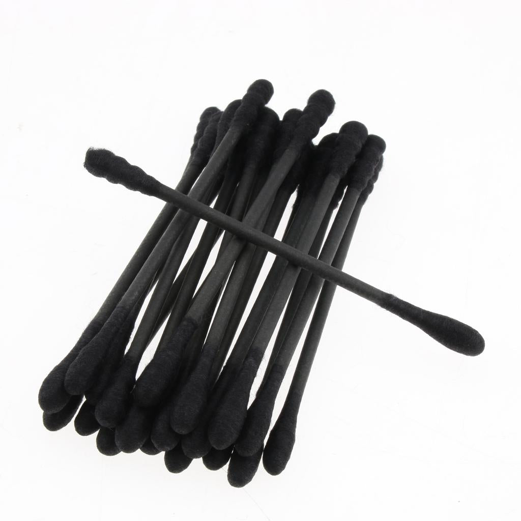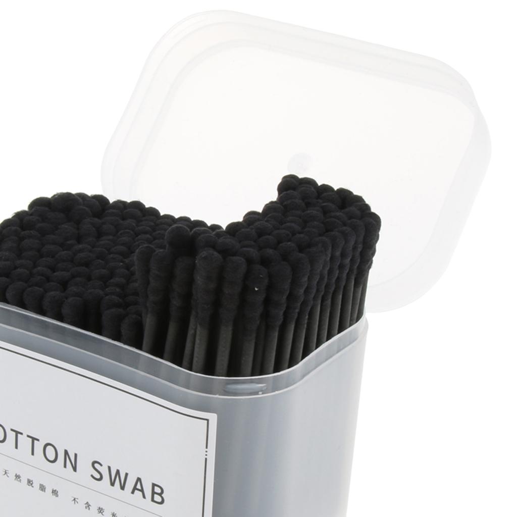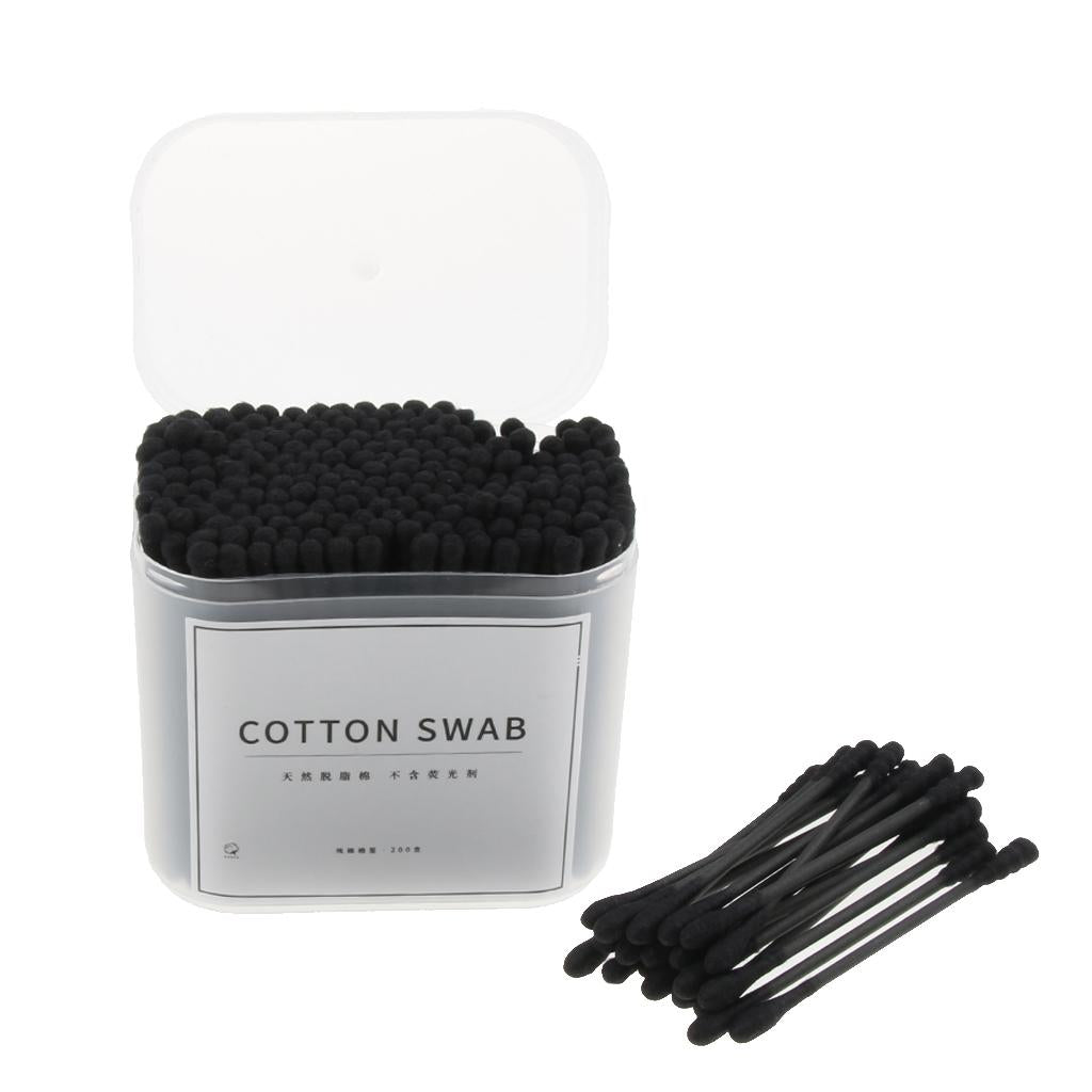 200x Dual Head Cotton Buds Swab Tip Sticks Wooden Makeup Applicator Black