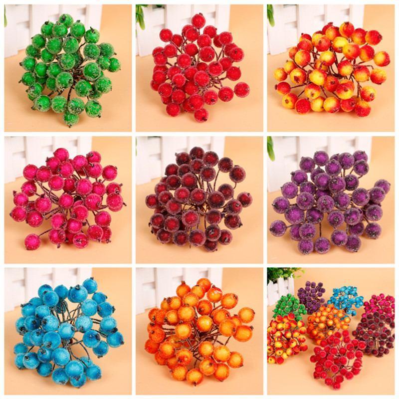 200x Mini Christmas Frosted Fruit Berry Holly Artificial Flower Decor Black
