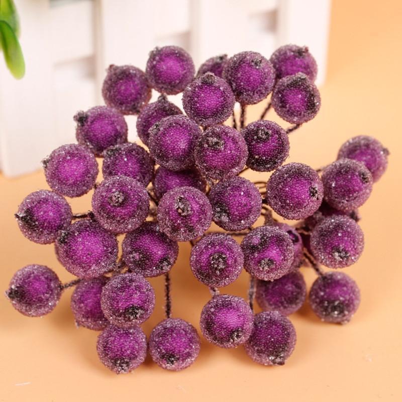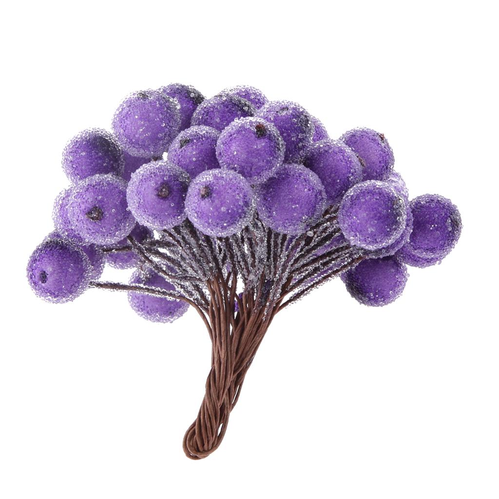 200x Mini Christmas Frosted Fruit Berry Holly Artificial Flower Decor Purple