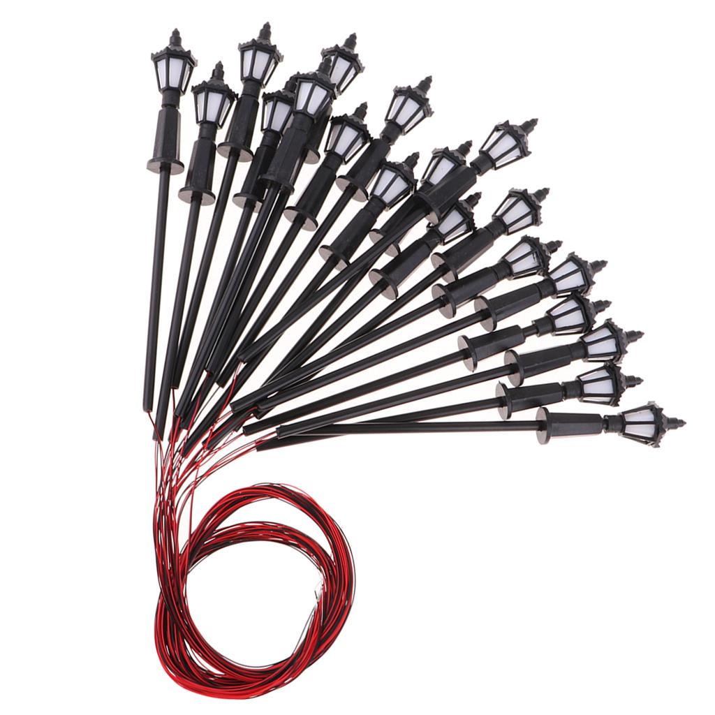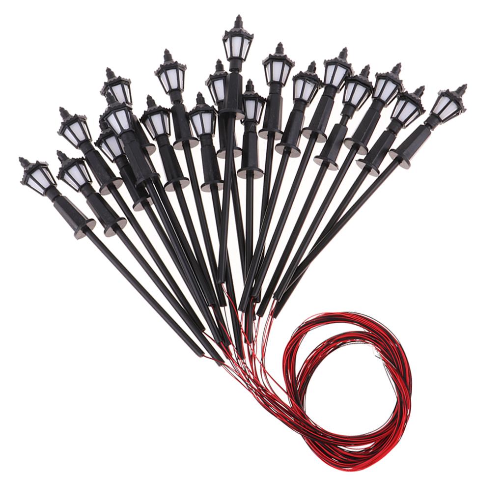 20pcs 1:75 Scale Model Railway Train Lamp Post Miniature Garden Landscape Street Lights HO OO Scale LEDs Single Head