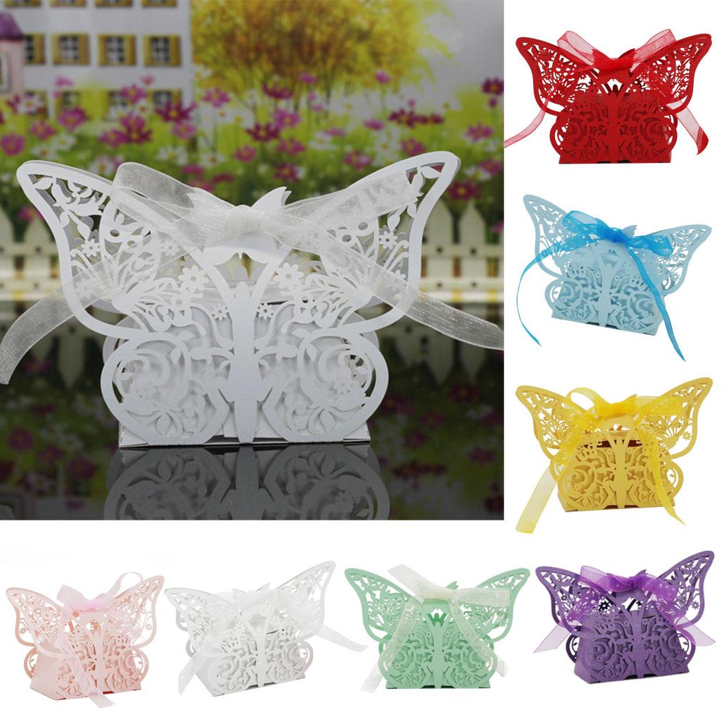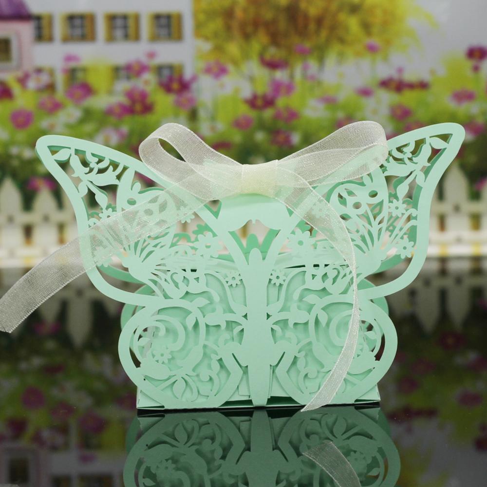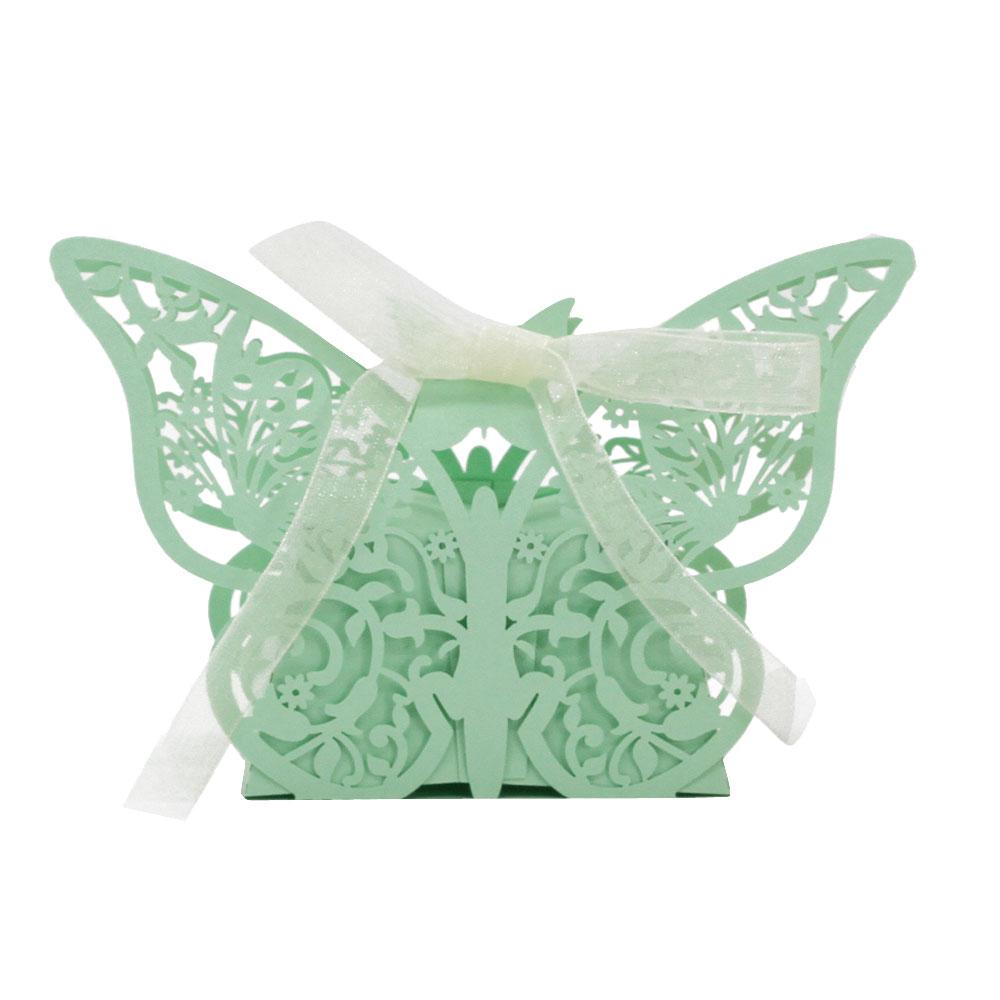 20Pcs Butterfly Sweets Candy Gift Boxes w/ Ribbon Wedding Party favor Green