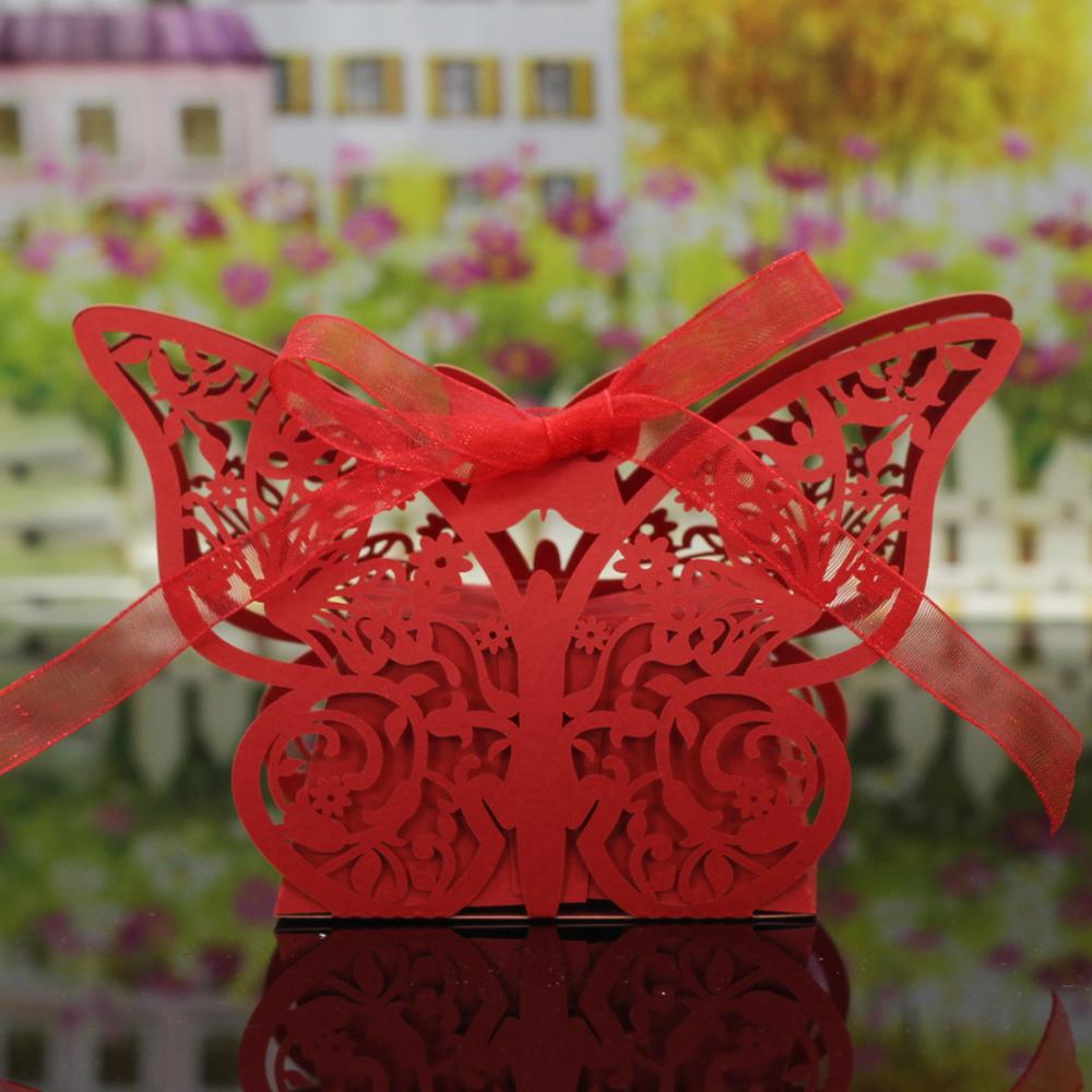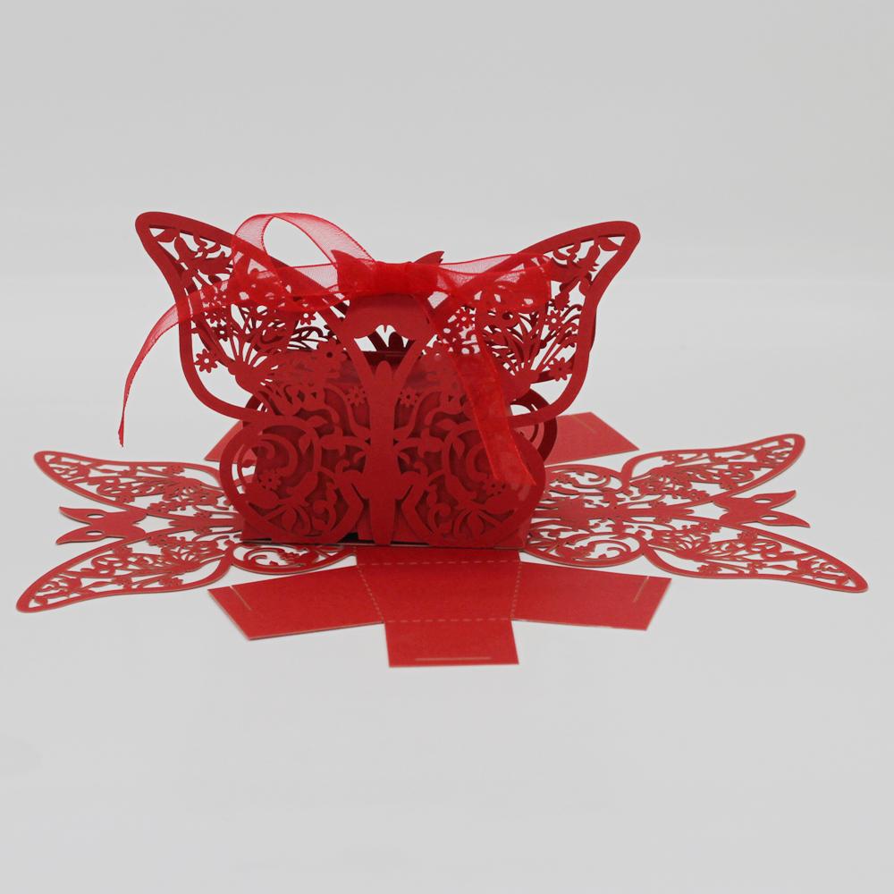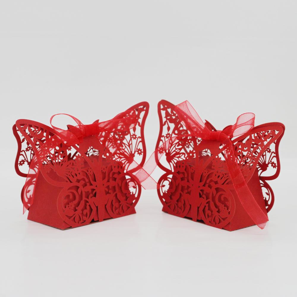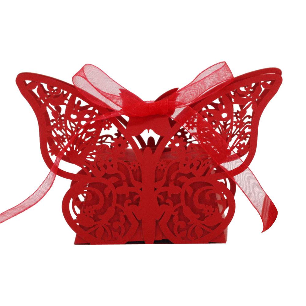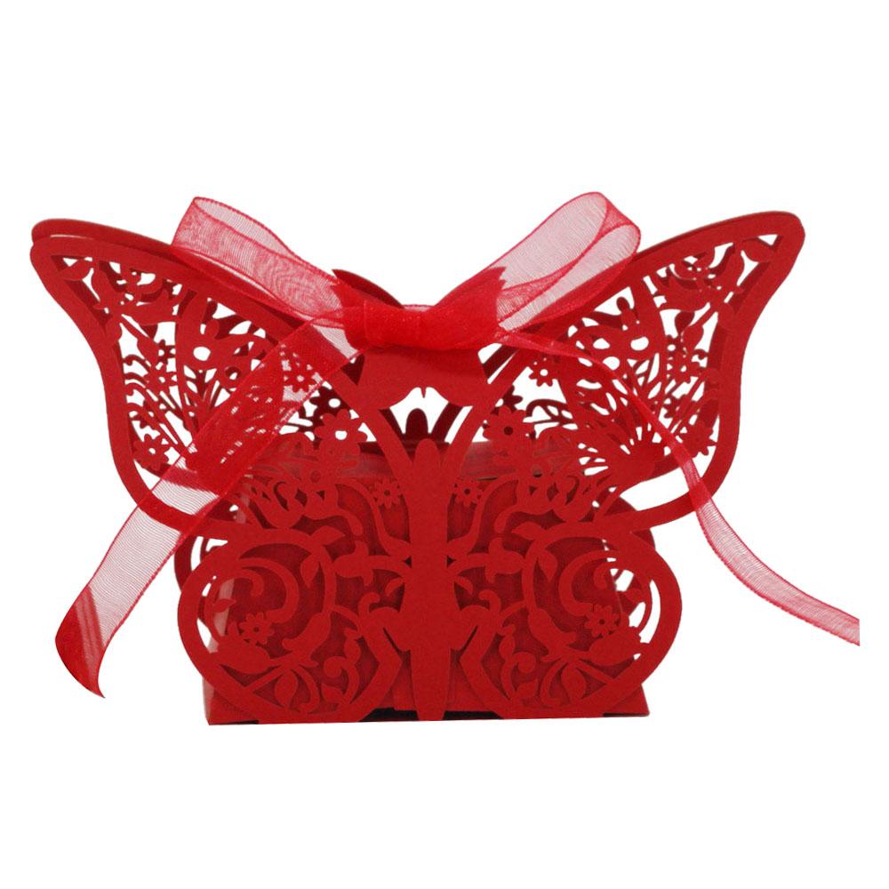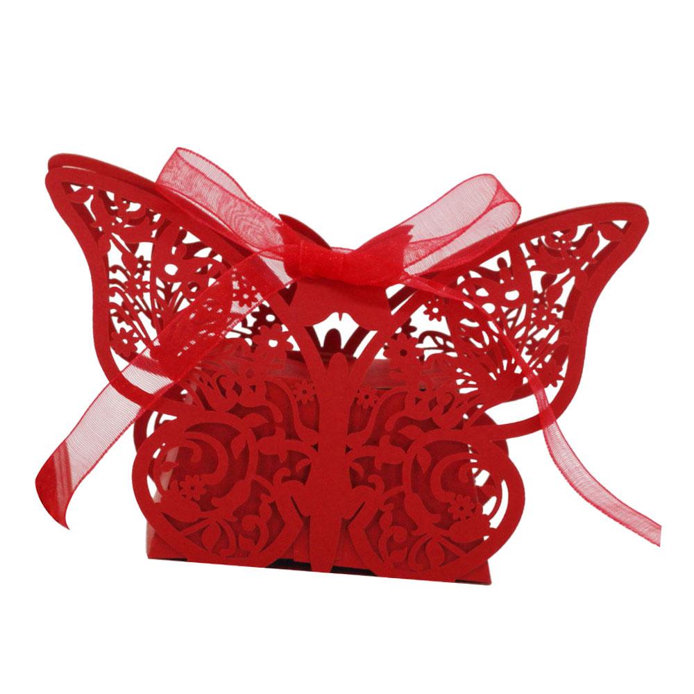 20Pcs Butterfly Sweets Candy Gift Boxes with Ribbon Wedding Party favor Red