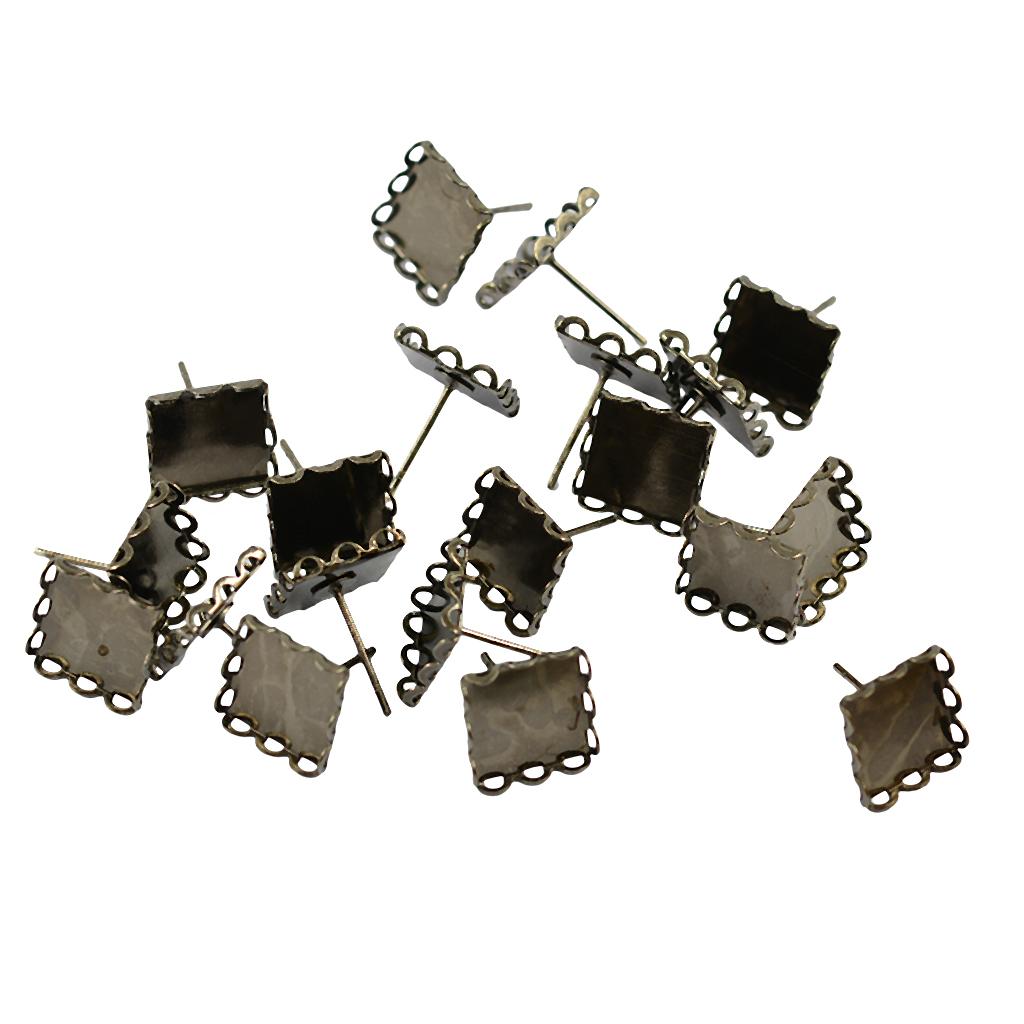 20pcs DIY Ear Stud Cabochon Bezel Setting Earring Findings Metallic Black