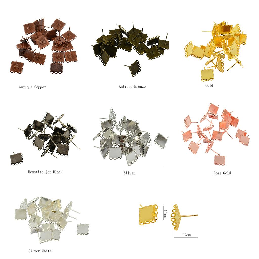 • Those finding is feartured a blank bezel setting Square, Easy To glue on 10mm resin, gemstone or something else you like, make it a different earring.