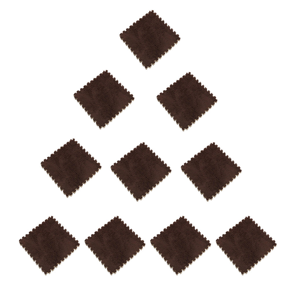10 Pieces Soft Puzzle Floor Mats - Brown