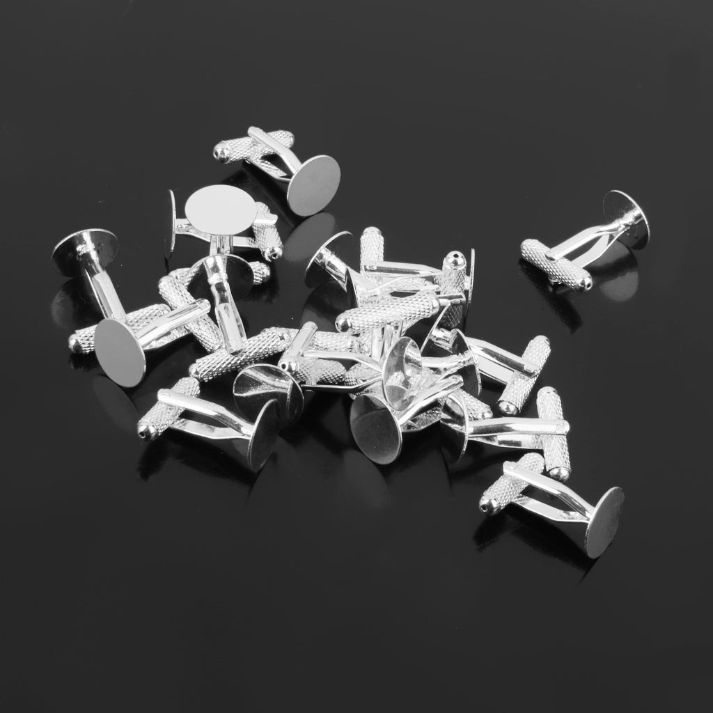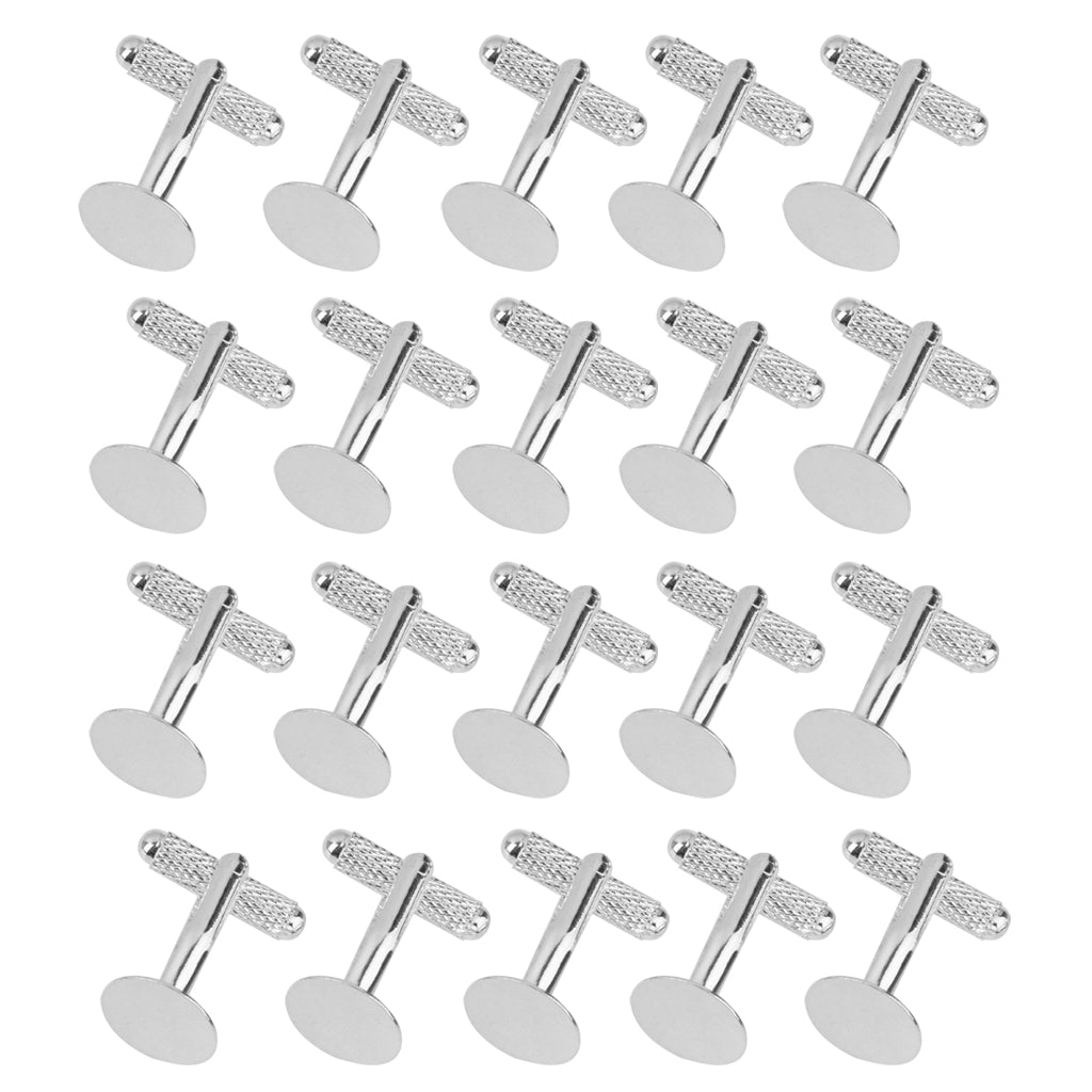 20Pcs Fashion Men Silver 12mm Flat Round Blank Settings Cuff Links Cufflinks