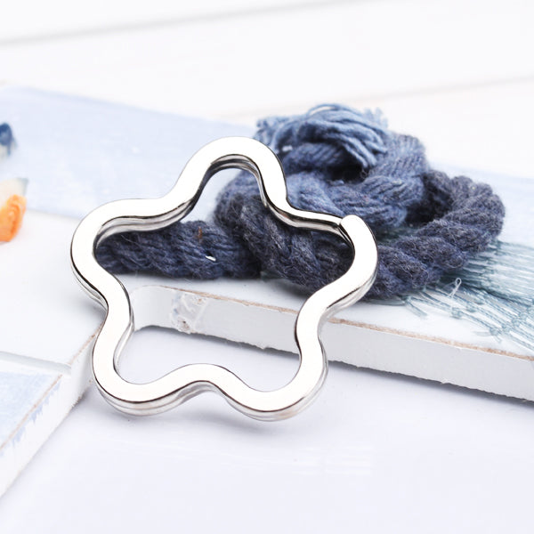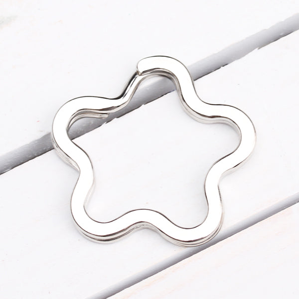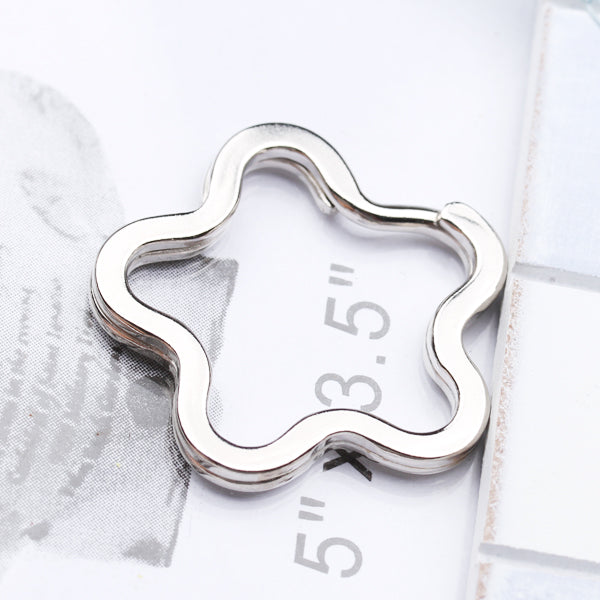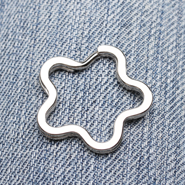 Flower shaped split rings are adorable addition to any key set. Just add favorite beads, photo charms, pendants to these handy, secure split key ring. Ideal for making key rings or bag charms, these split rings can be used as the fountain of a truly personalized accessory for yourself or as a gift.