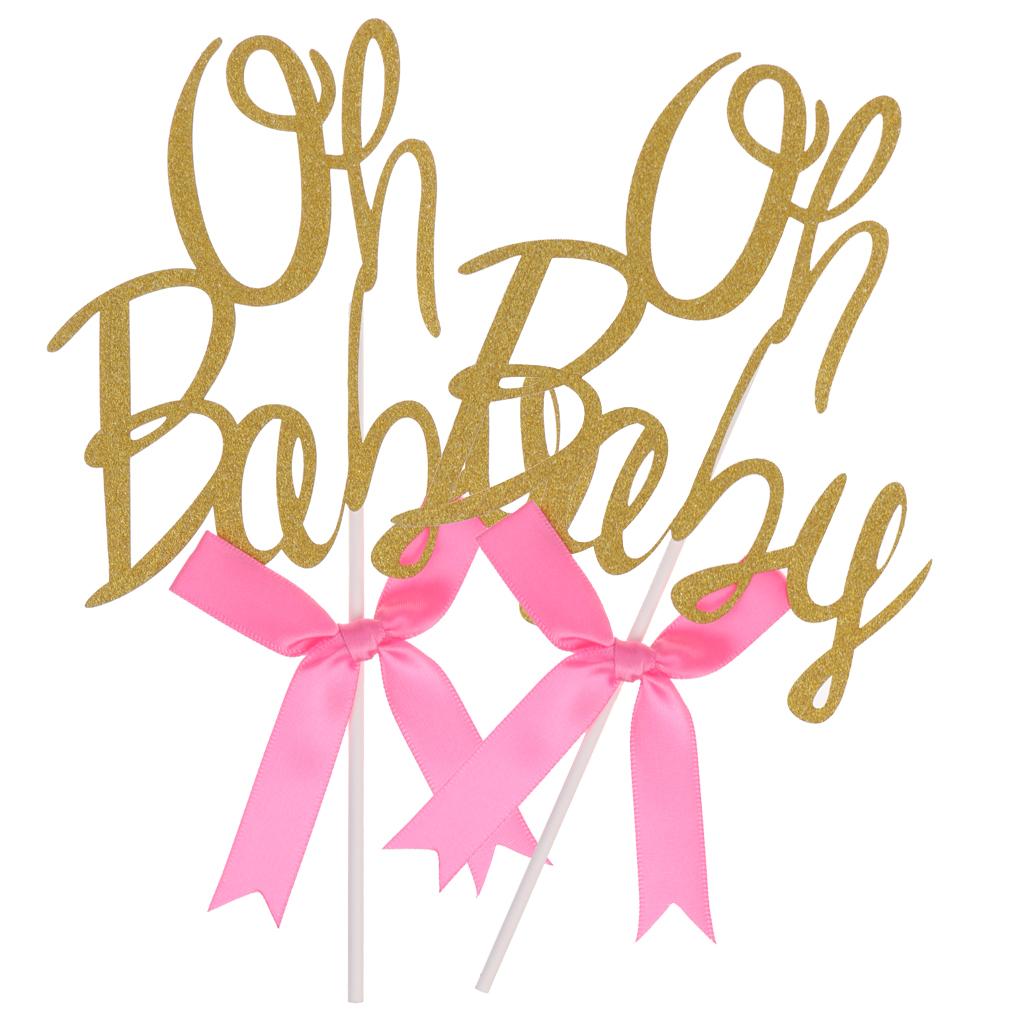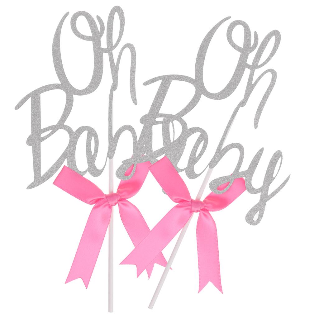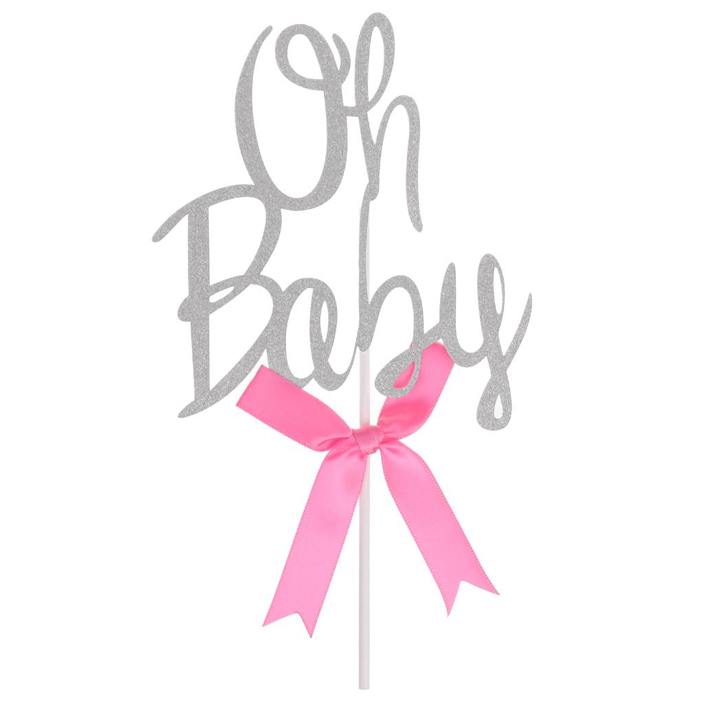 Glitter Oh baby shape with bow cupcake picks cake decor