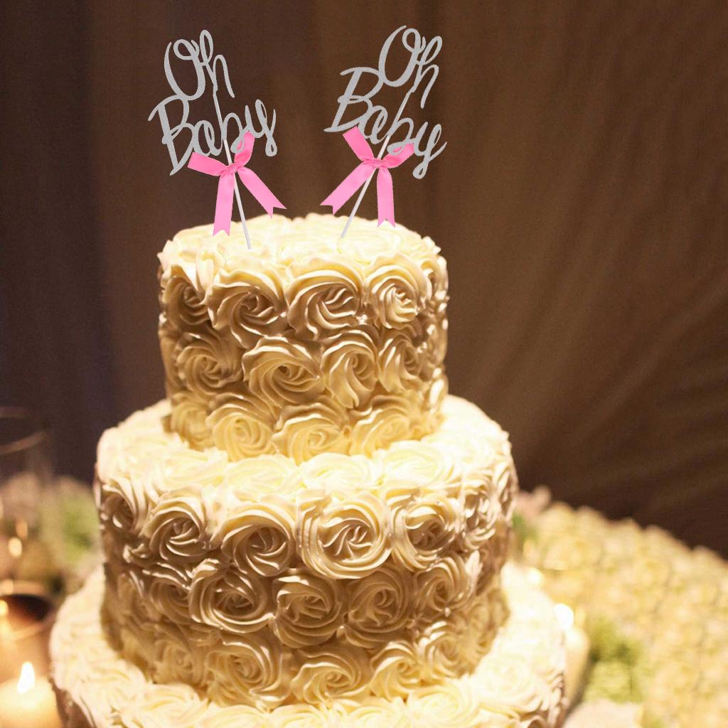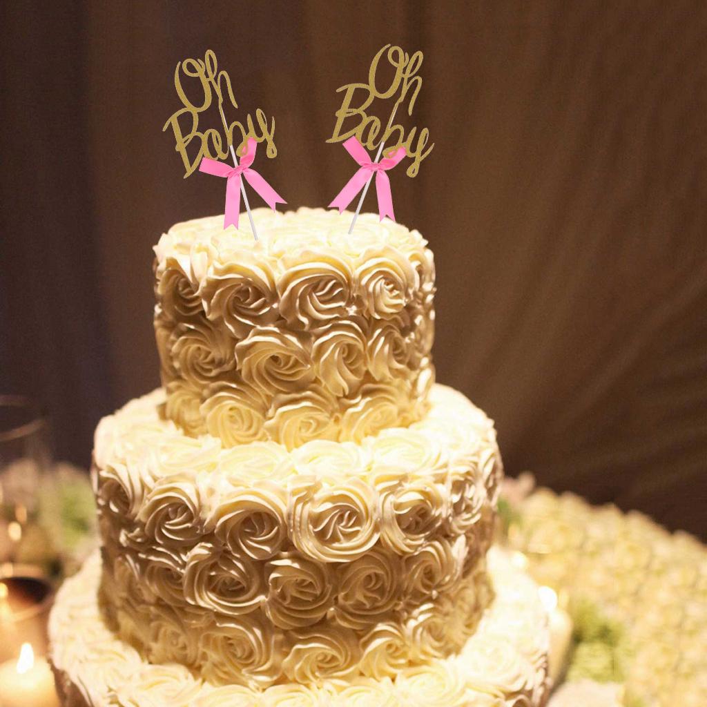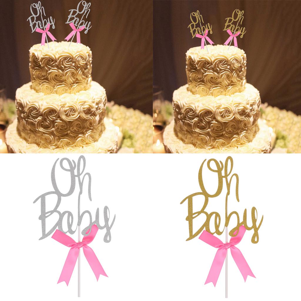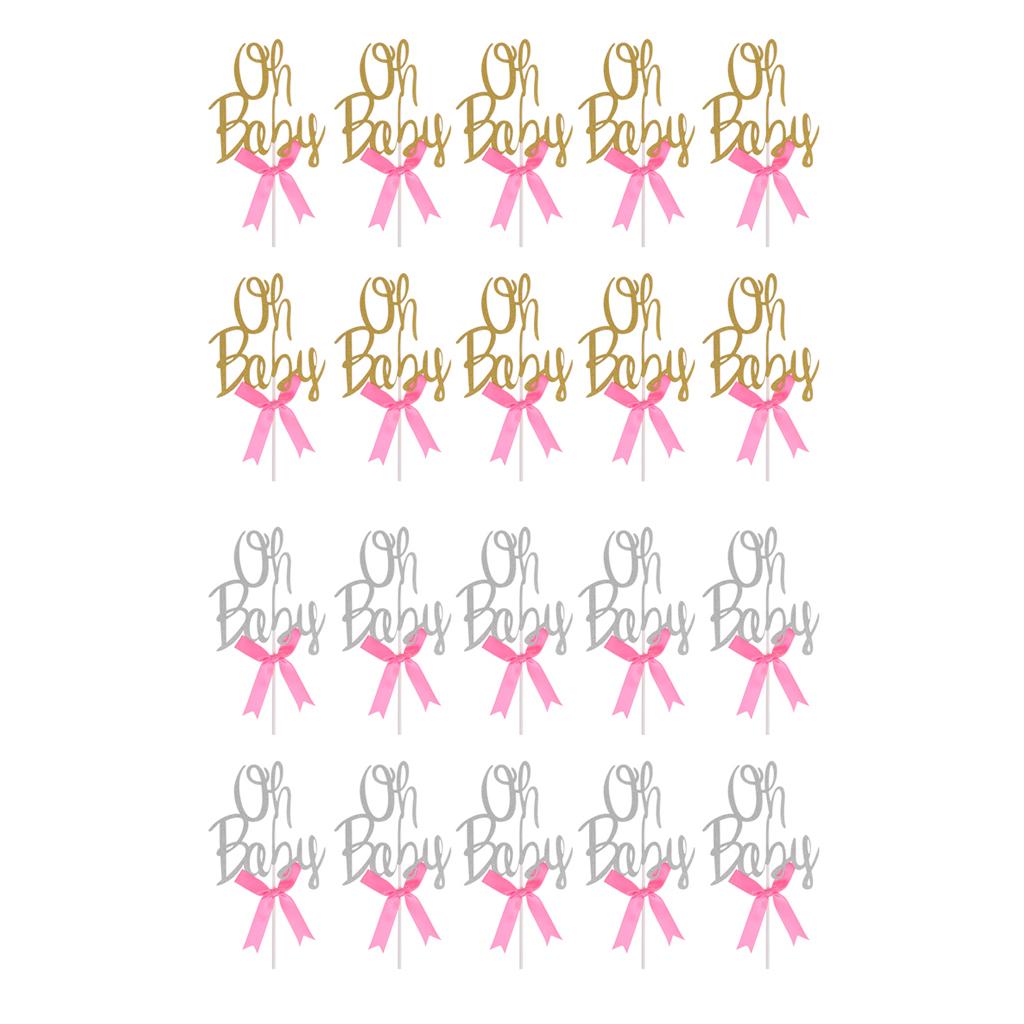 Glitter Oh baby shape with bow cupcake picks cake decor