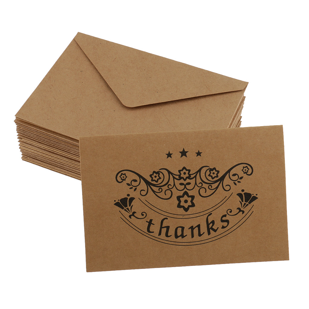20pcs Kraft Paper Thank You Notes Cards with Envelopes for Xmas Greeting #4