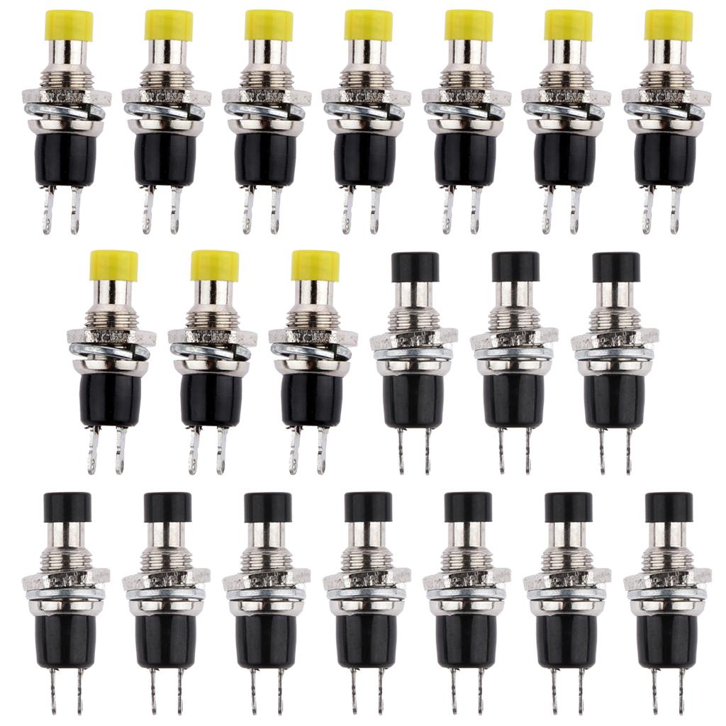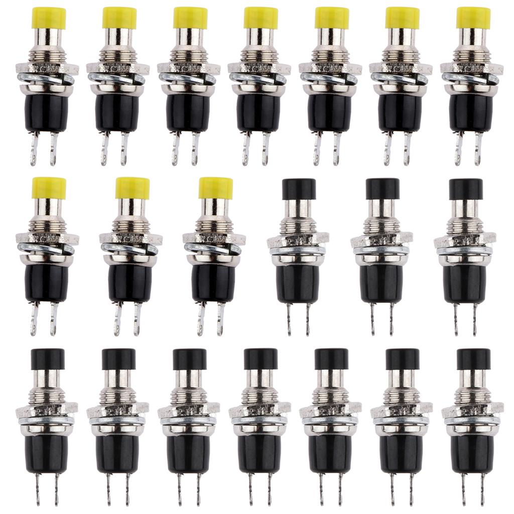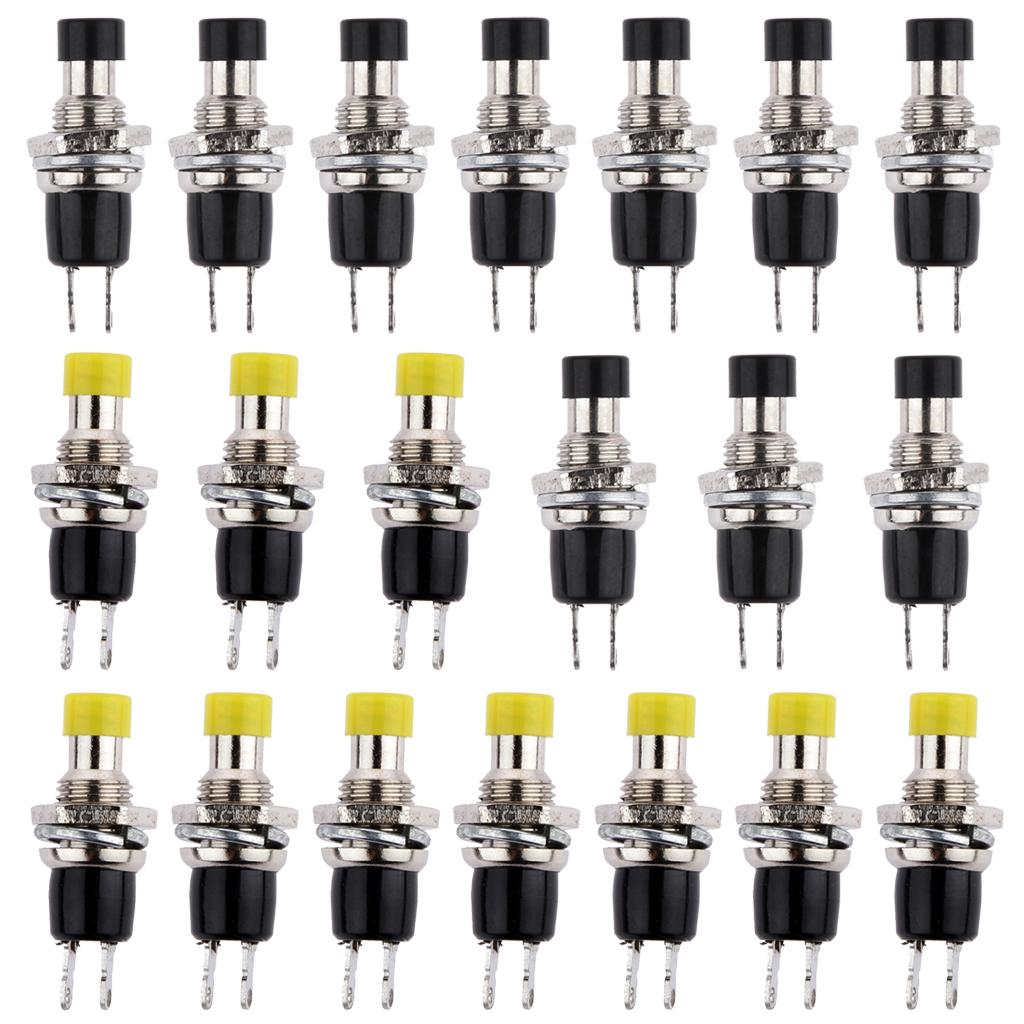 10 pieces Mini Push Button Switch in Yellow and 10 pieces Mini Push Button Switch in Black; Dimension: 25*10mm