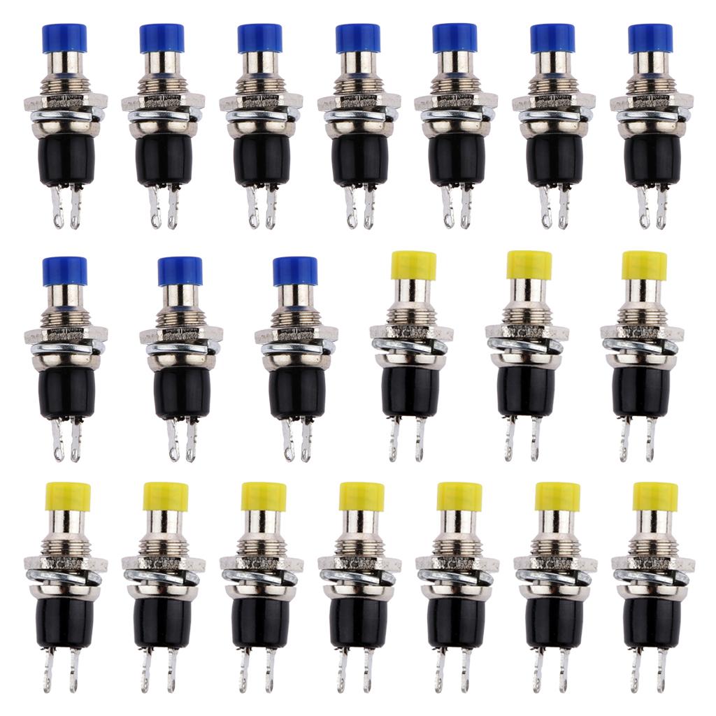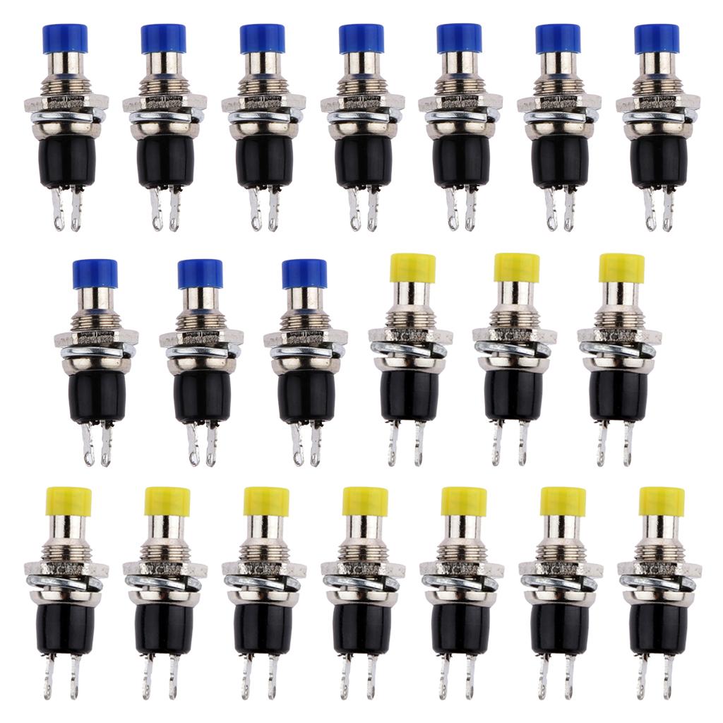 20pcs Mini Momentary Push Button Switches Push on Release off Yellow+ Blue