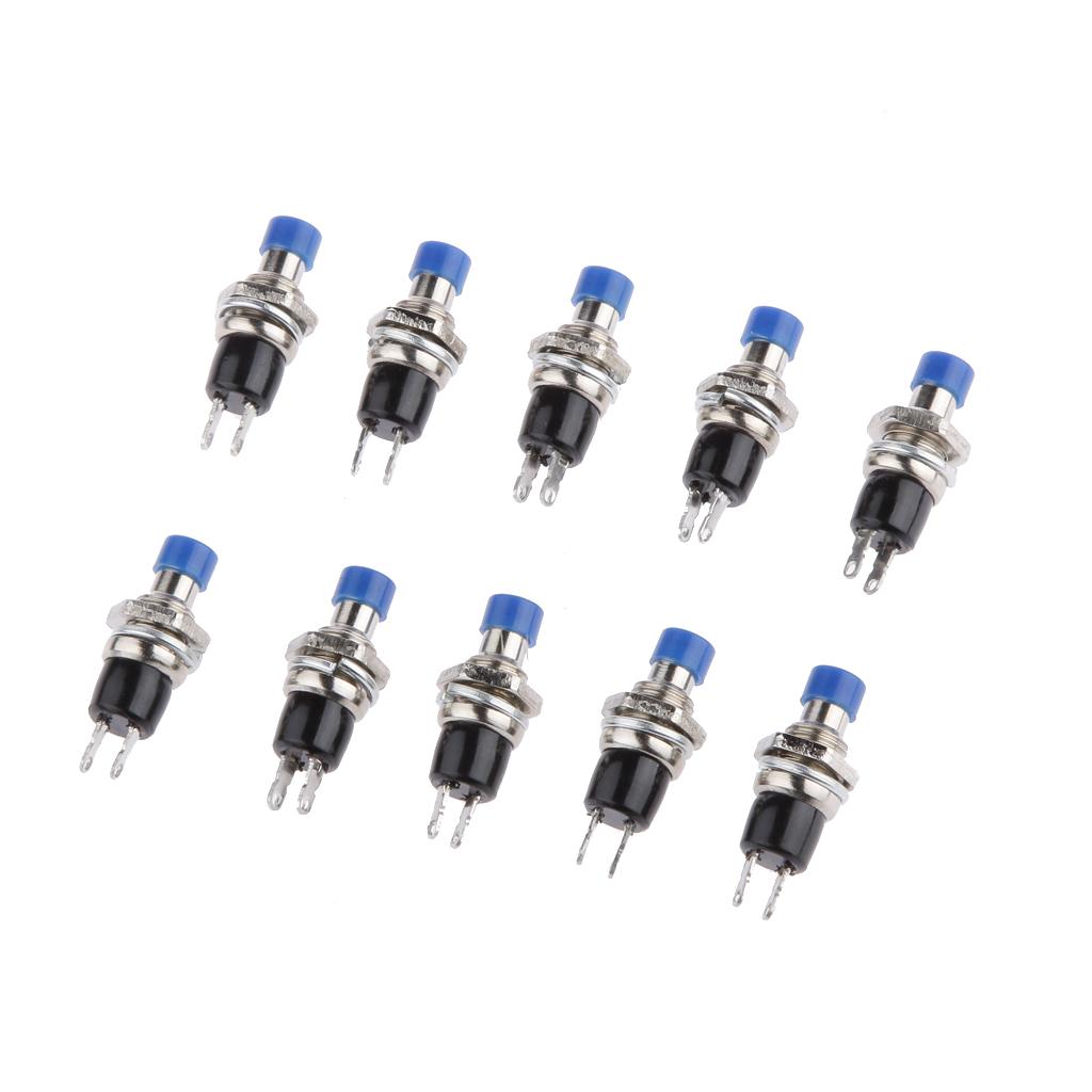 10 pieces Mini Push Button Switch in Yellow and 10 pieces Mini Push Button Switch in Blue; Dimension: 25*10mm
