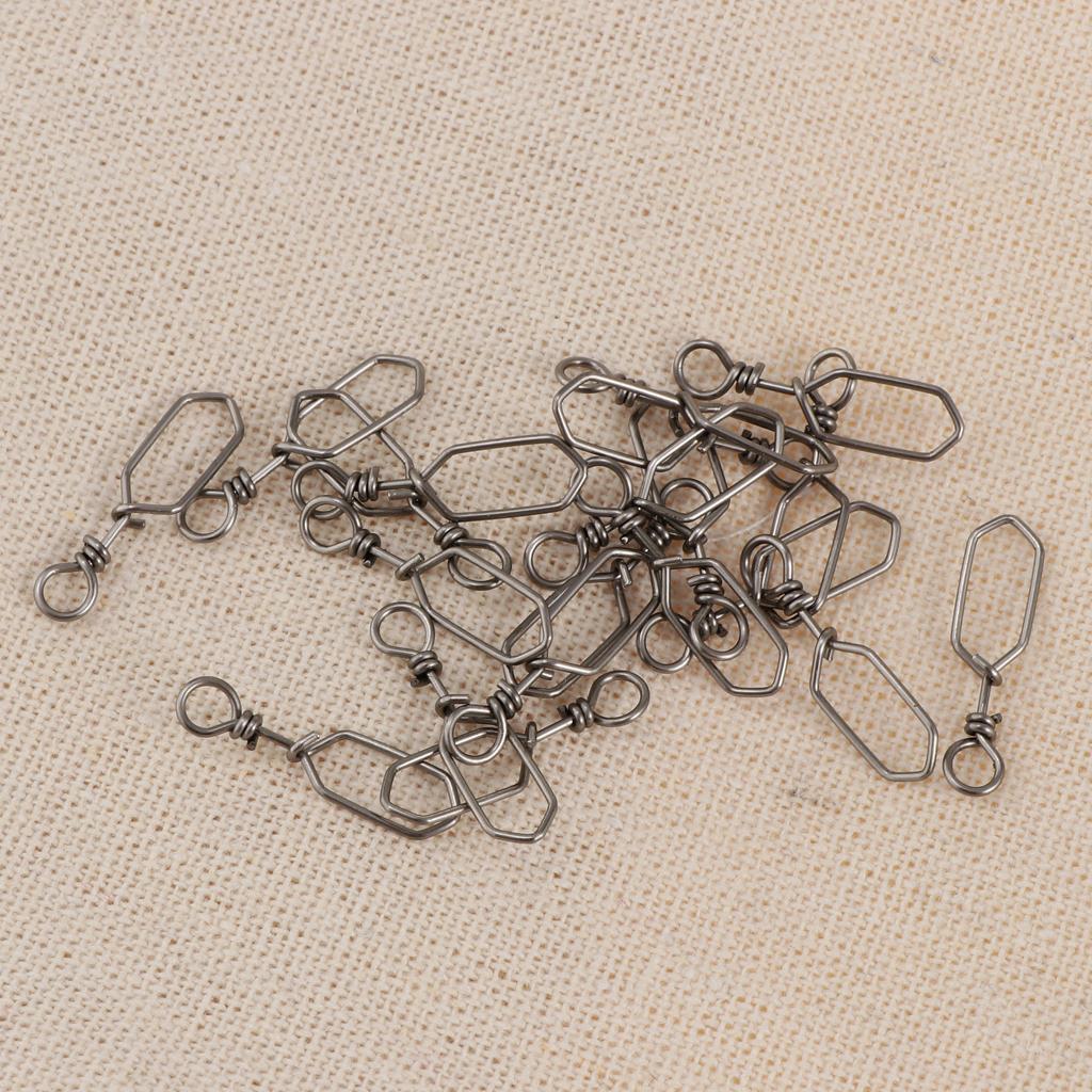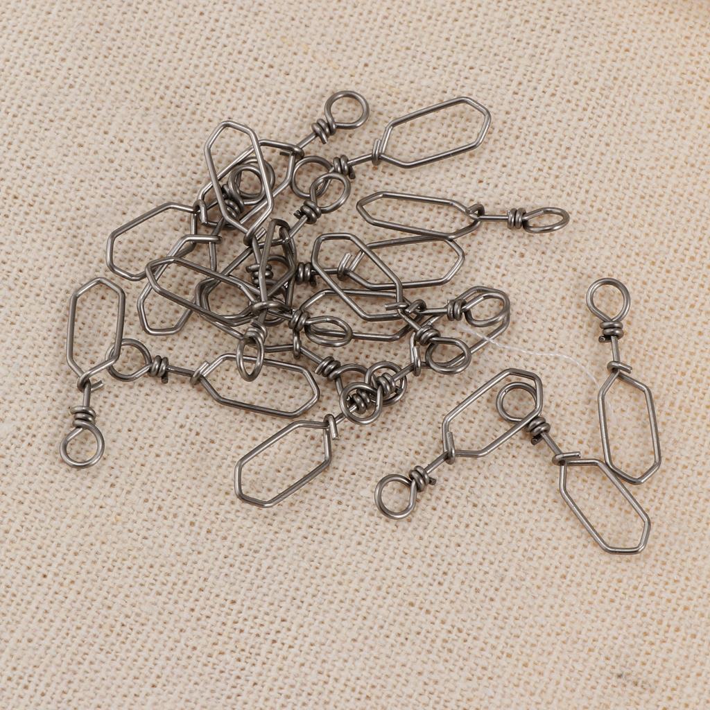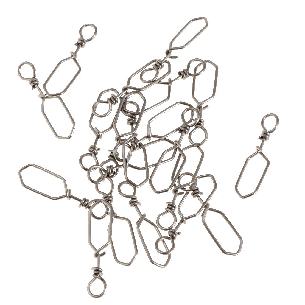 20Pcs Stainless Steel Fishing Rolling Swivel with Snap Lure Connector 2#