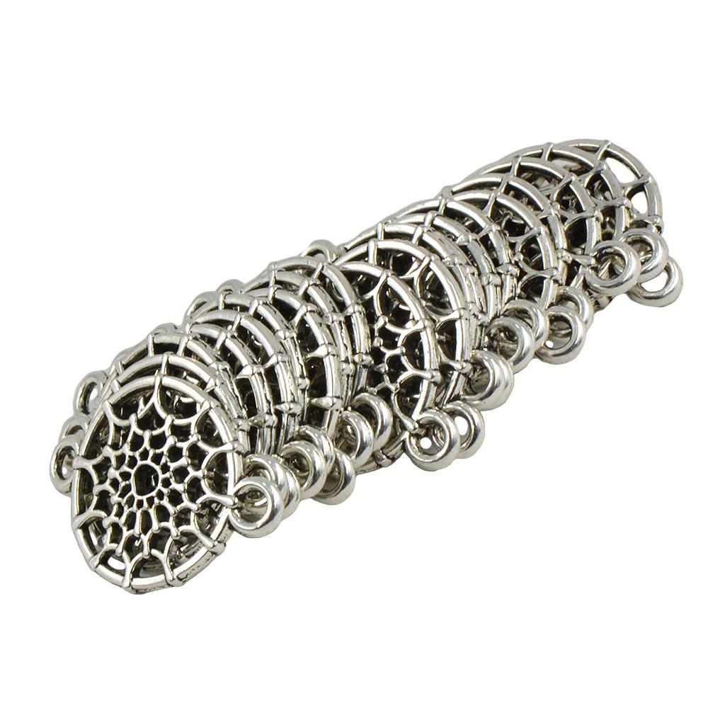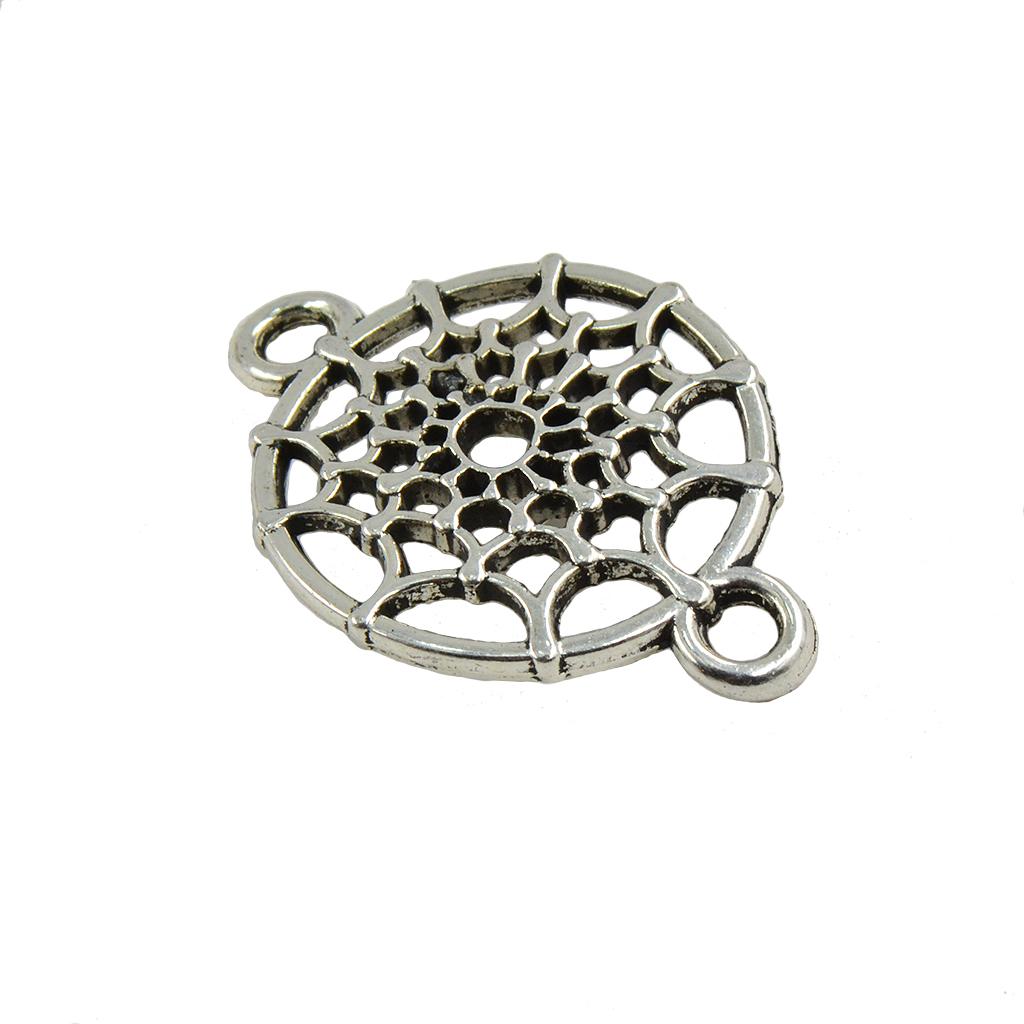 A small hoop containing a horsehair mesh, or a similar construction of string or yarn, decorated with feathers and beads, made a dream cather would be very by using this charms