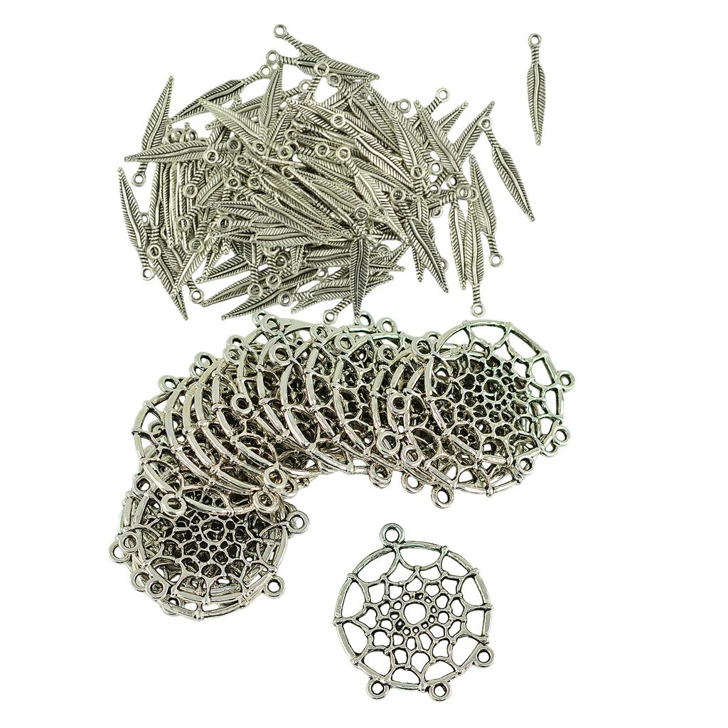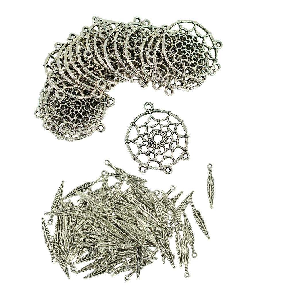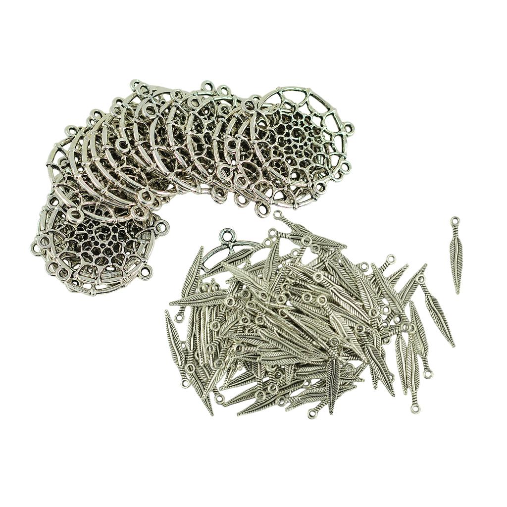 Antique Tibetan silver Alloy Feather Leaf And Dream Cather charm pendant connector for necklace earrings DIY Making.