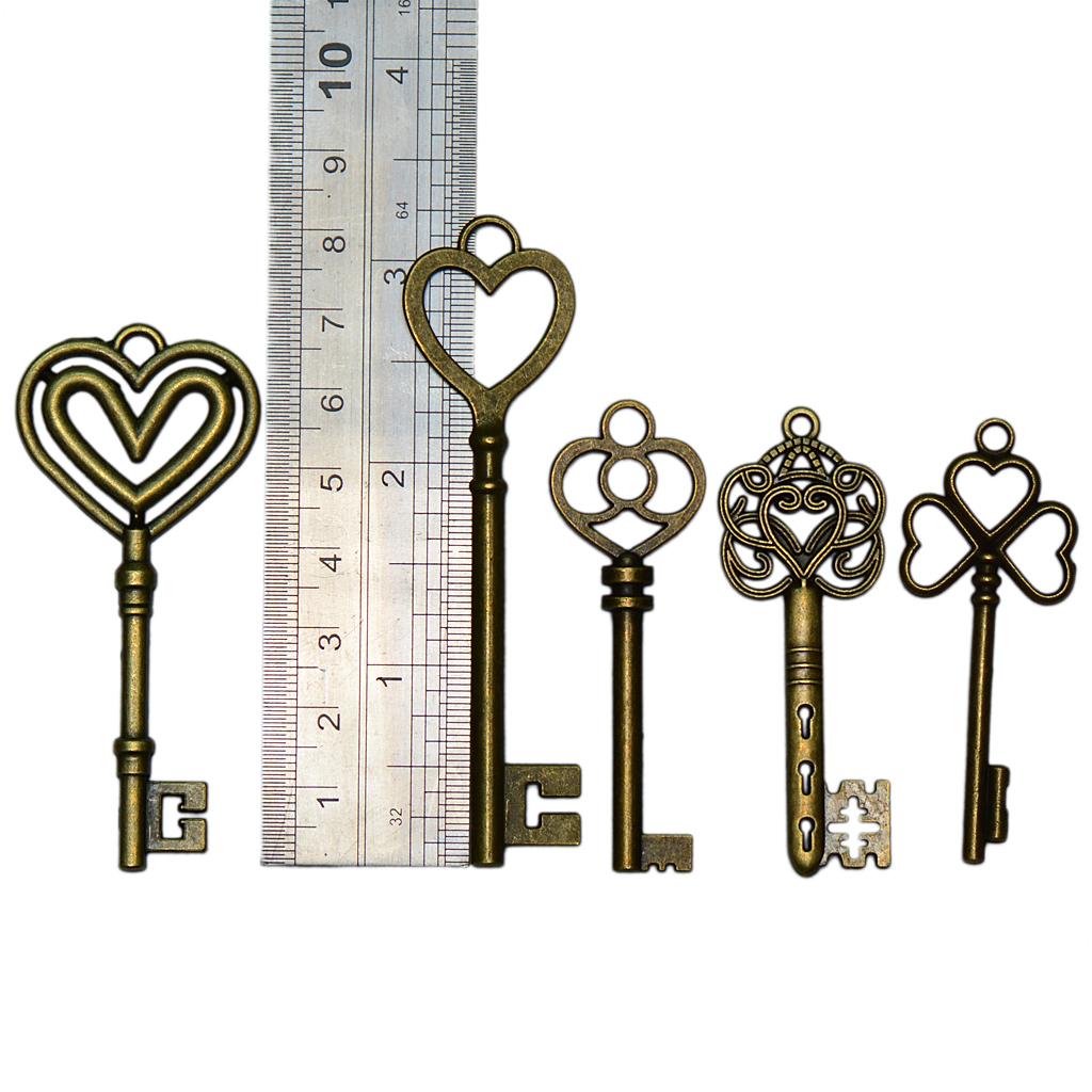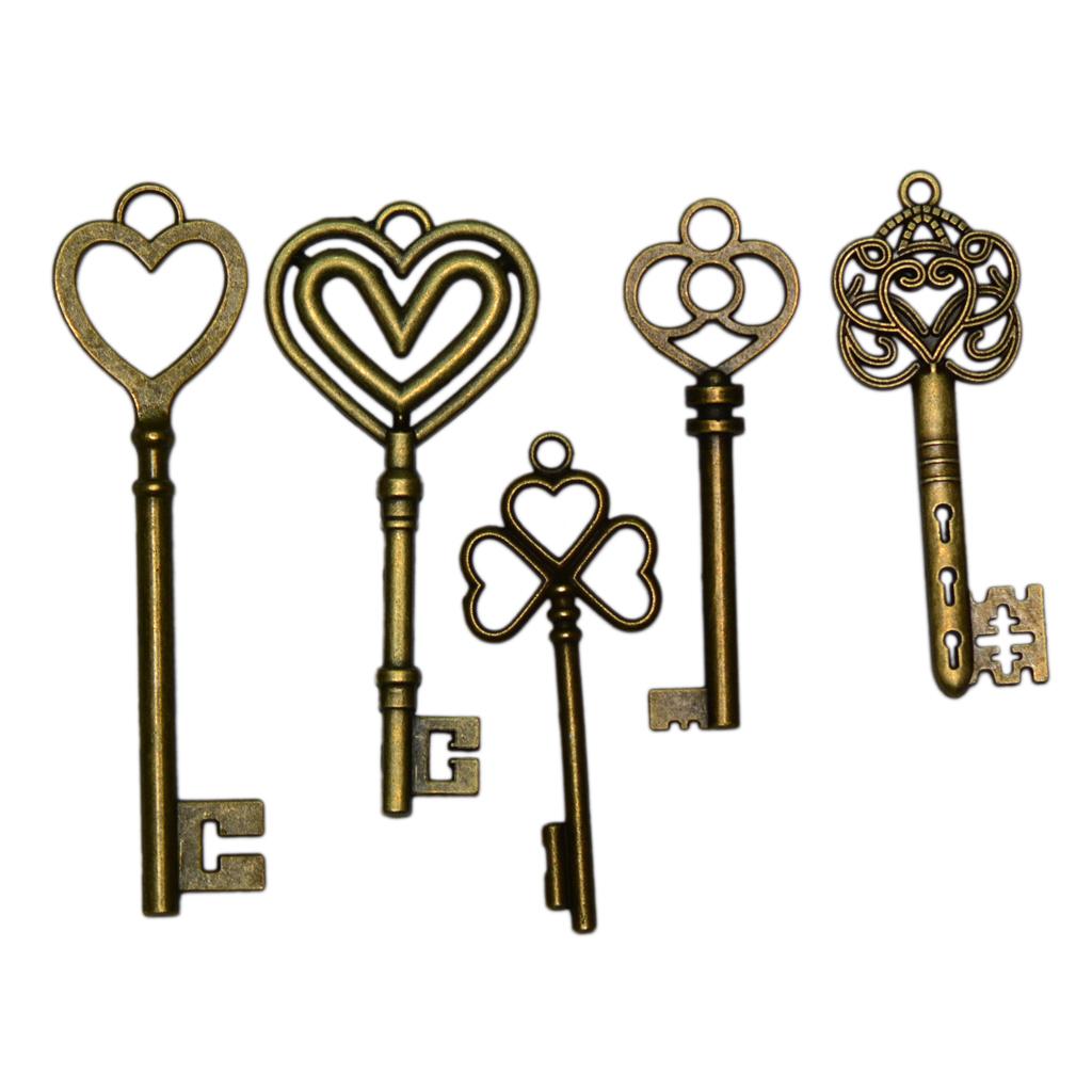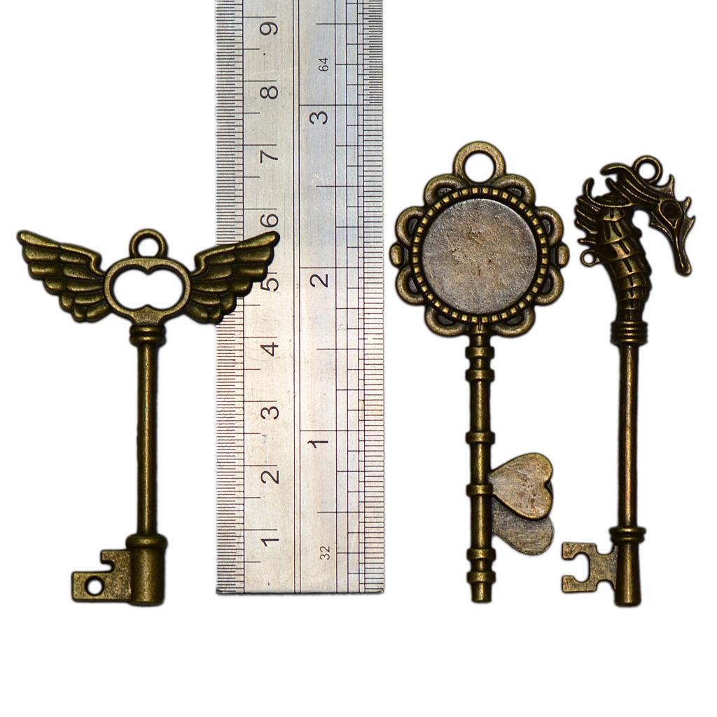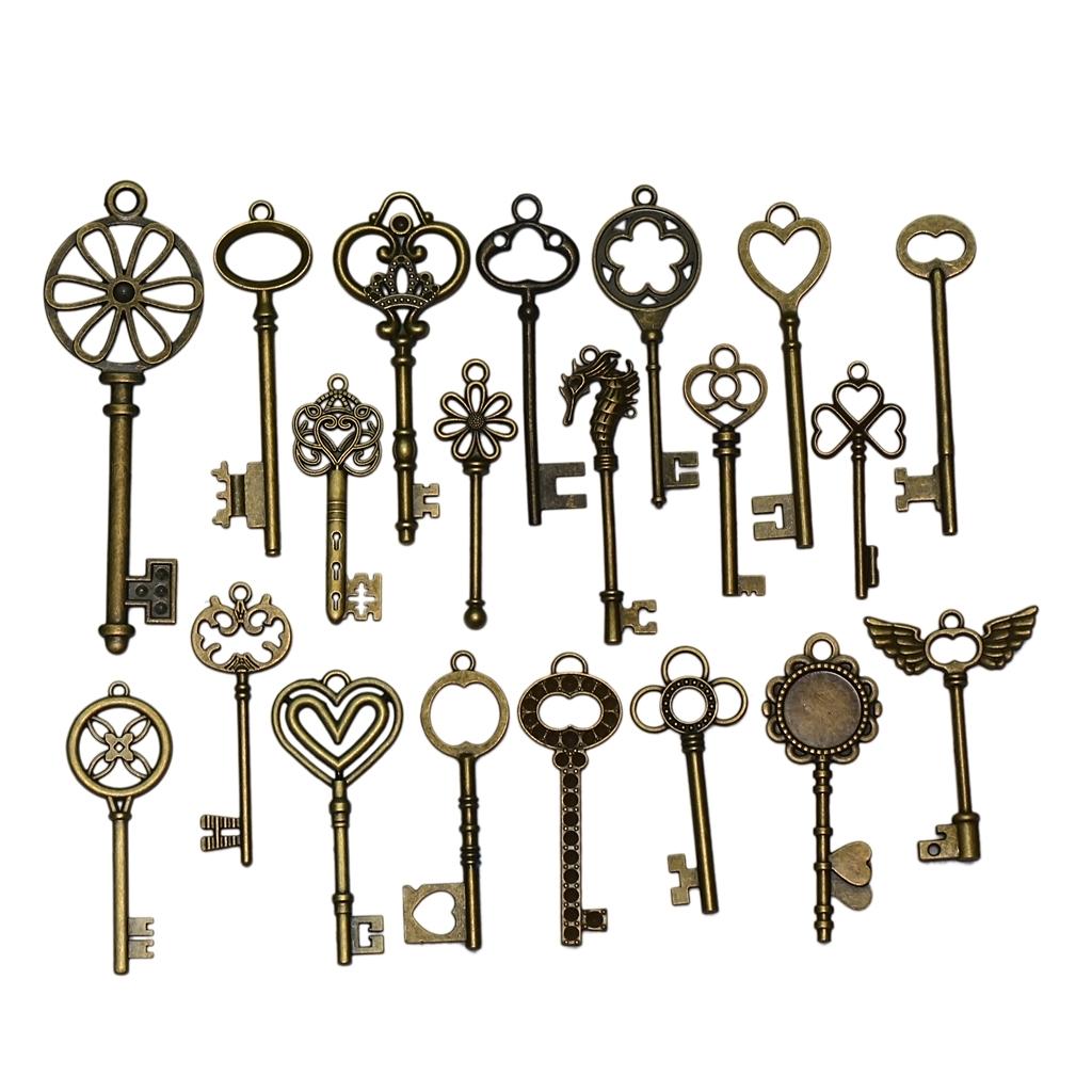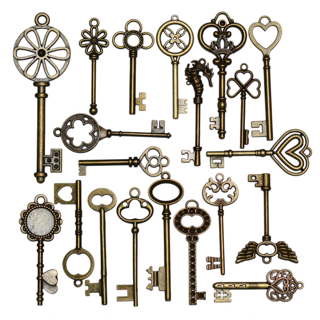 20pcs Vintage Bronze Skeleton Keys Lot Heart Bow Punk Charm Necklace Pendants