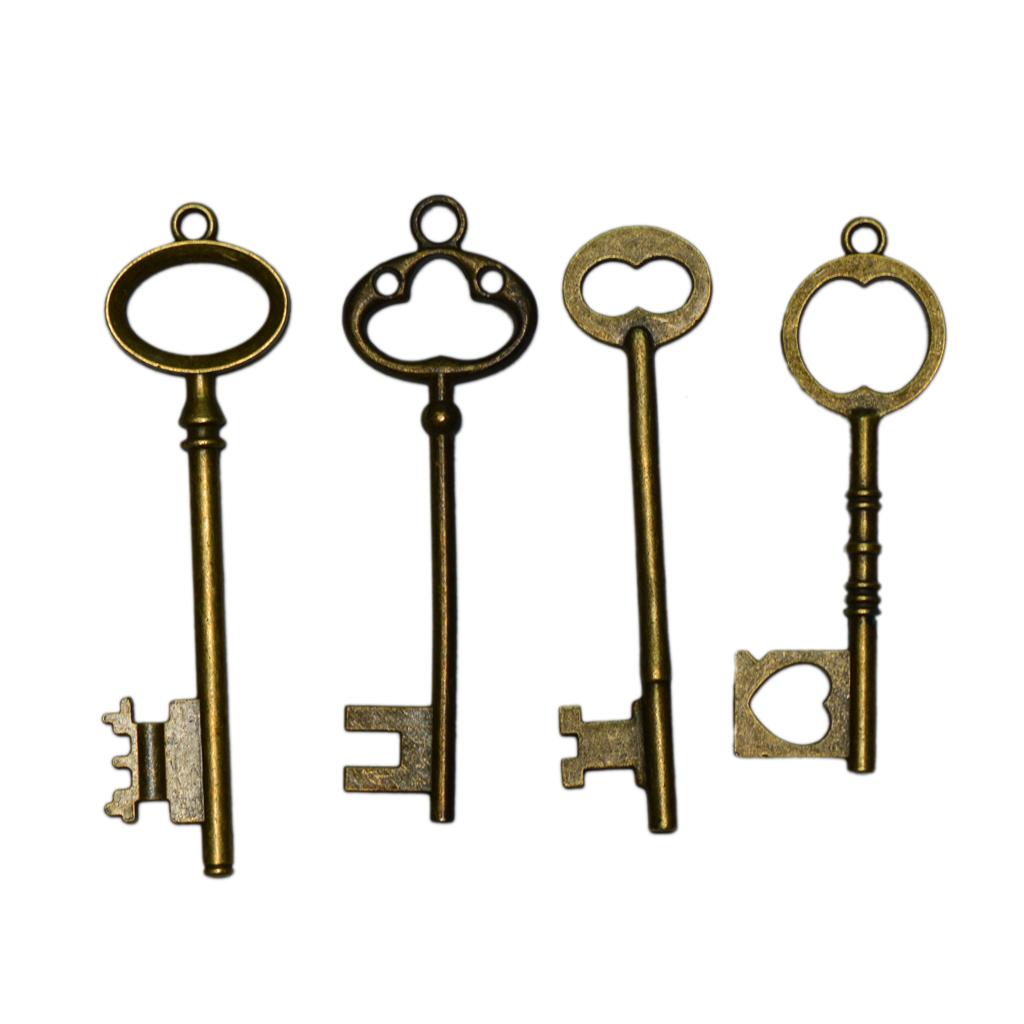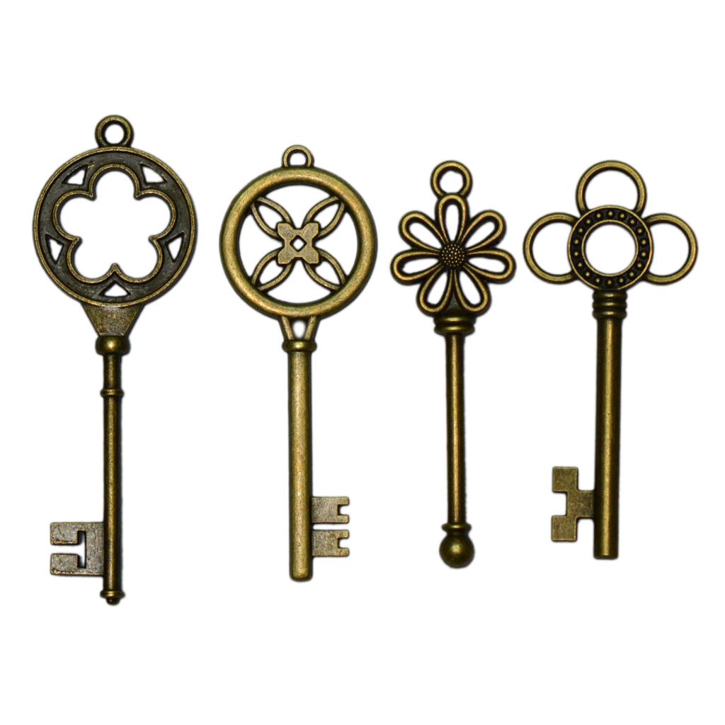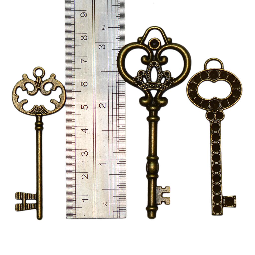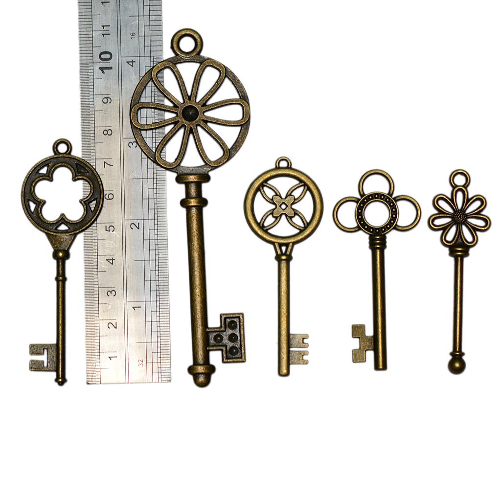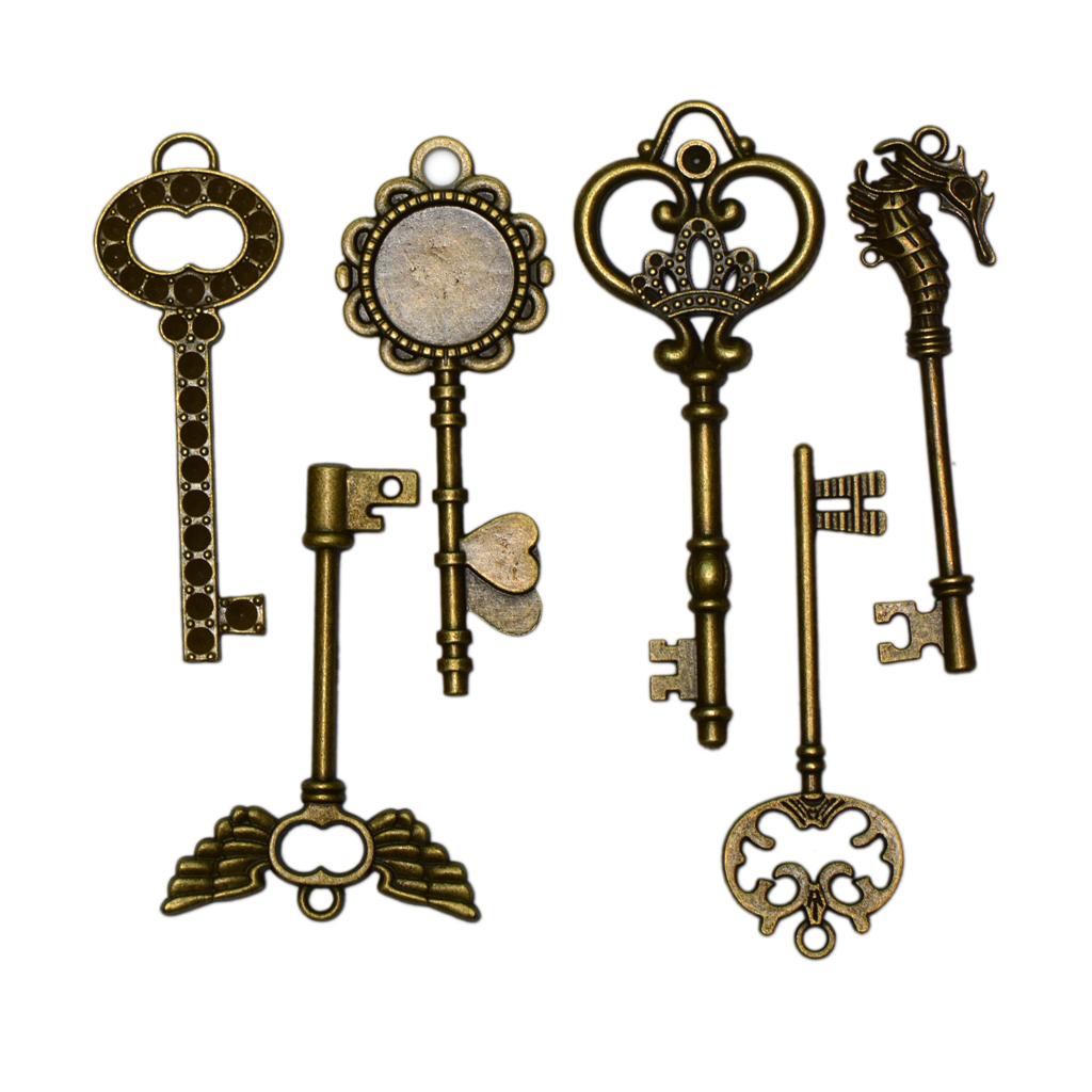 20pcs Vintage Bronze Skeleton Keys Lot Heart Bow Punk Charm Necklace Pendants