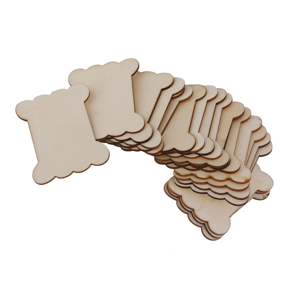 20Pcs Wooden Blank Thread Ribbon Twine Reel Organizer Flat Spools