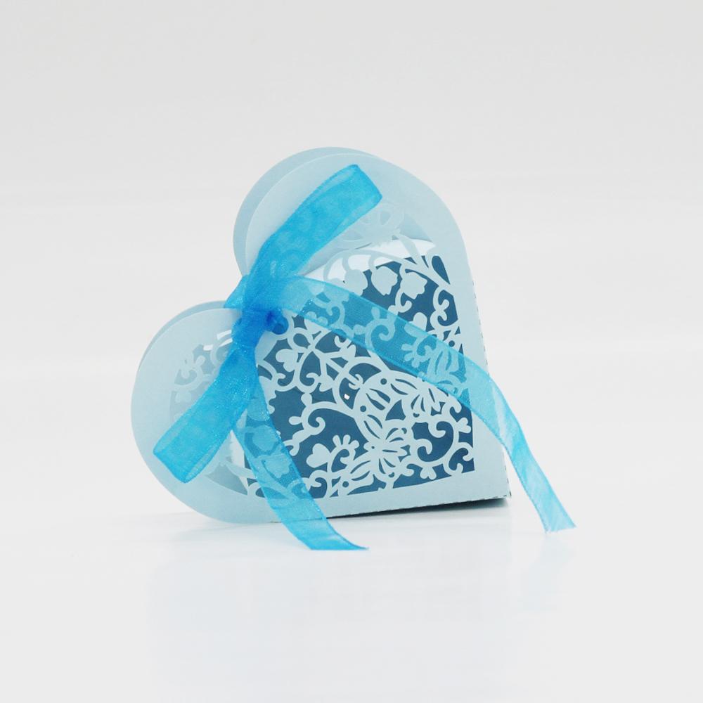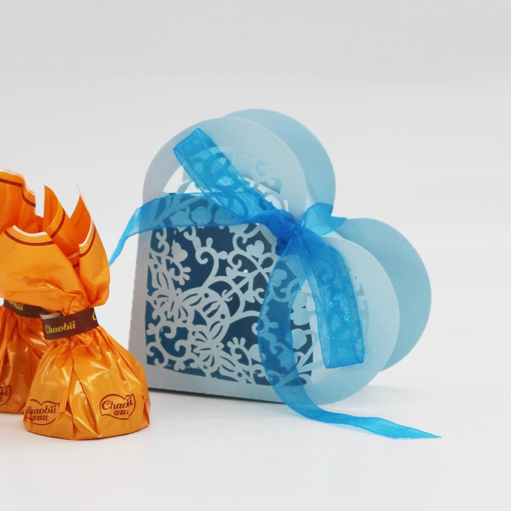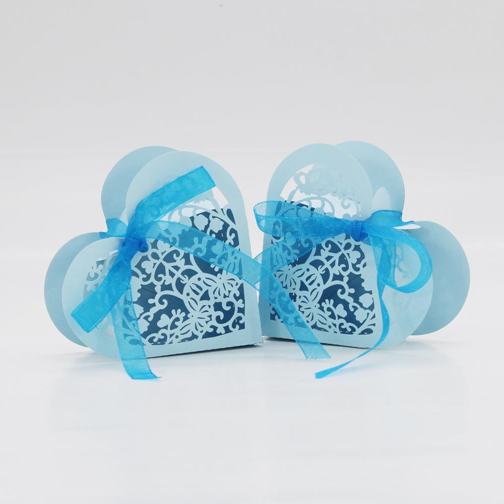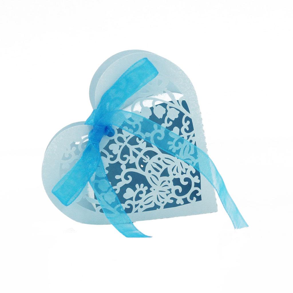 20x Heart Paper Cut Candy Sweet Box w/ Ribbon Wedding Party Favor Gift Blue
