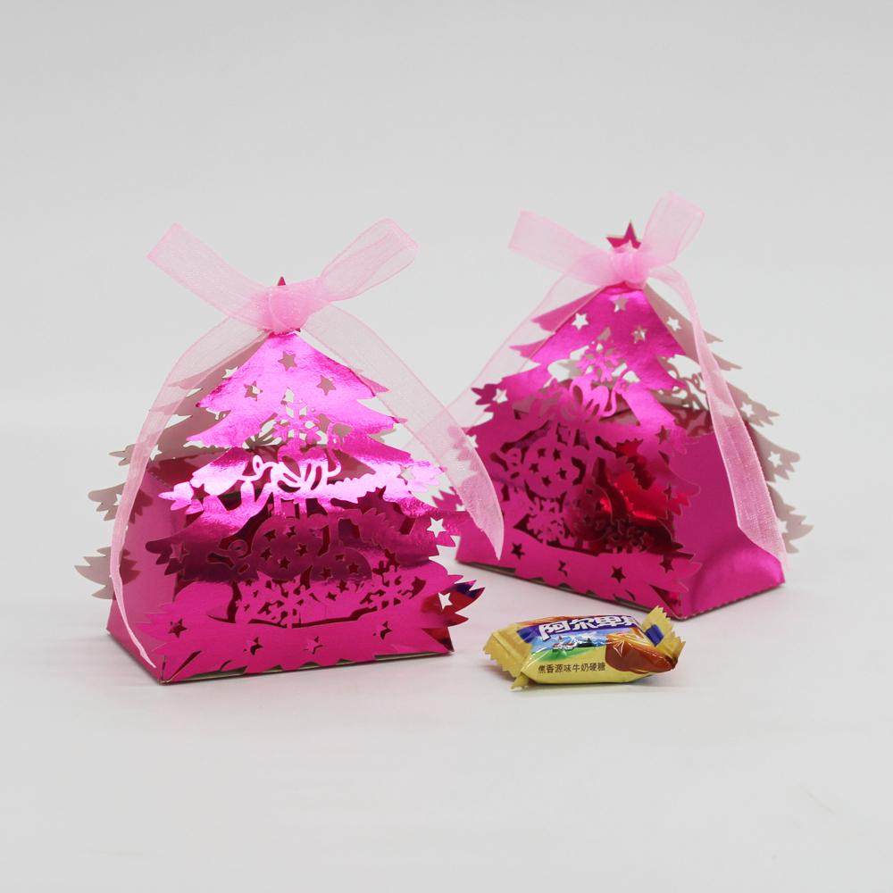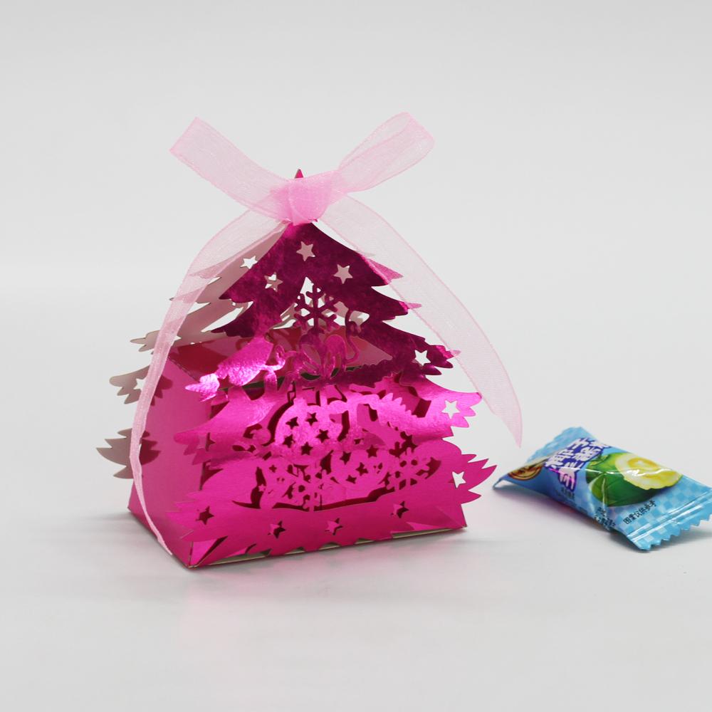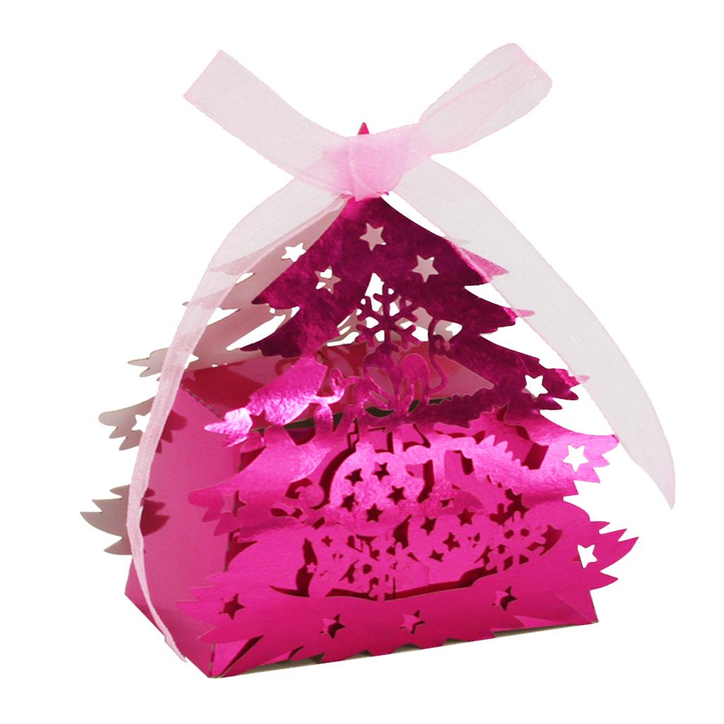 20x Hollow Christmas Tree Gift Candy Boxes W/ Ribbon Wedding Party Rose Red